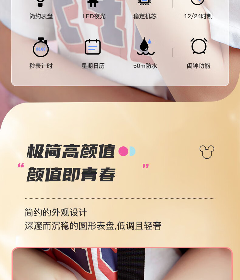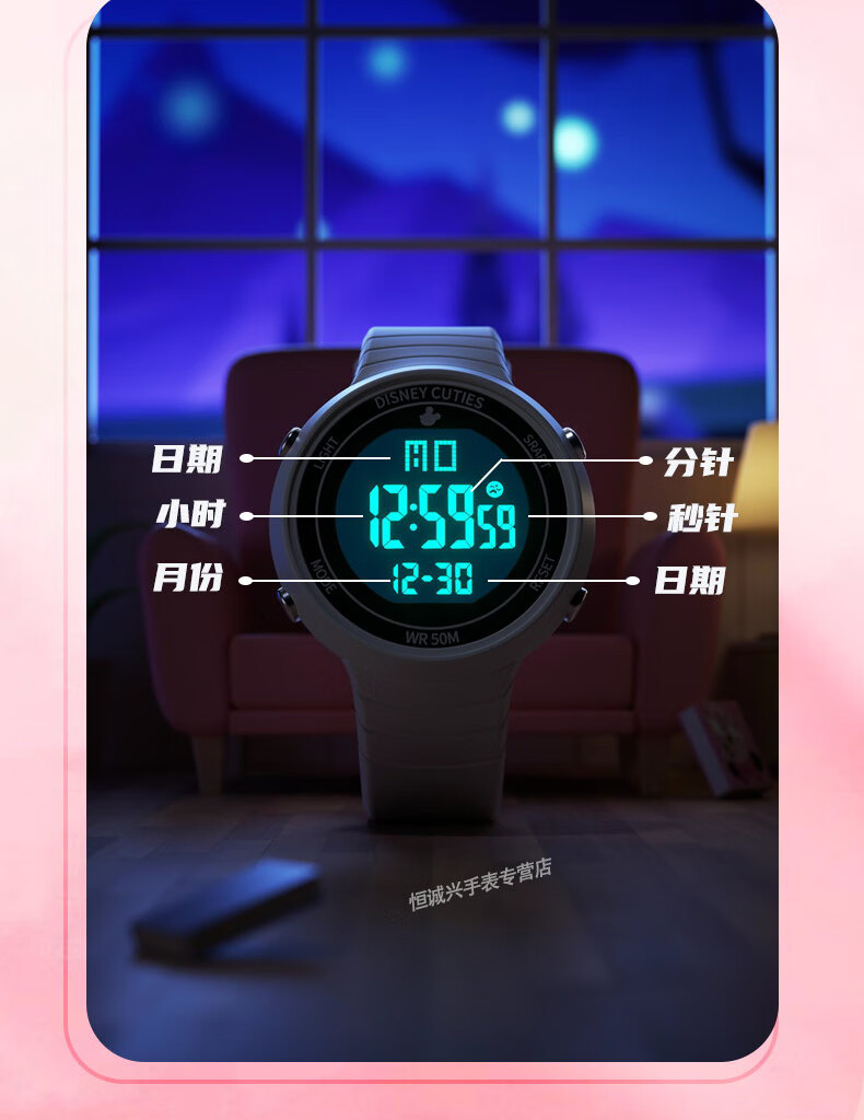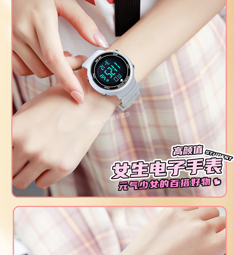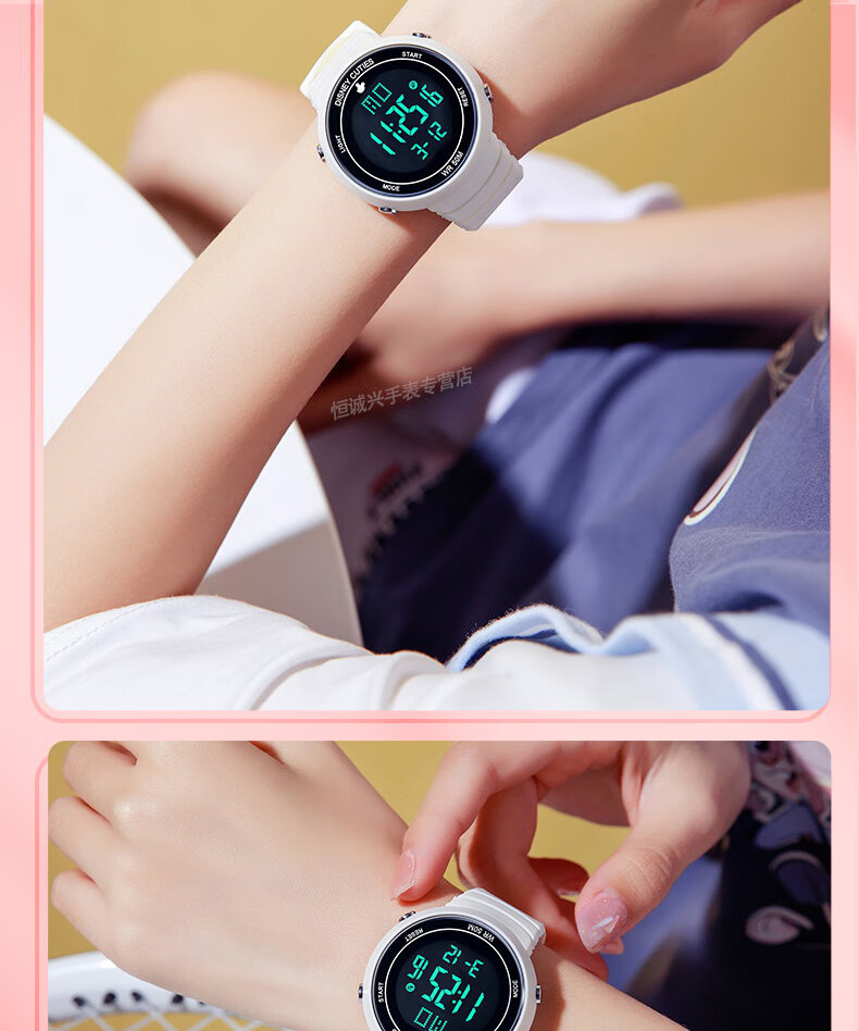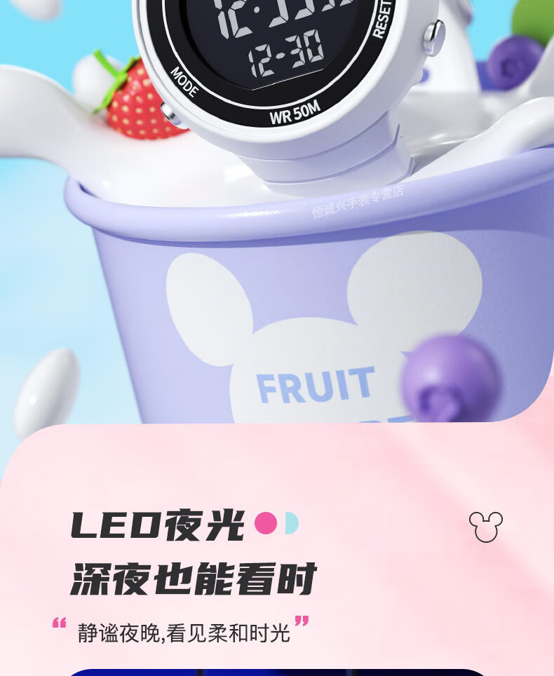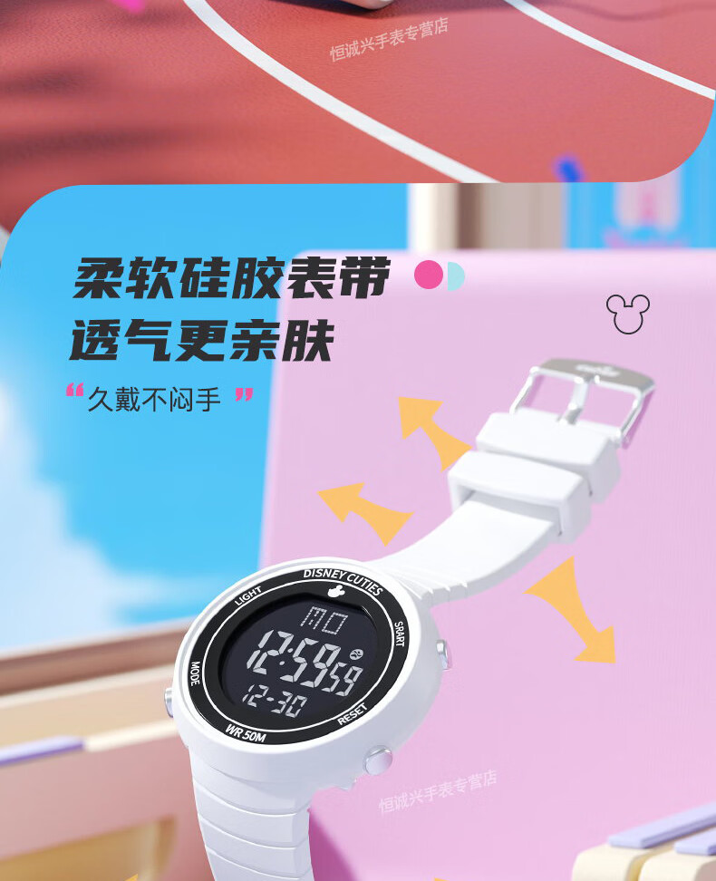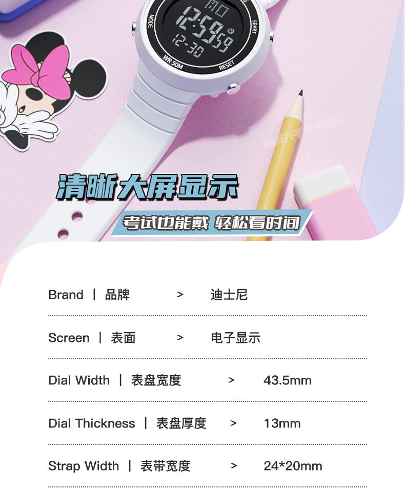 Disney (Disney) sports electronic watch for female students, middle and high school students, 2025 new waterproof children and girls Christmas birthday gift, ivory white, recommended by the store manager