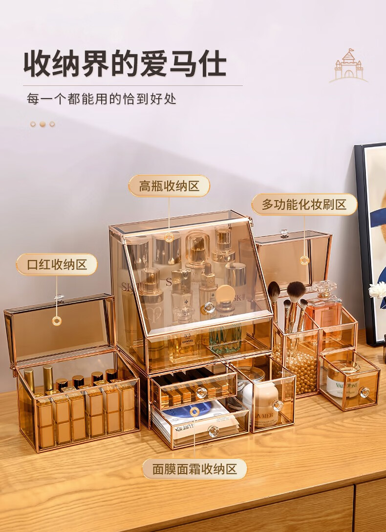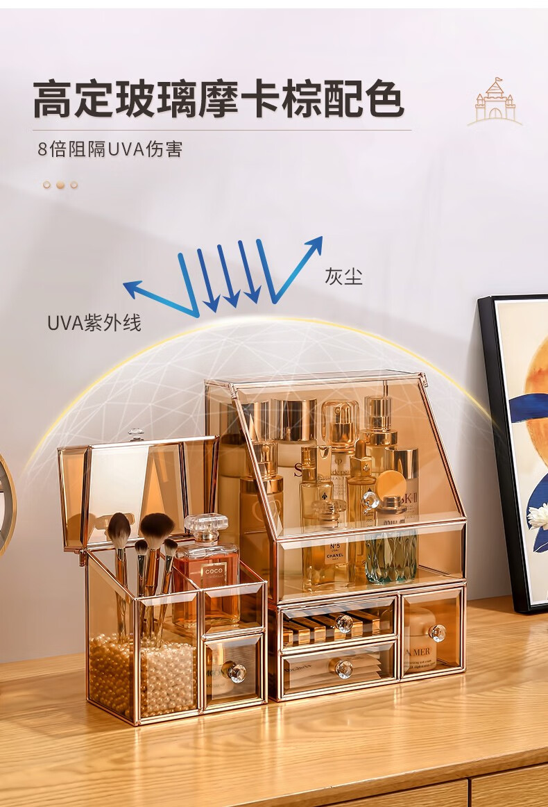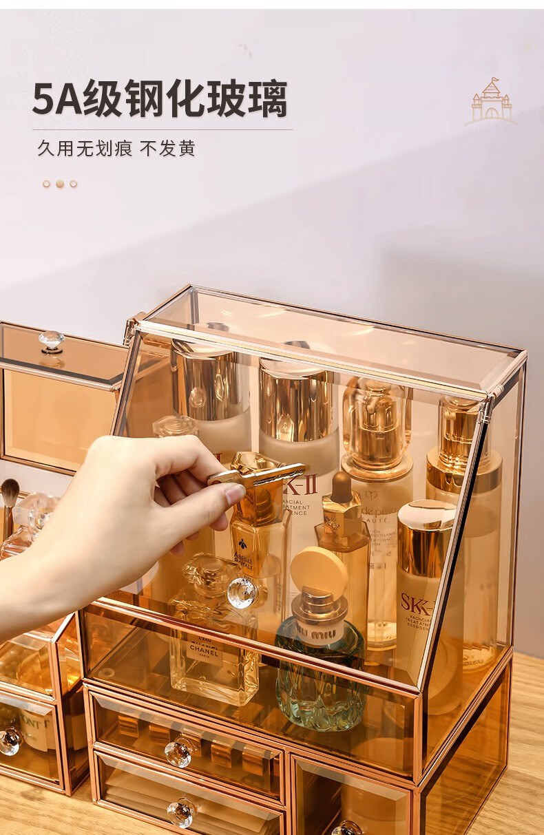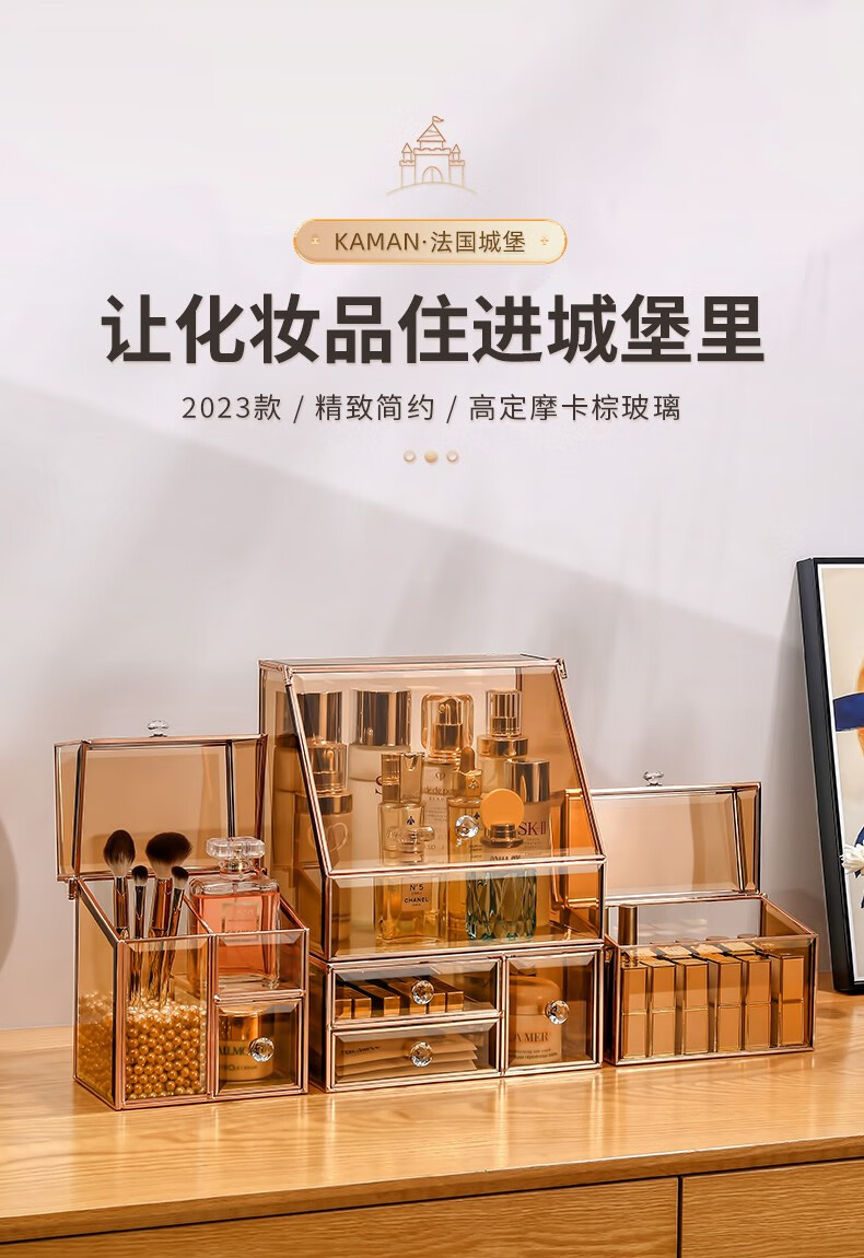 KAMAN glass cosmetic storage box drawer-type dust-proof makeup brush lipstick skin care product storage rack Valentine's Day gift small brown box classic three-piece set