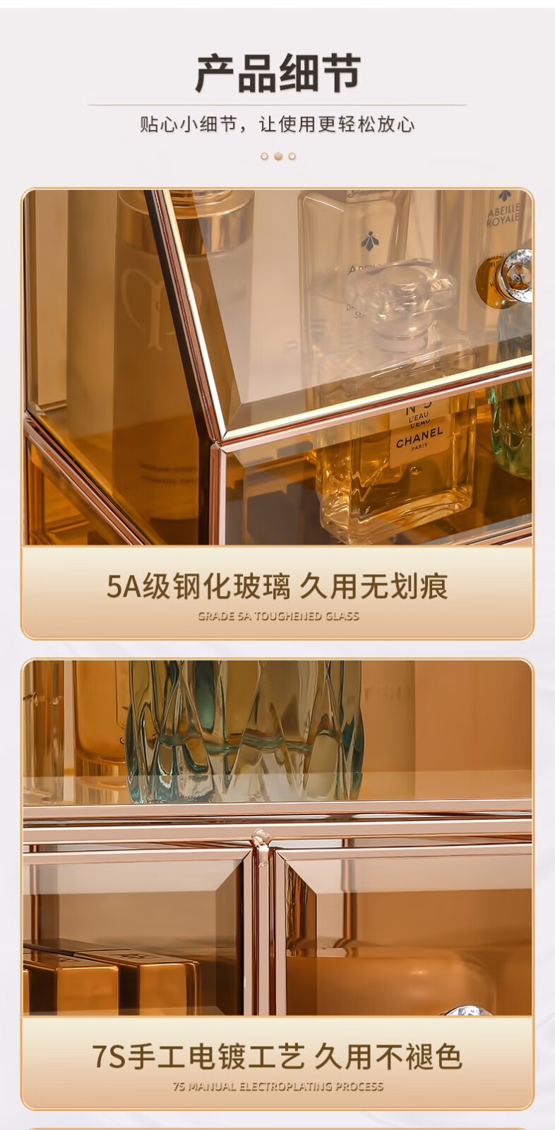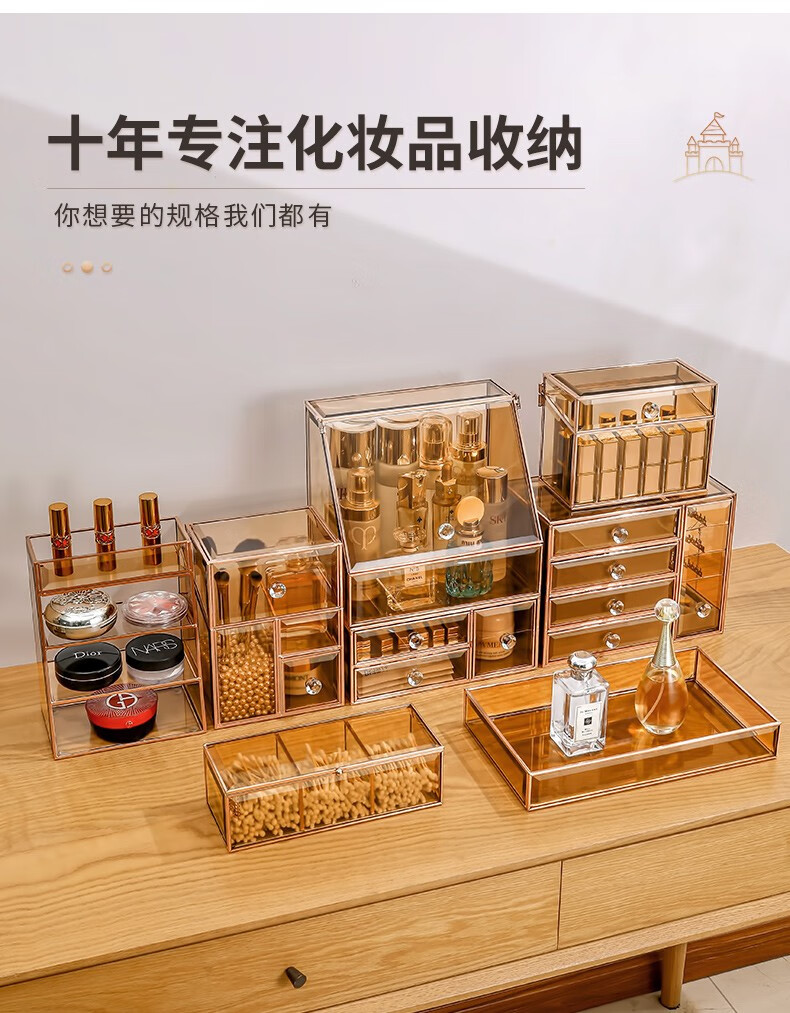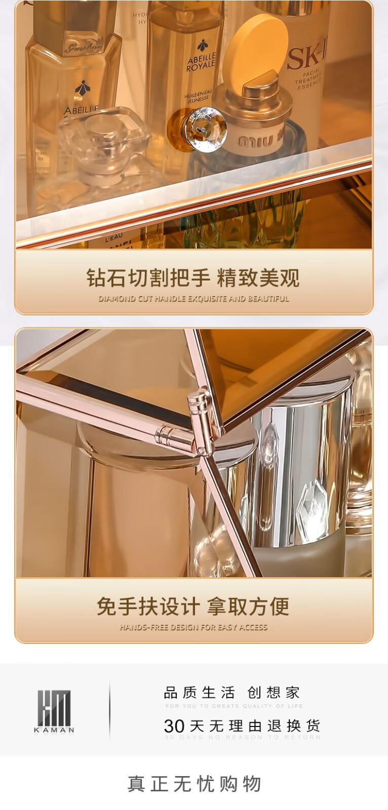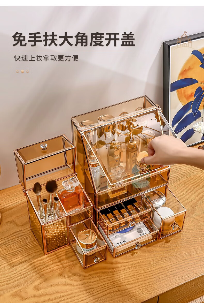 KAMAN glass cosmetic storage box drawer-type dust-proof makeup brush lipstick skin care product storage rack Valentine's Day gift small brown box classic three-piece set