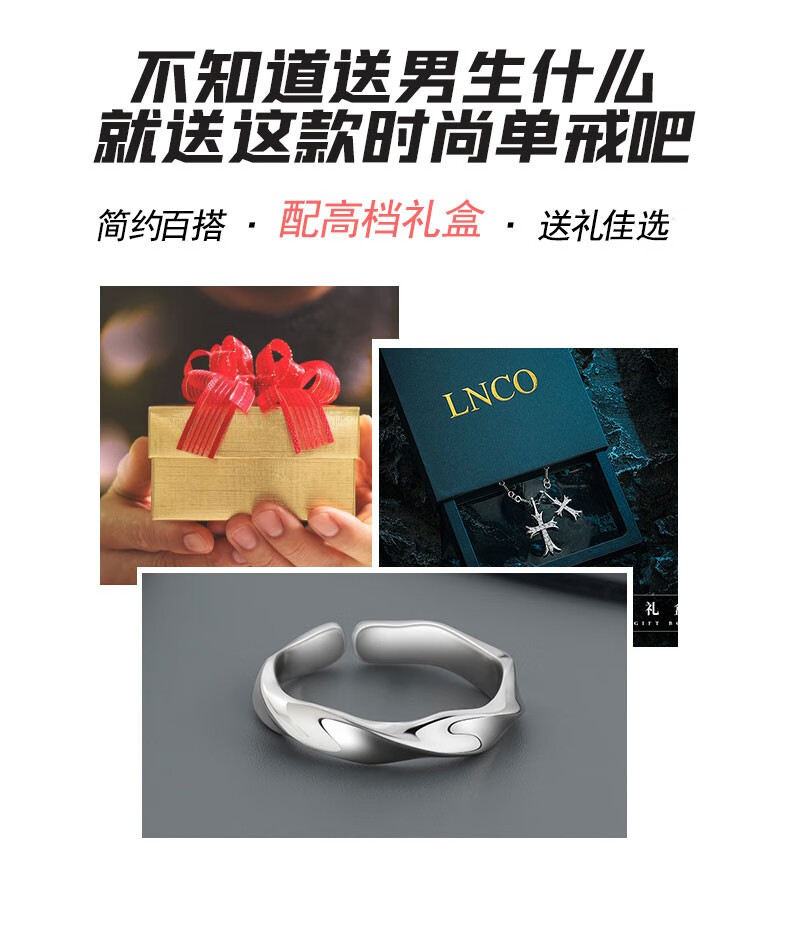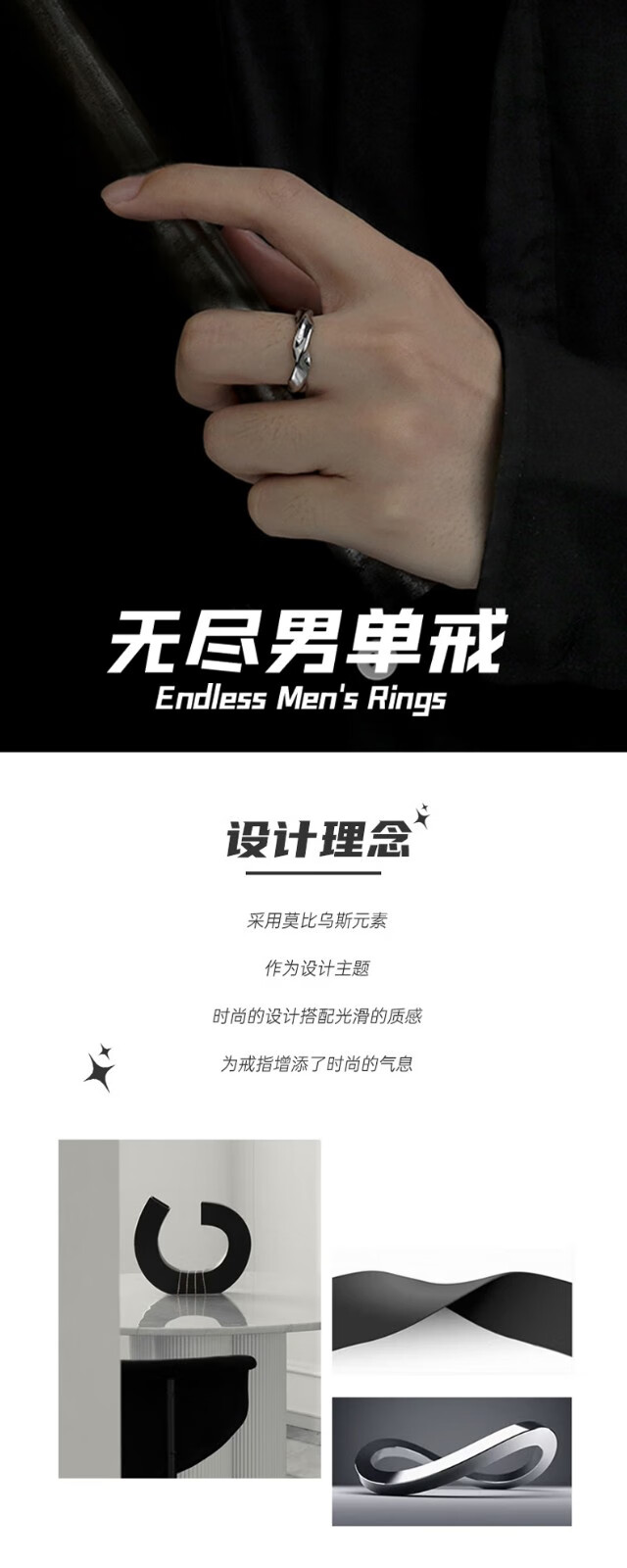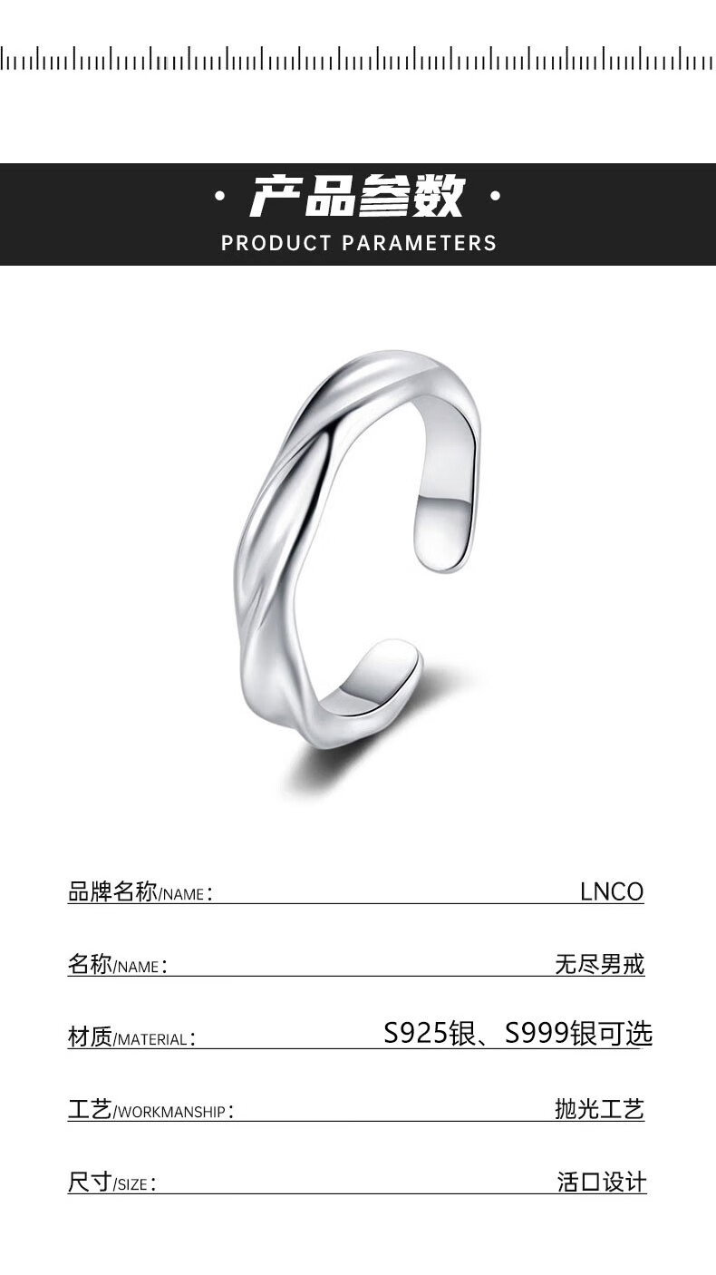 LNCO endless men's single ring 999 silver ring single men's ring Japanese and Korean jewelry birthday and Christmas gifts for boys 925 silver suitable for 120 Jin Jin equals 0.5 kg -180 Jin Jin equals 0.5 kg Same day/next day delivery