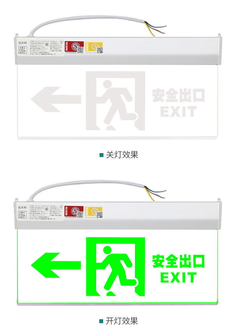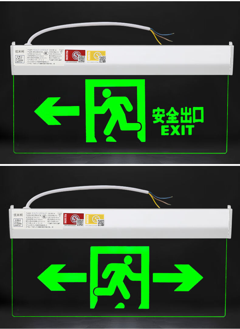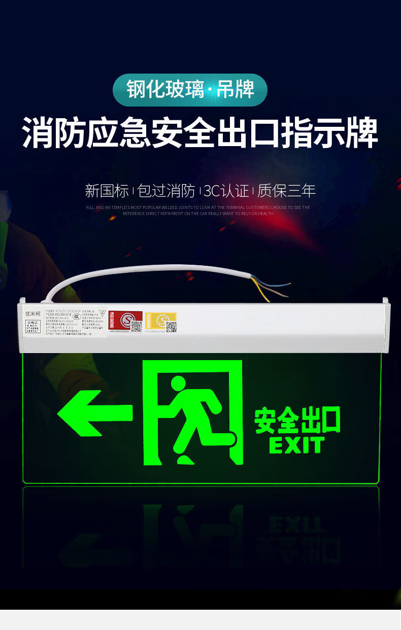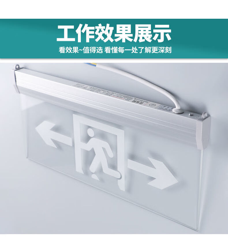 Workhorse safety exit sign hanging fire emergency tempered glass transparent hangtag embedded ceiling evacuation indicator light glass hangtag safety exit with hanging chain