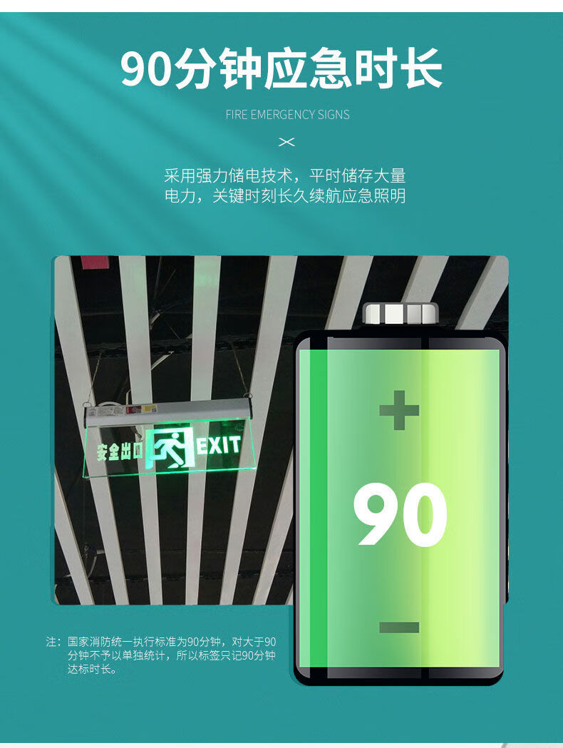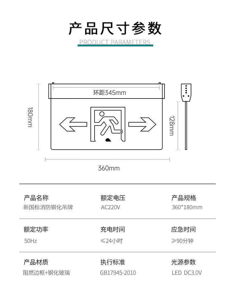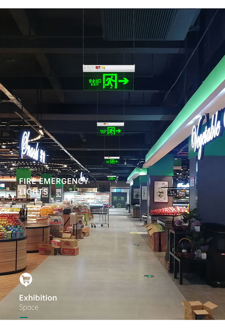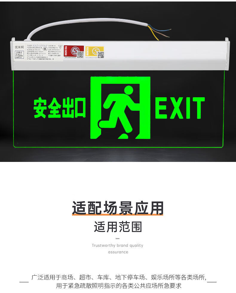 Workhorse safety exit sign hanging fire emergency tempered glass transparent hangtag embedded ceiling evacuation indicator light glass hangtag safety exit with hanging chain