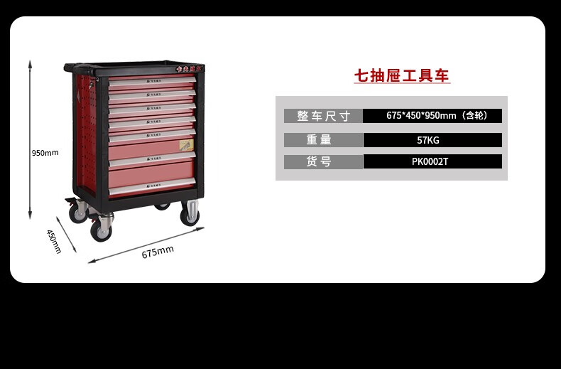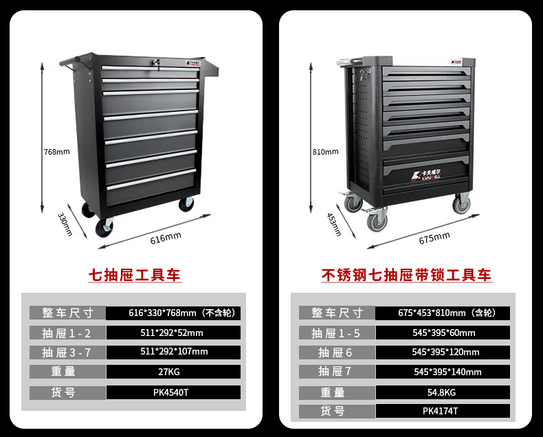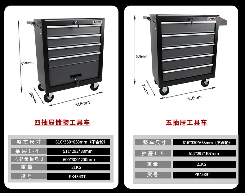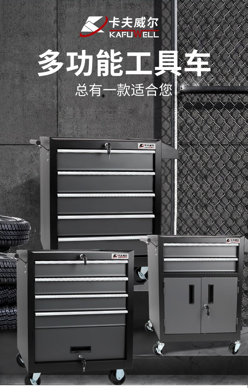Kraftwell Multifunctional Auto Repair Mobile Storage Cart Four-Wheel Cart Auto Repair Workshop Tool Cart Self-locking Drawer Cabinet Single Drawer Double Door A+ Increased Capacity PK4542T