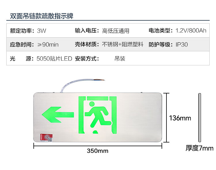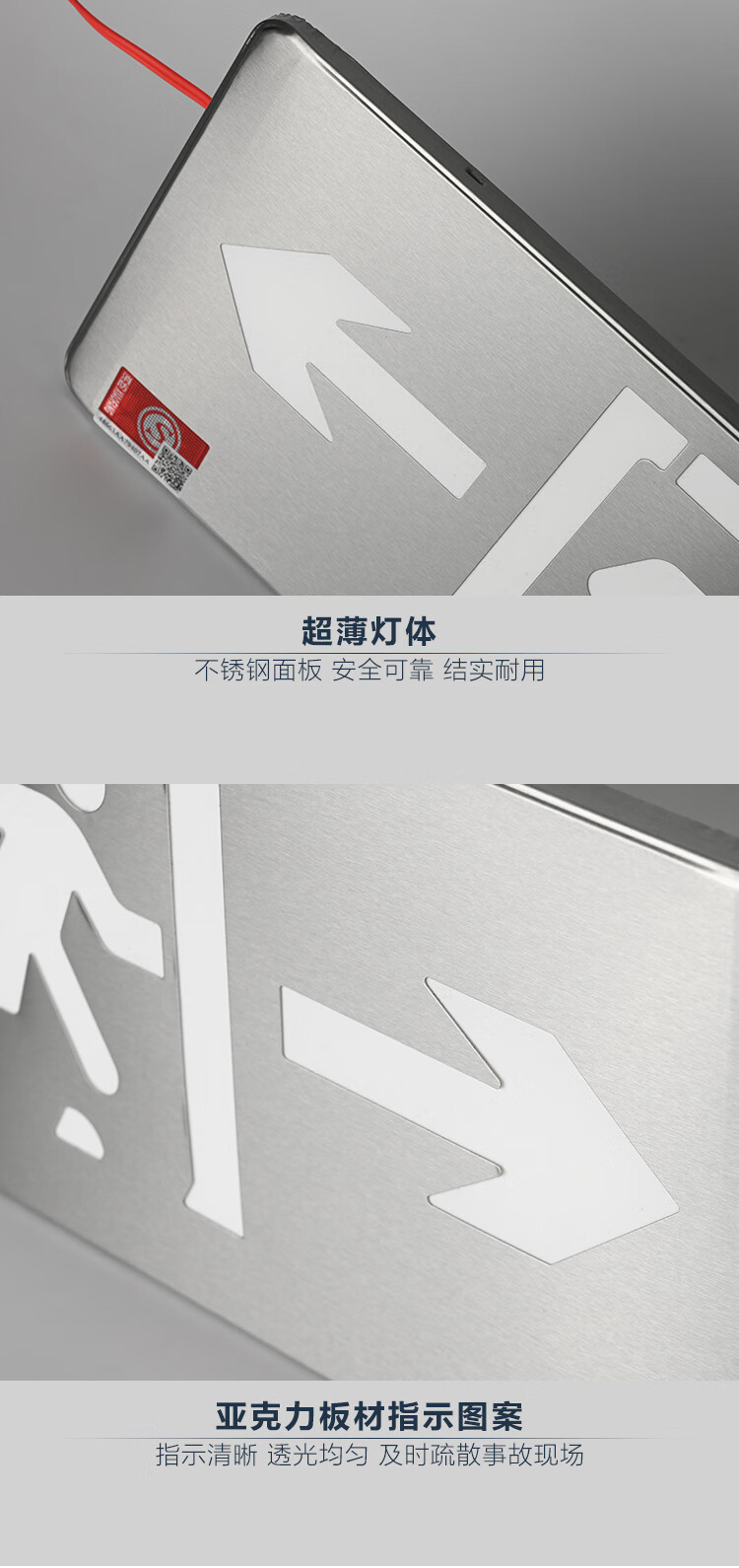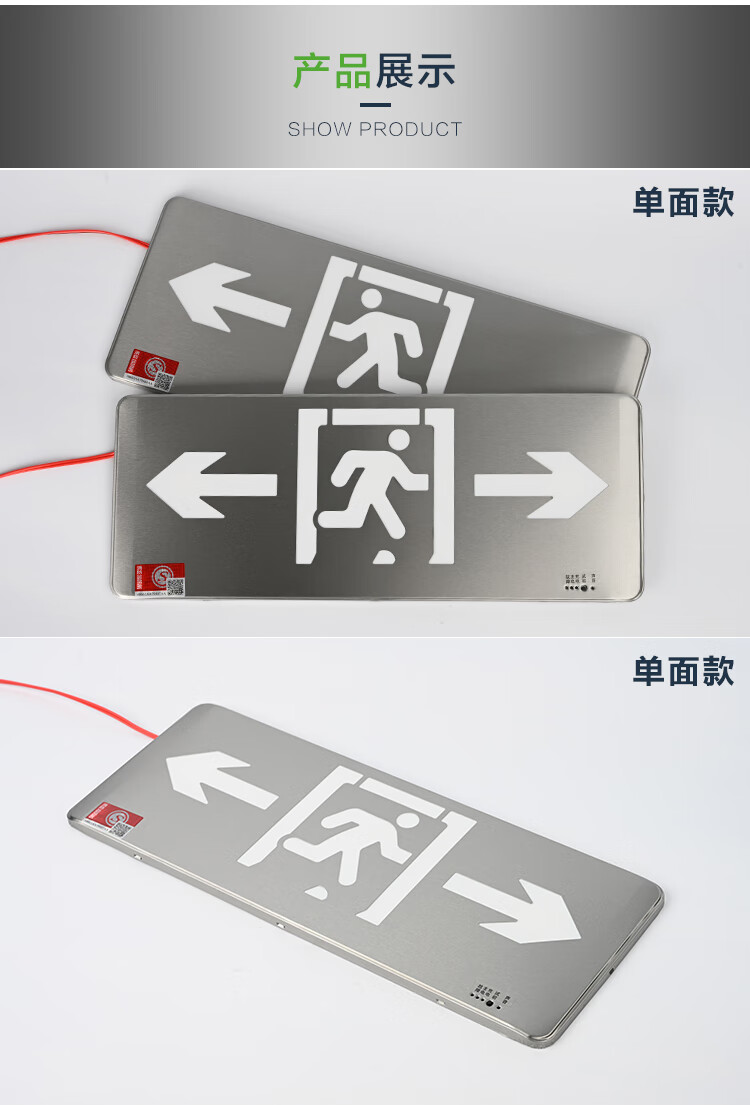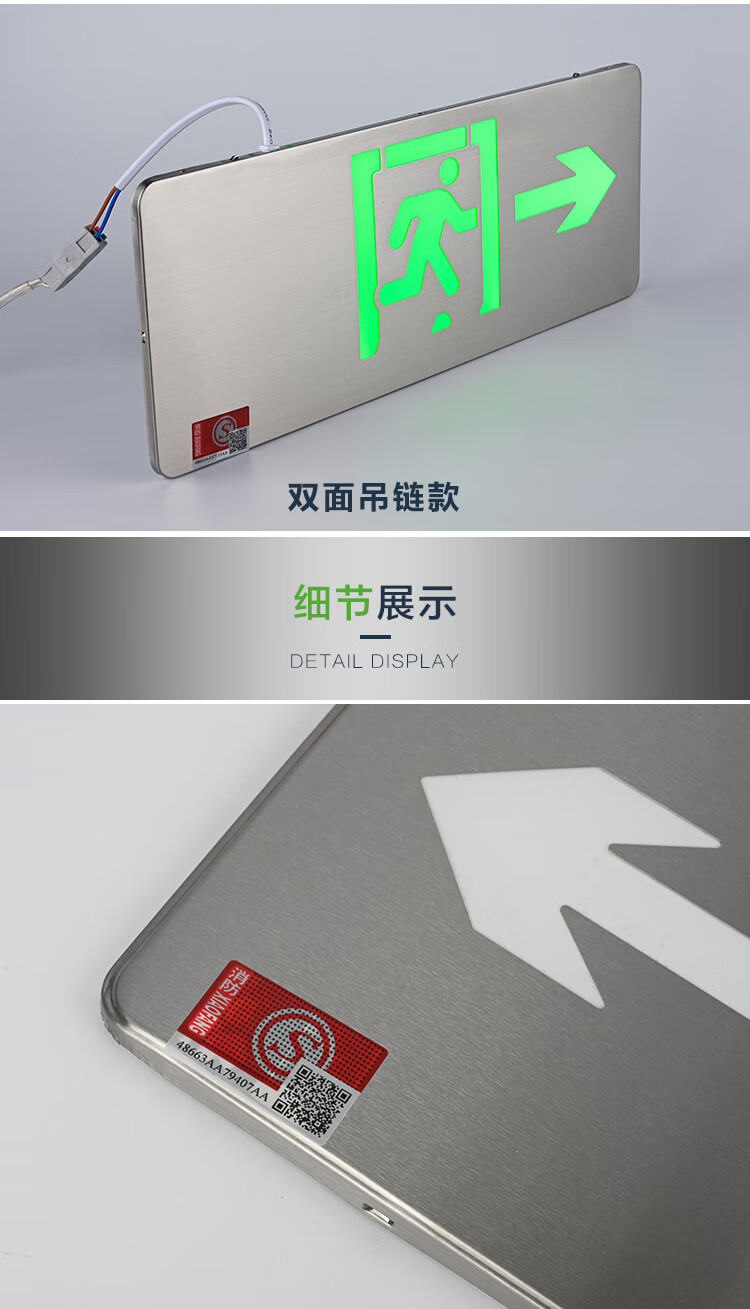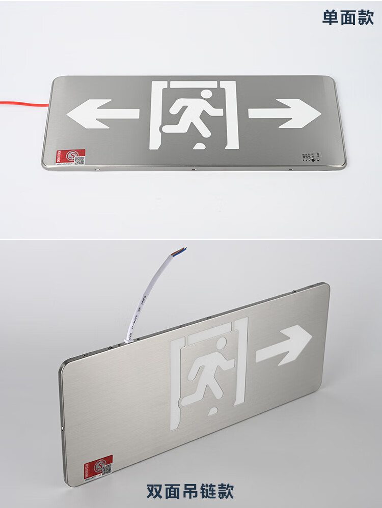 Stainless steel safety exit indicator light surface-mounted 24V36V220V universal power fire emergency evacuation sign light single-sided safety exit 24-220V