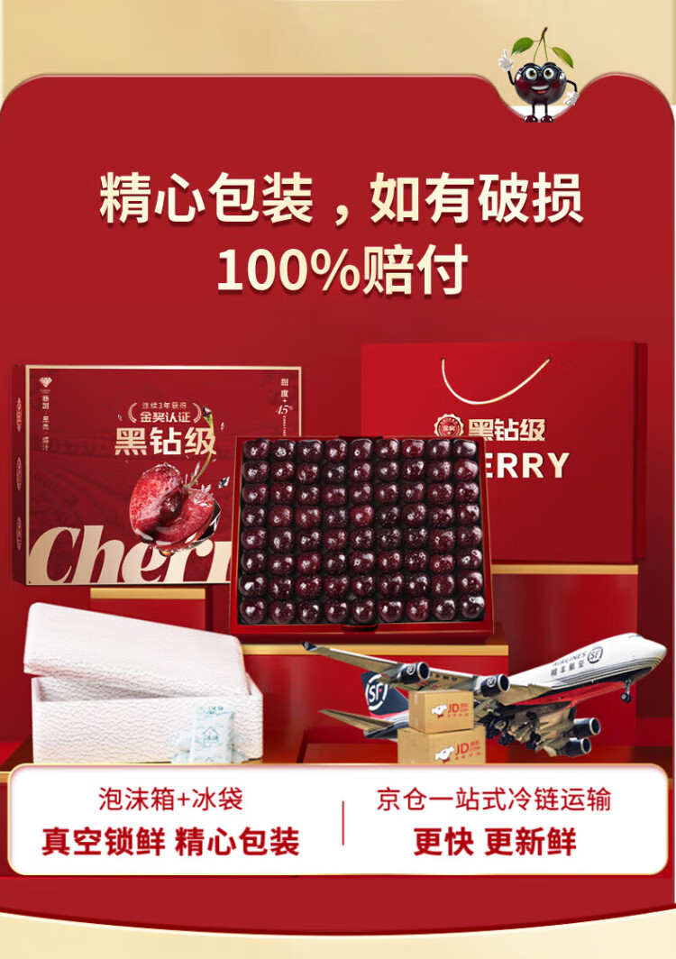 Sishu Gong Fruits and Vegetables Chilean Cherries JD-Next Day Delivery to Many Places Cherry Cherries 5kg 4J Grade Imported Fruit Gift Box 3Jin Jin equals 0.5kg (net weight) Value Pack - 80% Select Enjoyable Gift Box* Great Satisfaction Enjoyable Juice 3J Black Diamond Big Mac 30-32mm