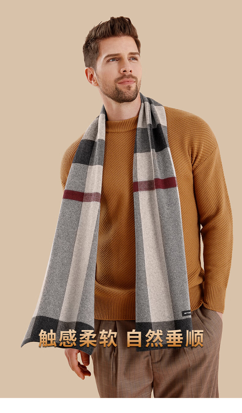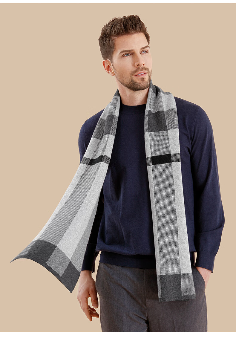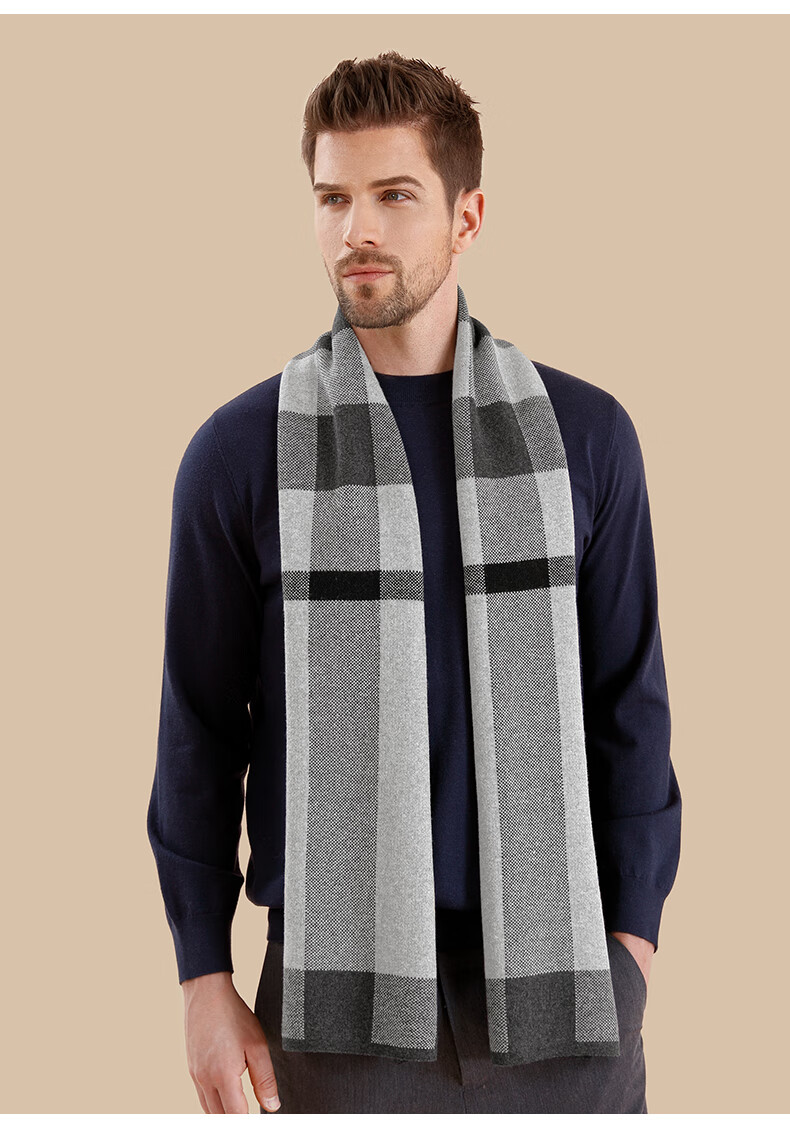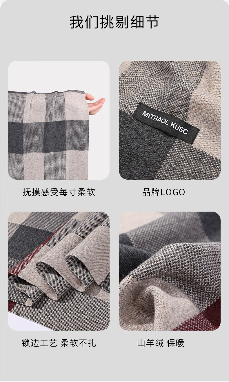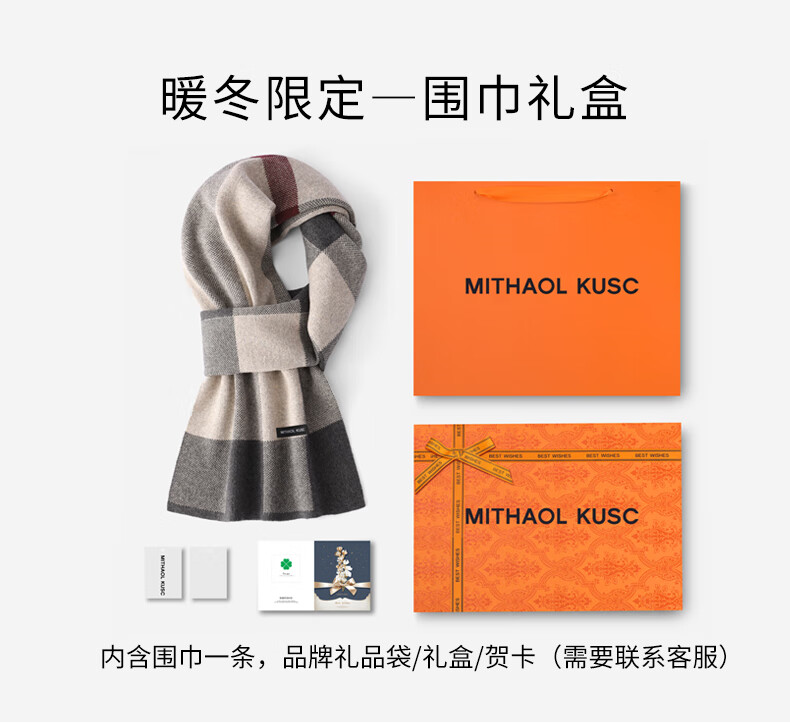 MITHAOL KUSC cashmere men's scarf 2025 winter thickened warm scarf birthday gift for boyfriend and husband gray high-end gift box