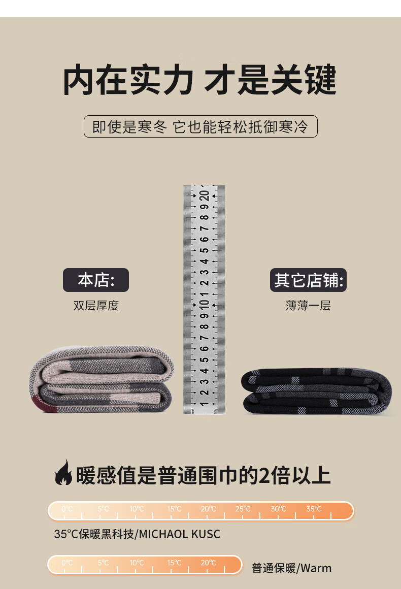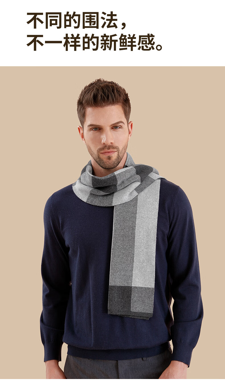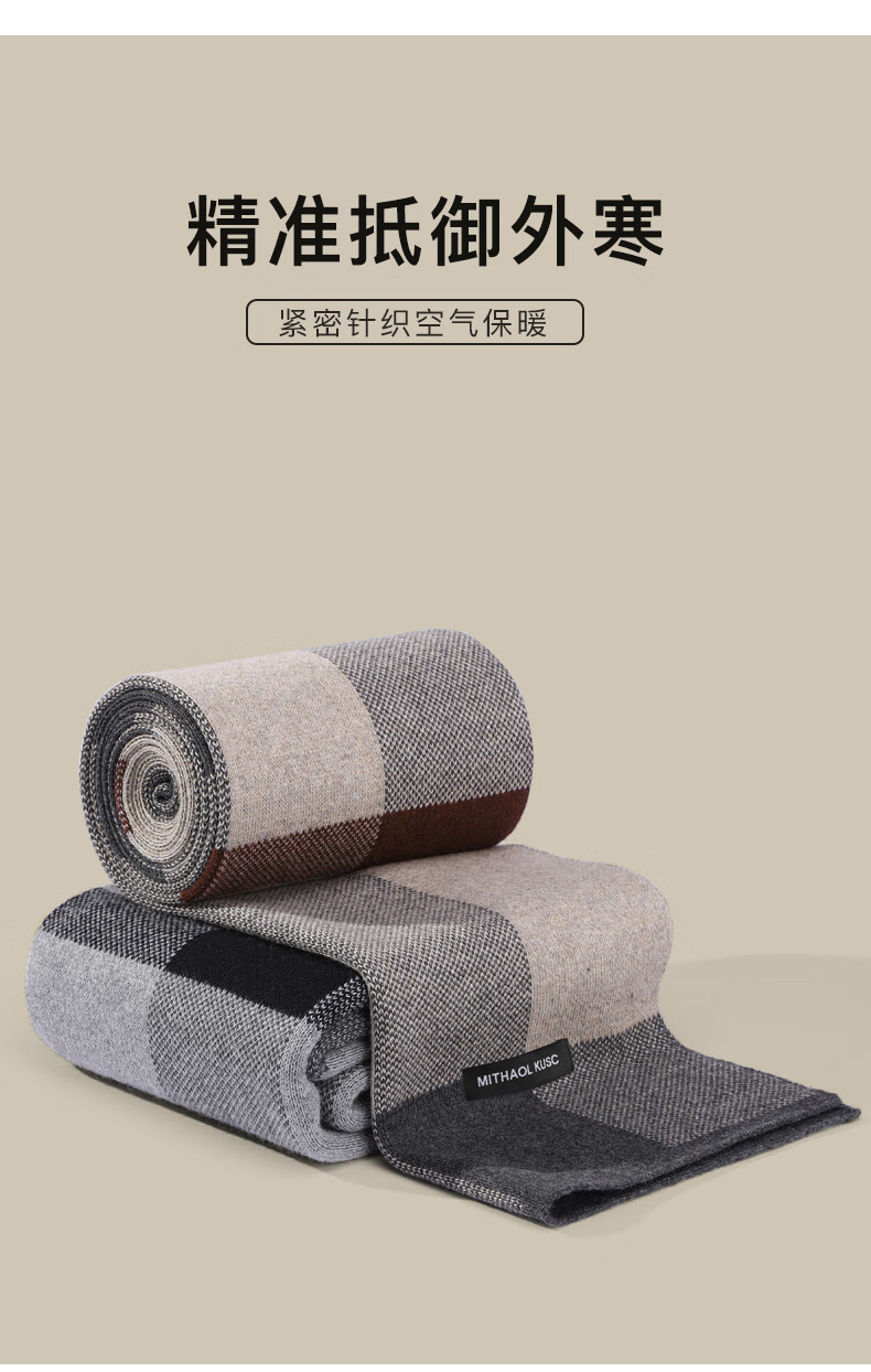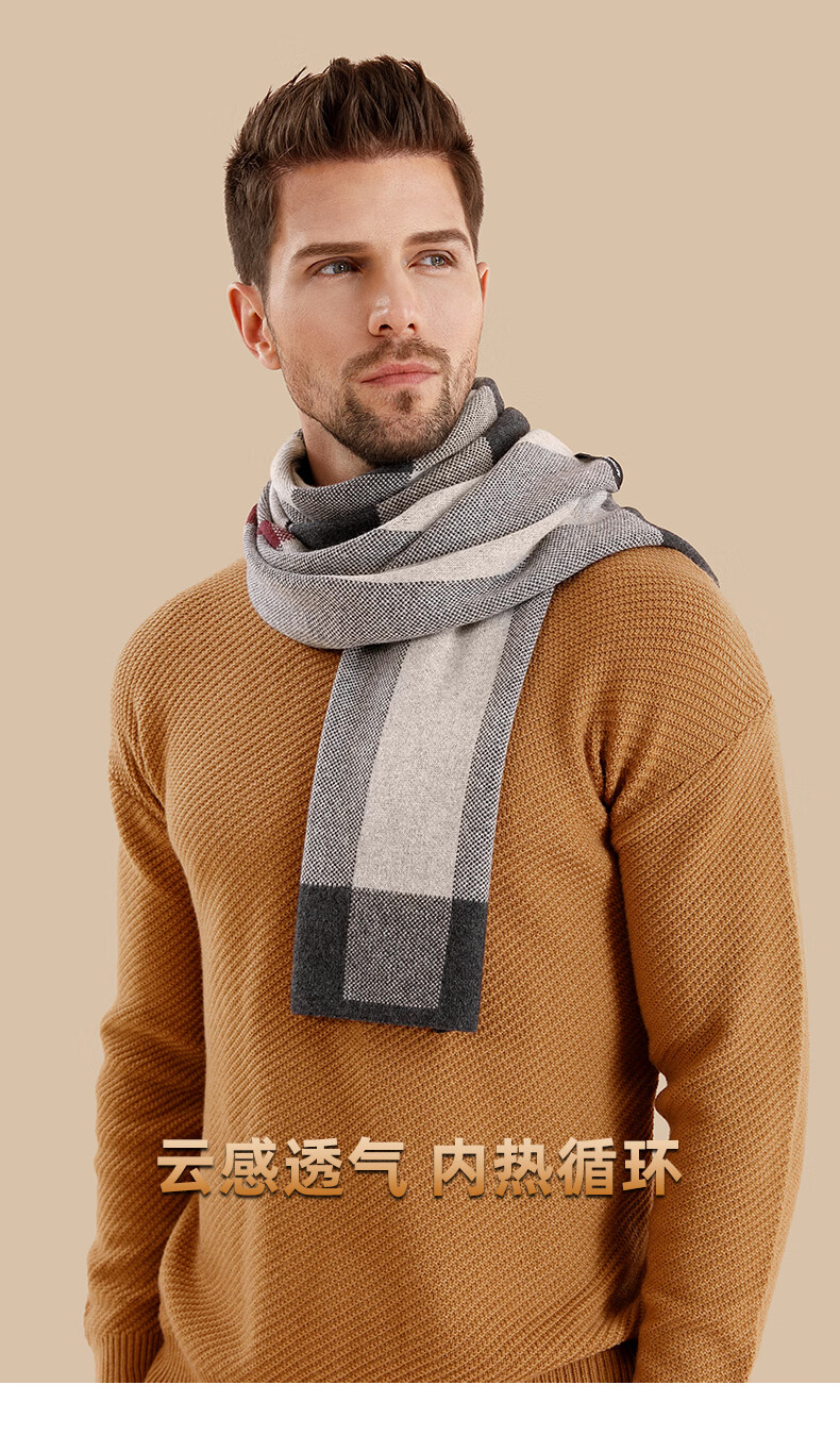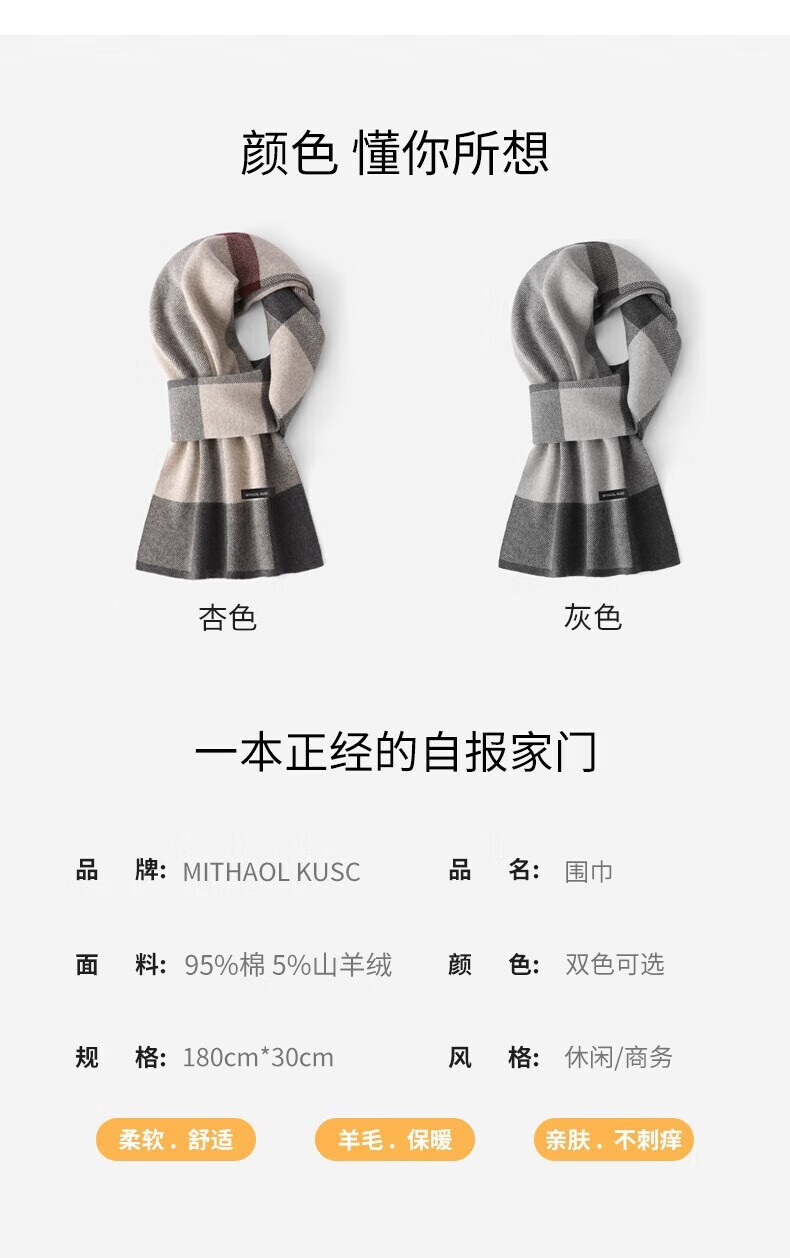 MITHAOL KUSC cashmere men's scarf 2025 winter thickened warm scarf birthday gift for boyfriend and husband gray high-end gift box