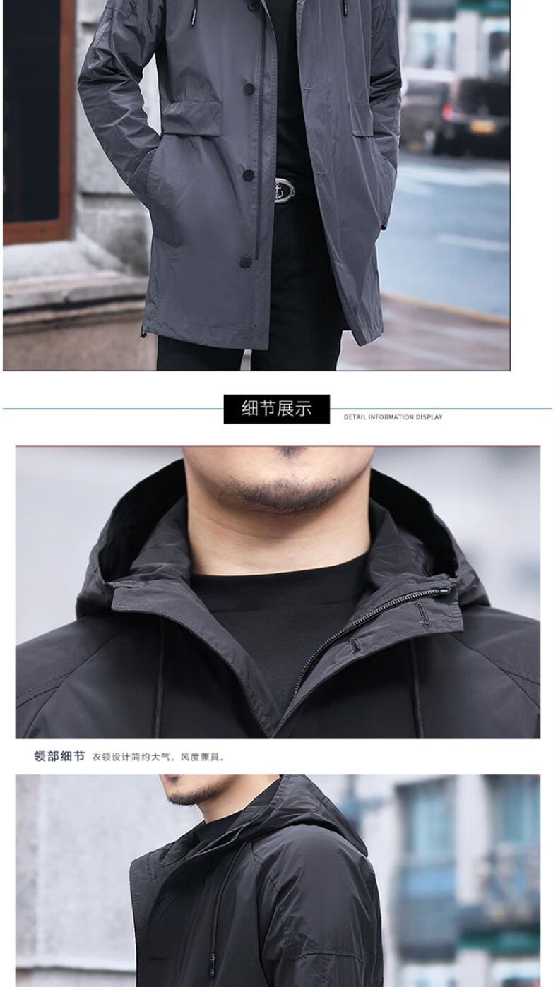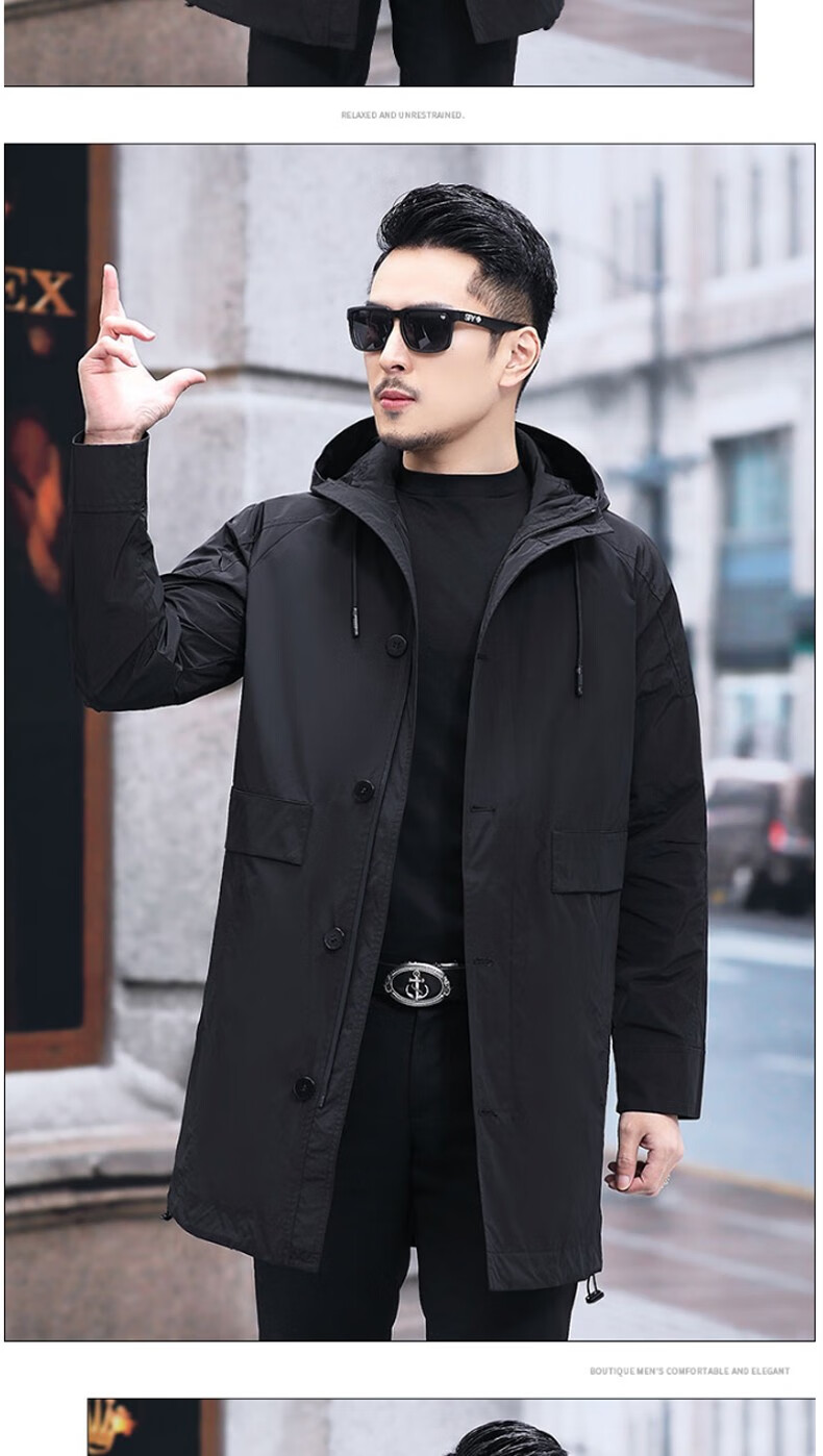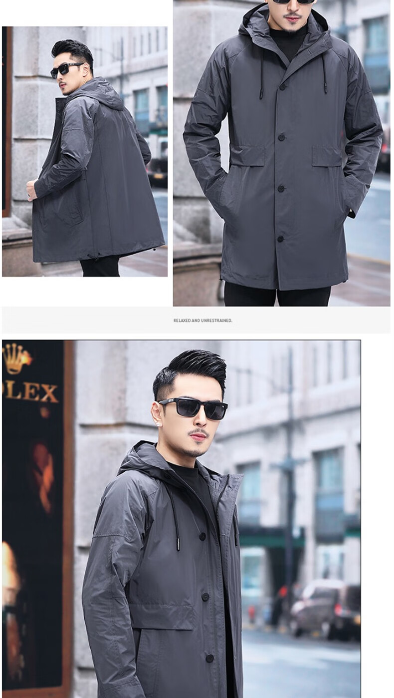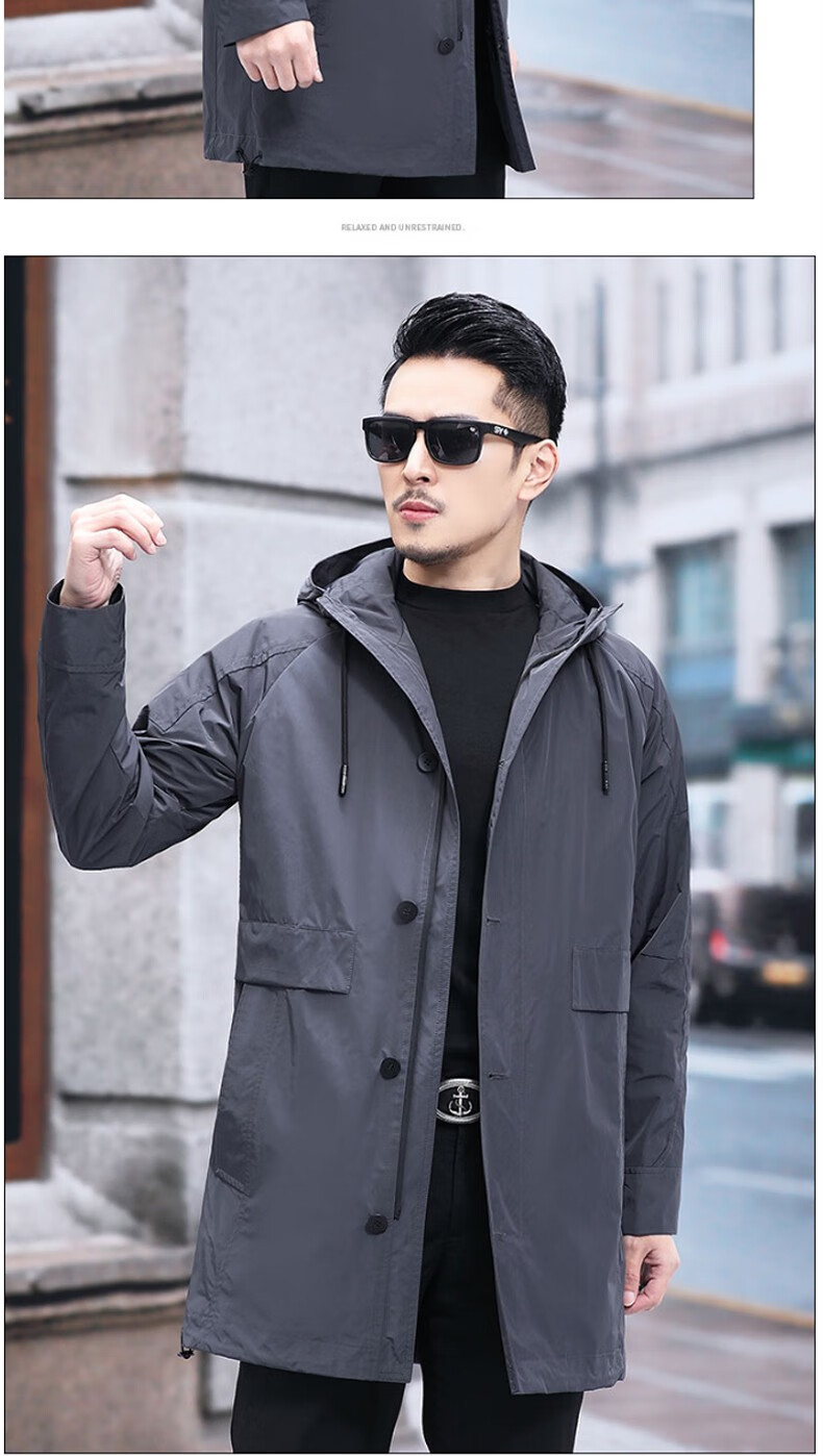 Luo Meng mid-length windbreaker men's autumn and winter windproof and cold-proof down coat for young and middle-aged people, hooded dad jacket FY192213 gray spring and autumn style XL 180 recommended 130-140 Jin Jin equals 0.5 kg