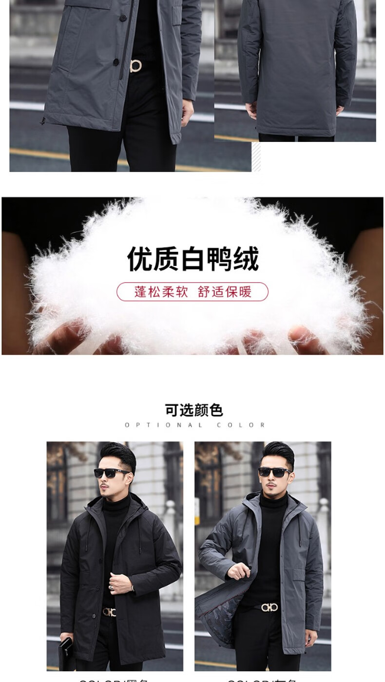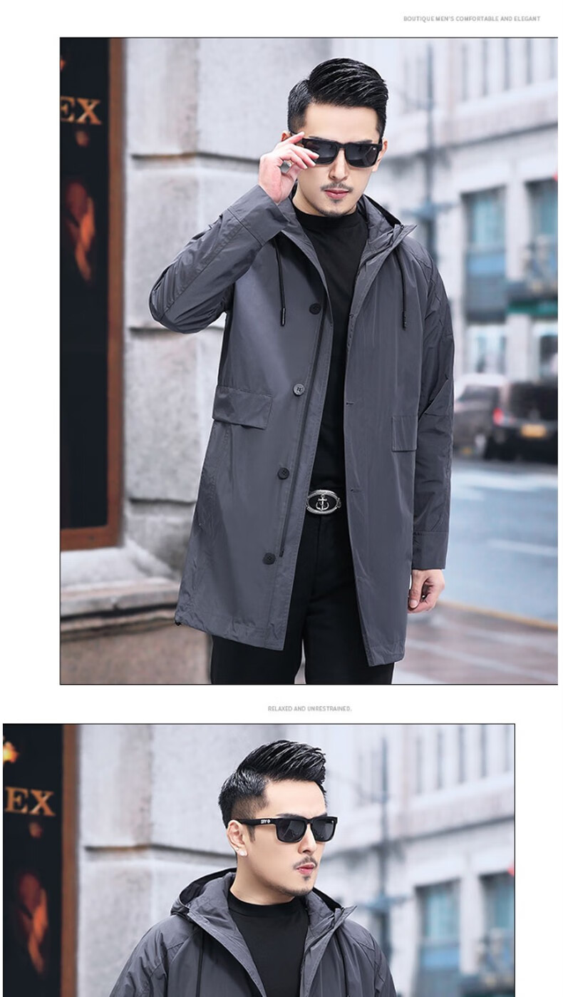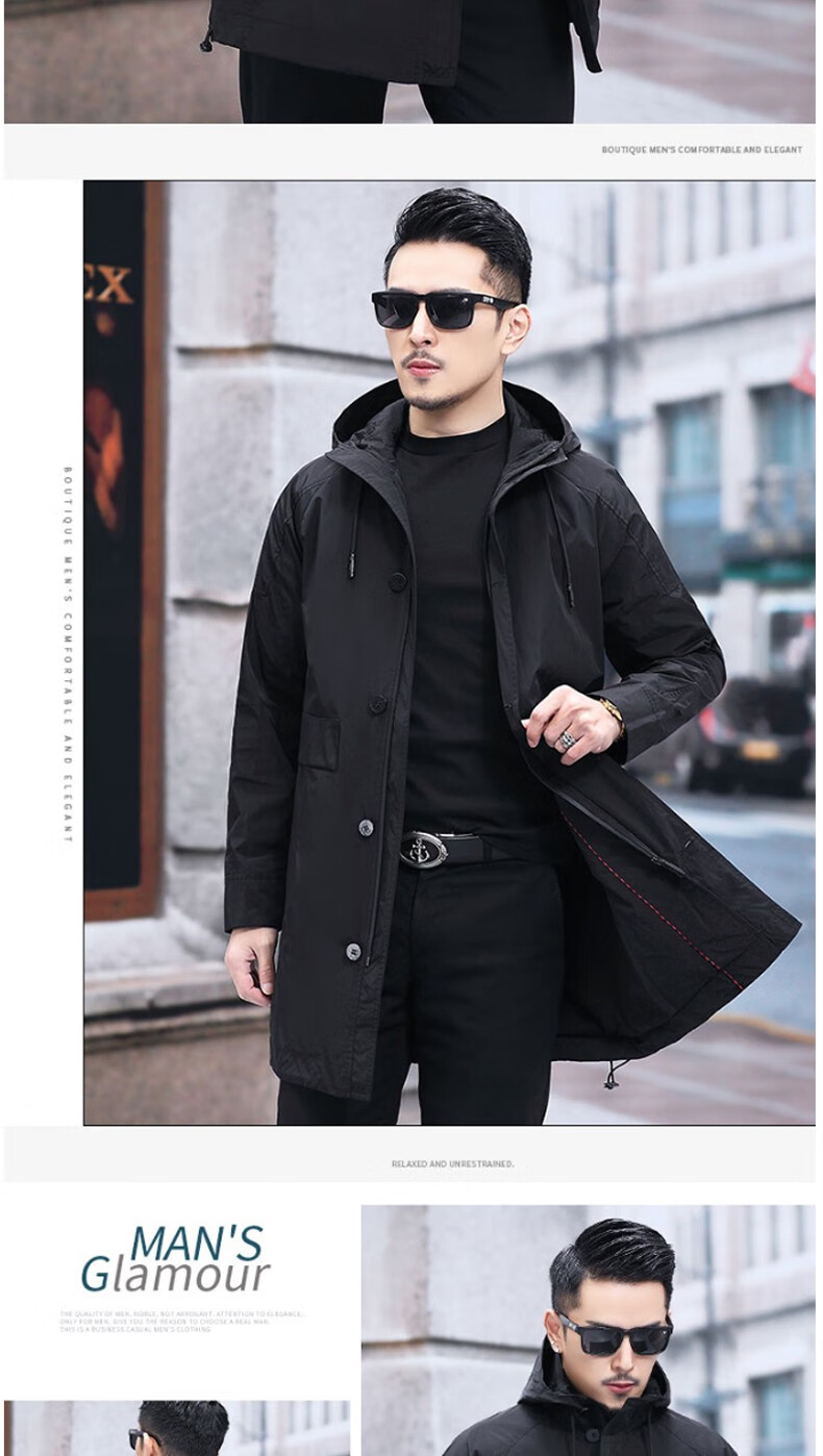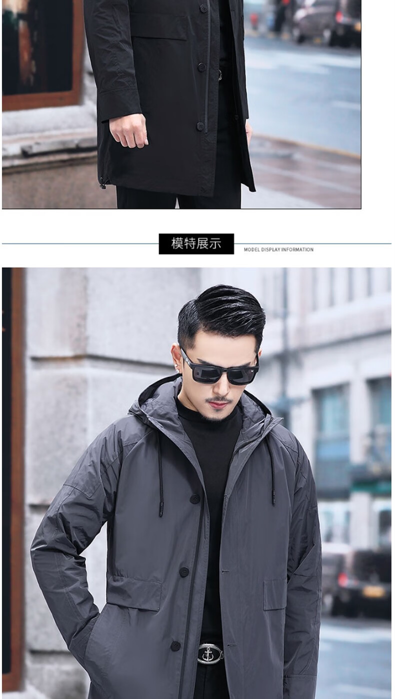 Luo Meng mid-length windbreaker men's autumn and winter windproof and cold-proof down coat for young and middle-aged people, hooded dad jacket FY192213 gray spring and autumn style XL 180 recommended 130-140 Jin Jin equals 0.5 kg