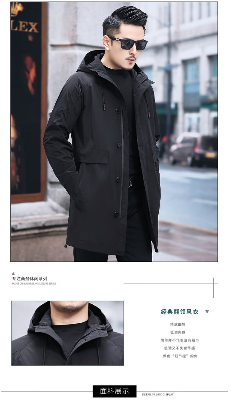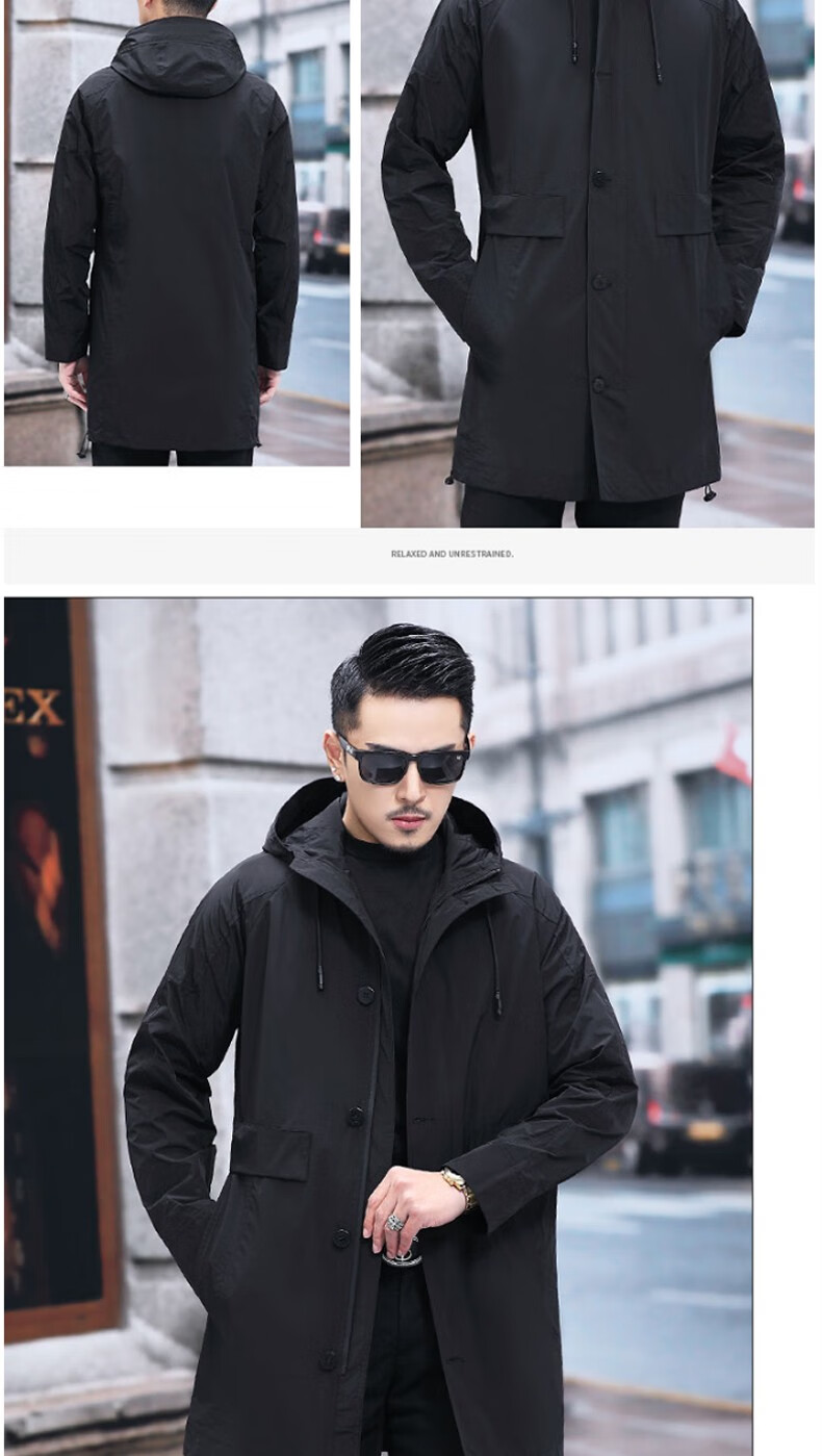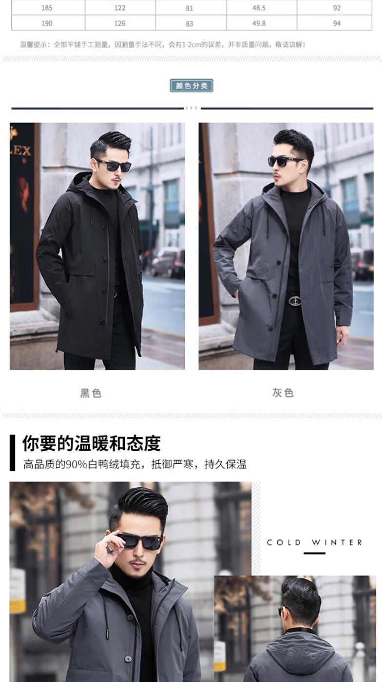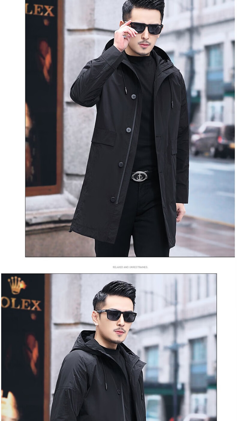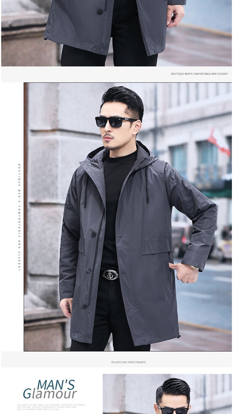 Luo Meng mid-length windbreaker men's autumn and winter windproof and cold-proof down coat for young and middle-aged people, hooded dad jacket FY192213 gray spring and autumn style XL 180 recommended 130-140 Jin Jin equals 0.5 kg