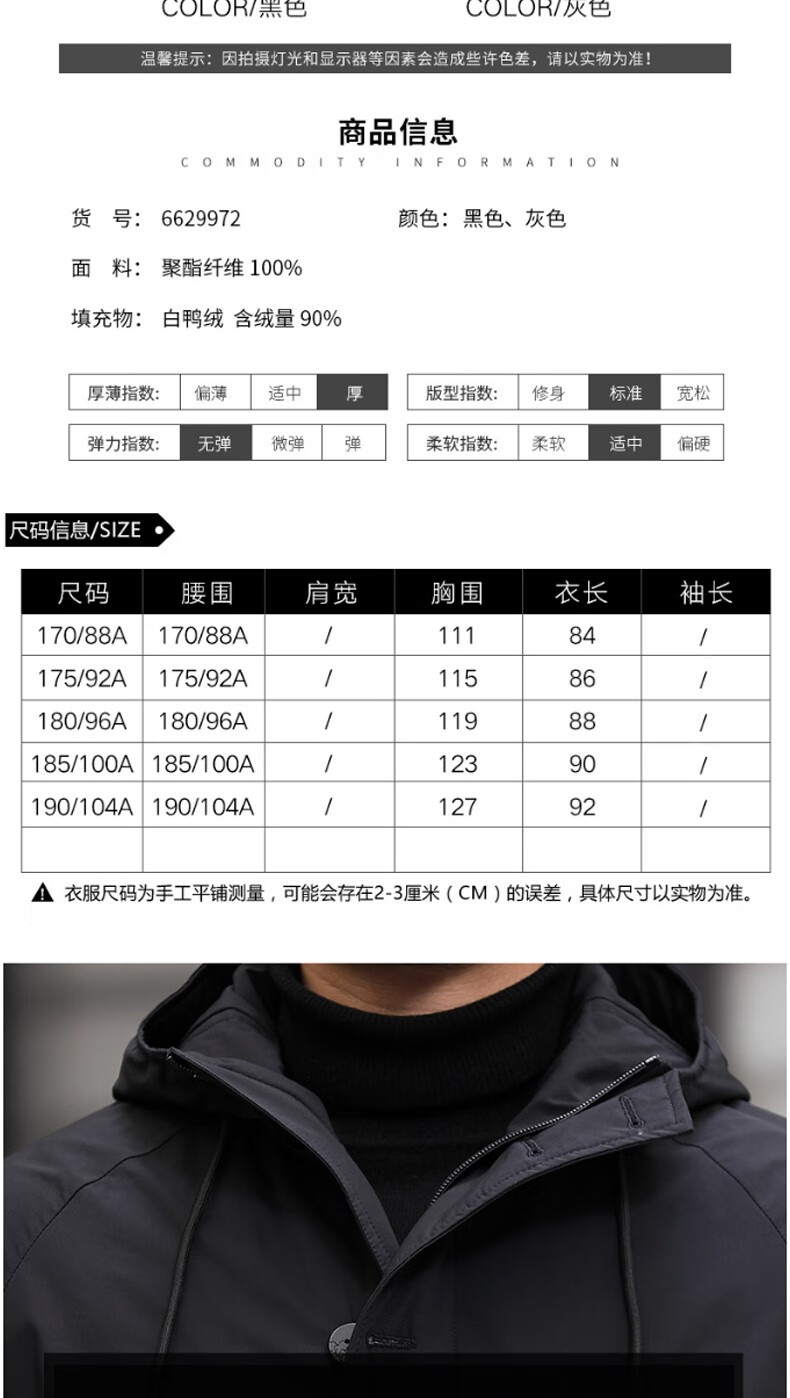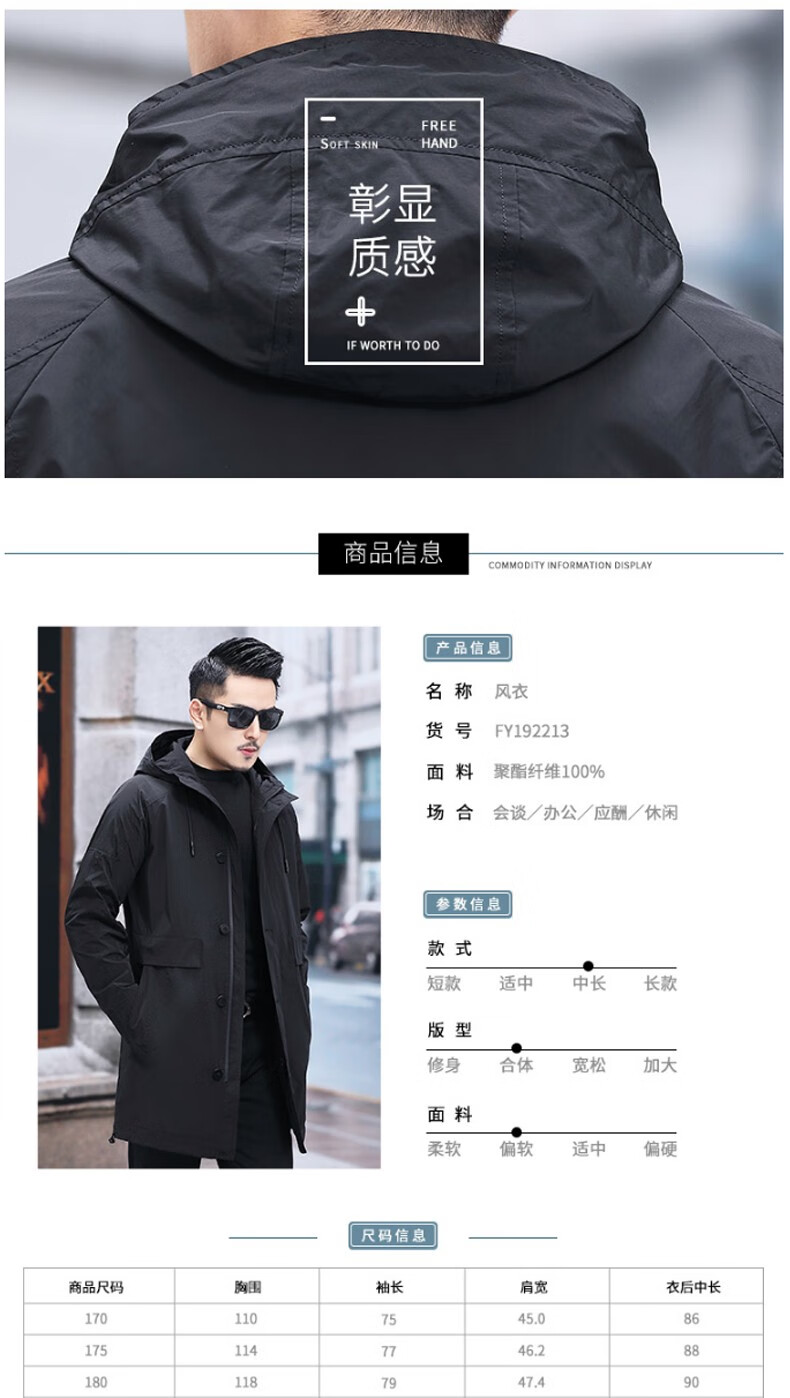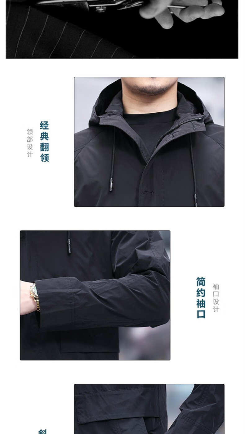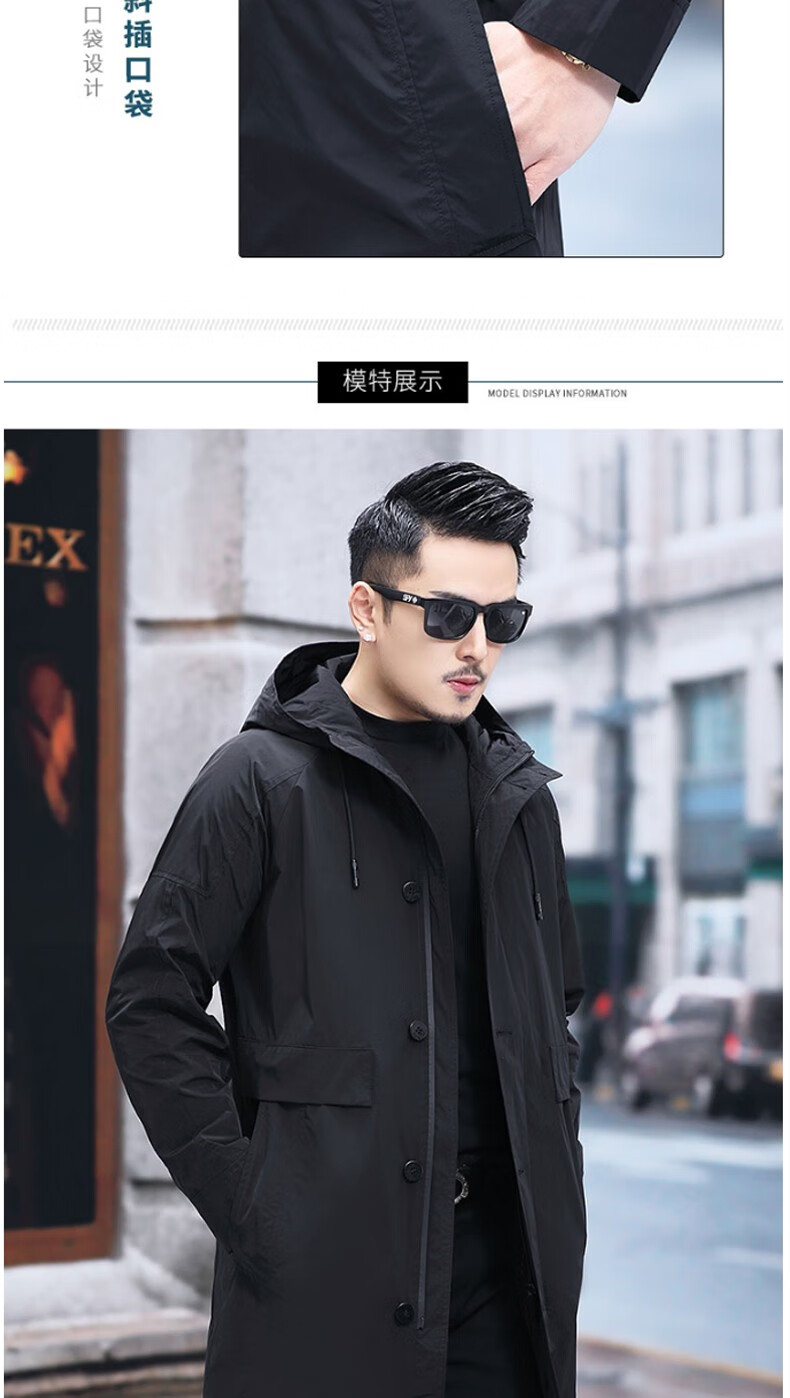 Luo Meng mid-length windbreaker men's autumn and winter windproof and cold-proof down coat for young and middle-aged people, hooded dad jacket FY192213 gray spring and autumn style XL 180 recommended 130-140 Jin Jin equals 0.5 kg