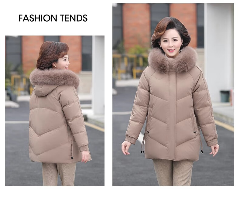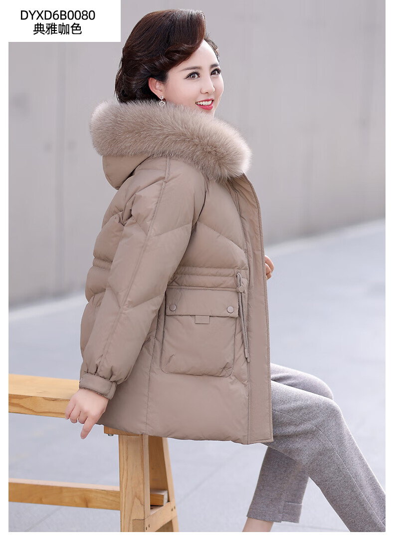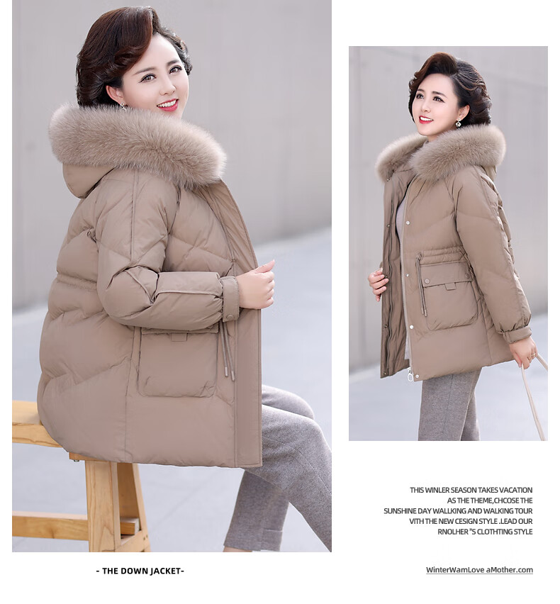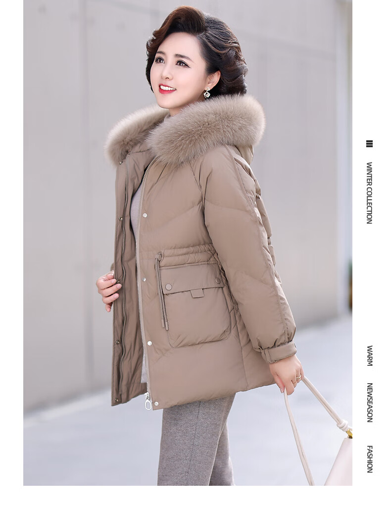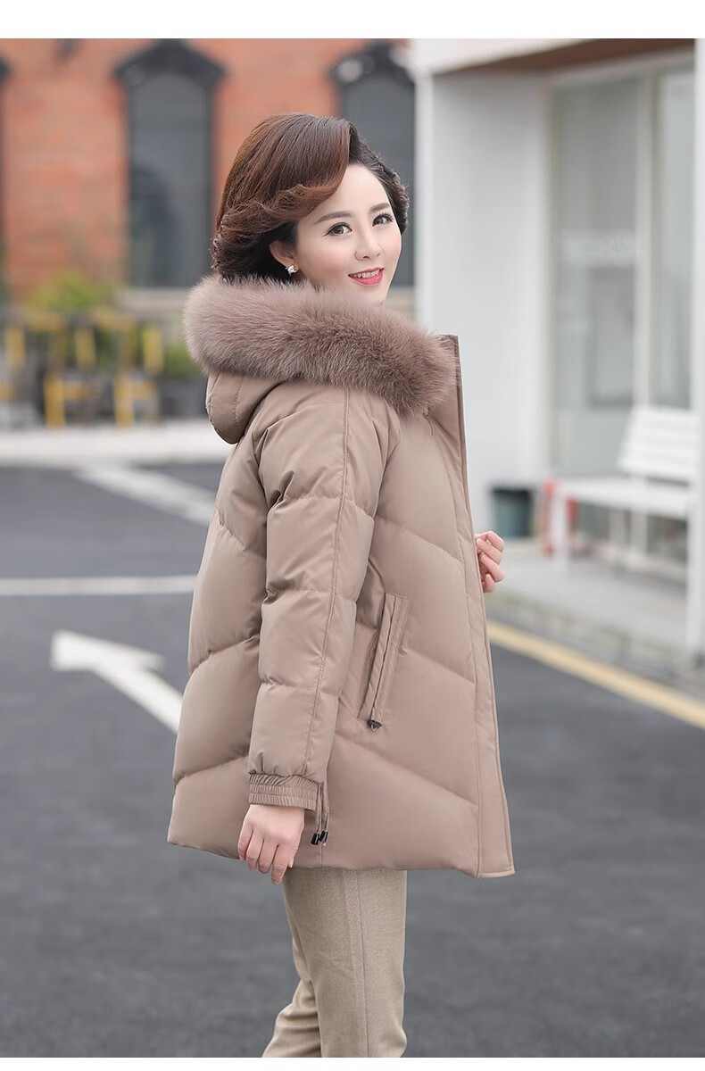 Yaya (YAYA) mother's winter down jacket women's mid-length 40 and 50-year-old middle-aged new coat foreign-style middle-aged and elderly women's clothing khaki 2XL