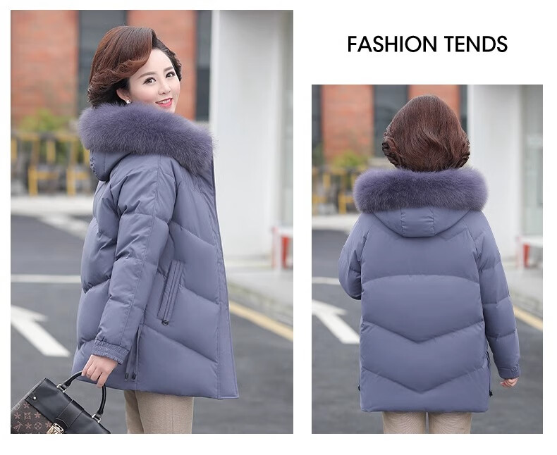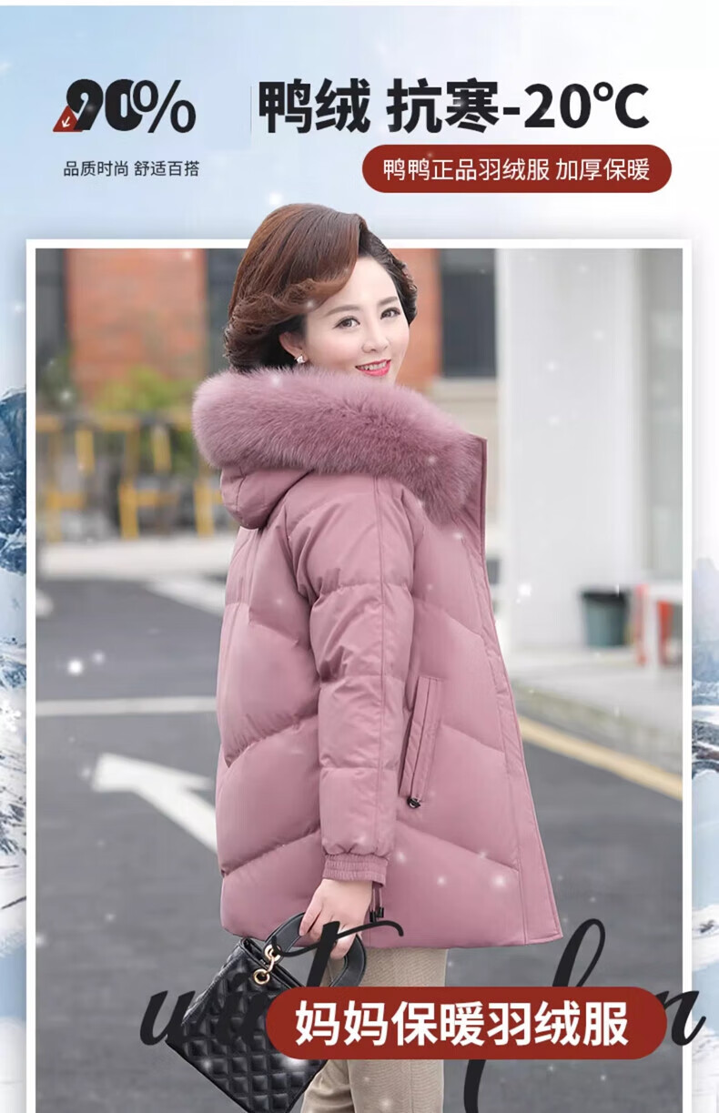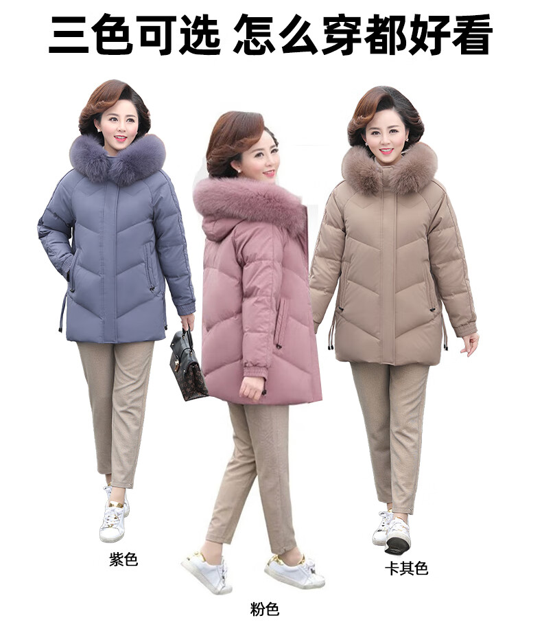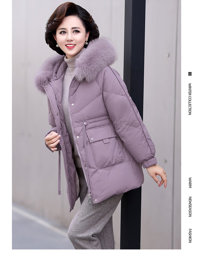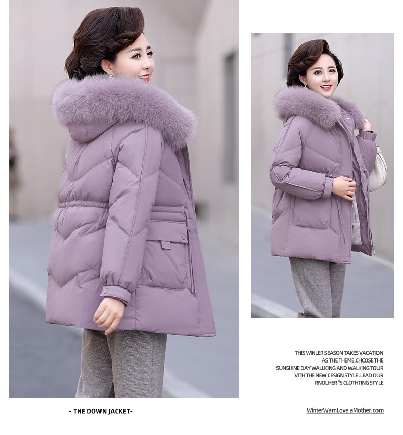Yaya (YAYA) mother's winter down jacket women's mid-length 40 and 50-year-old middle-aged new coat foreign-style middle-aged and elderly women's clothing khaki 2XL