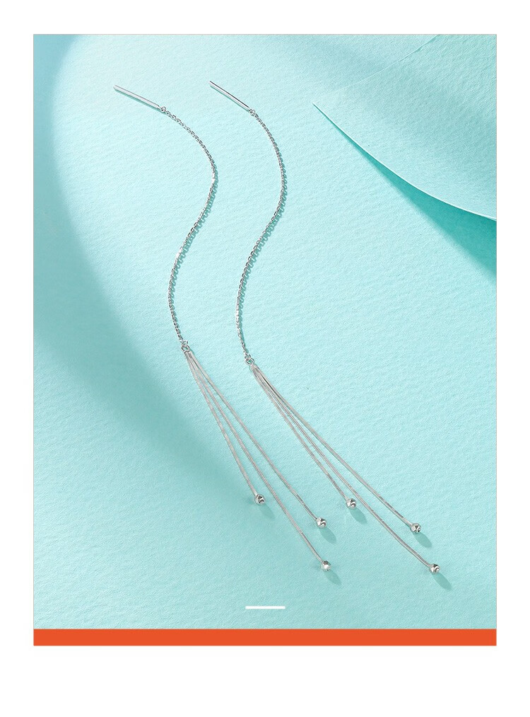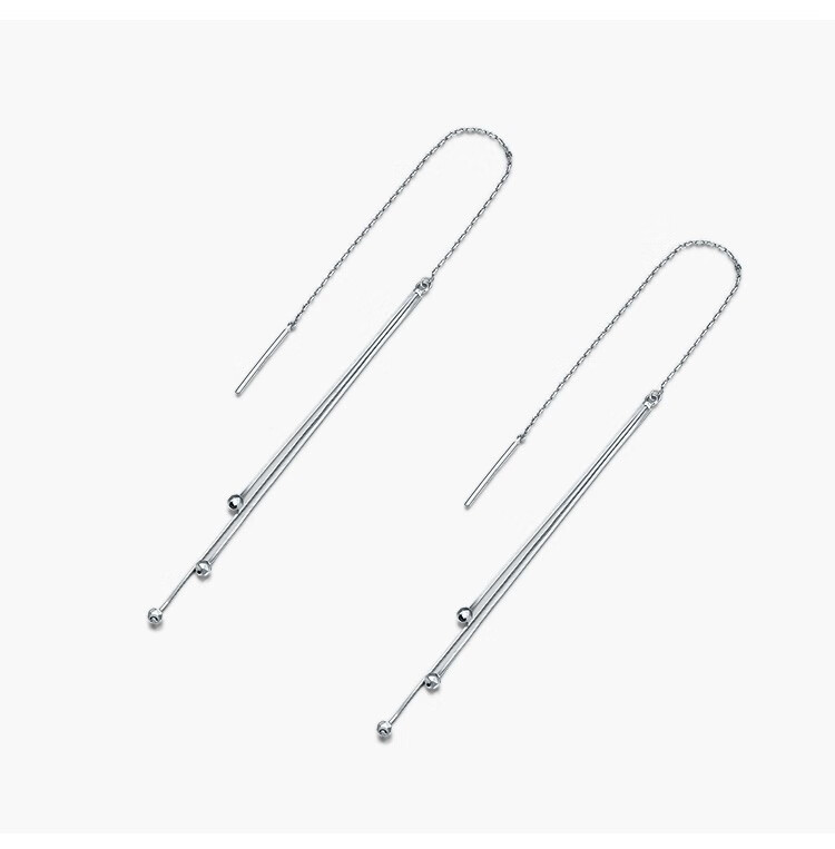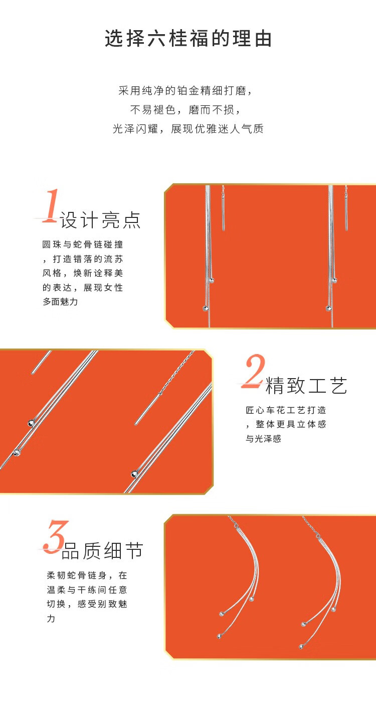 Liuguifu Jewelry pt950 platinum earrings for women tassel platinum round bead earrings long simple birthday gift 2.10g