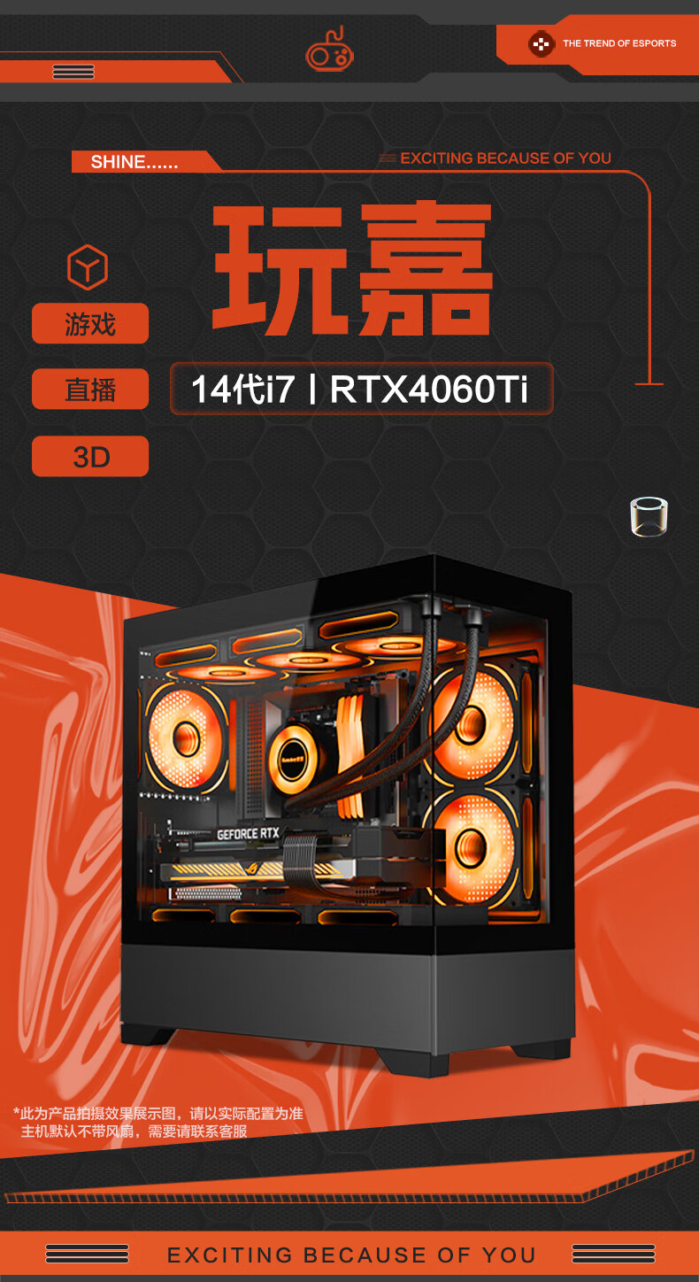 Shuoyang 14th generation Core i7/RTX4060/4060Ti chicken game e-sports live broadcast water-cooled desktop DIY assembly computer host complete set configuration three 13th generation i7丨RTX4060Ti standard version
