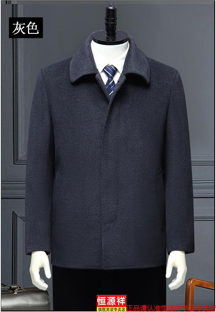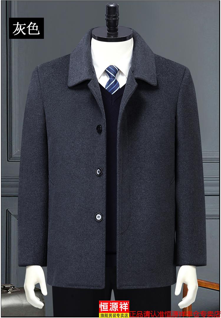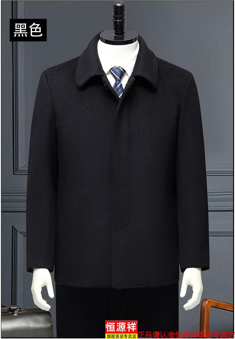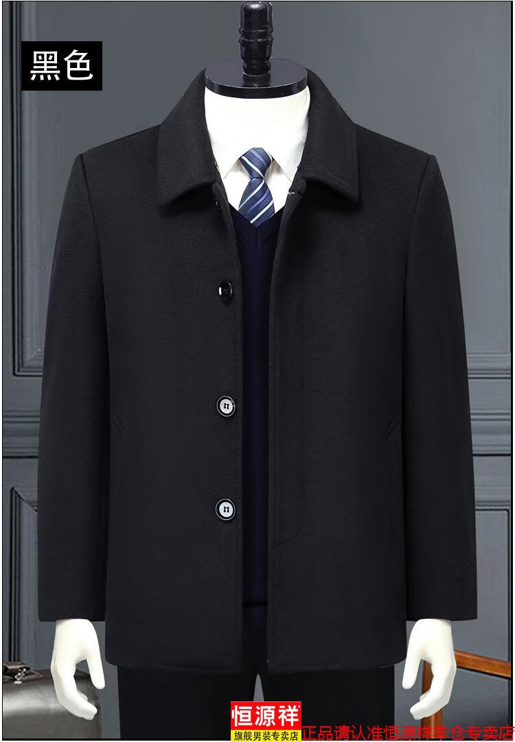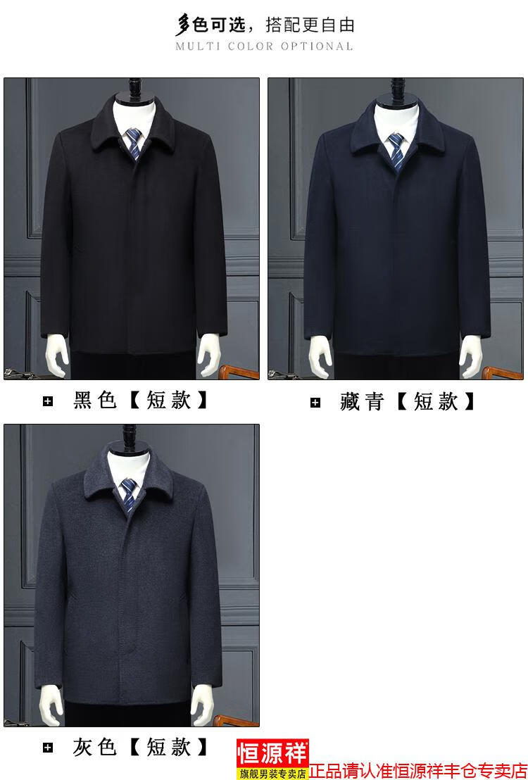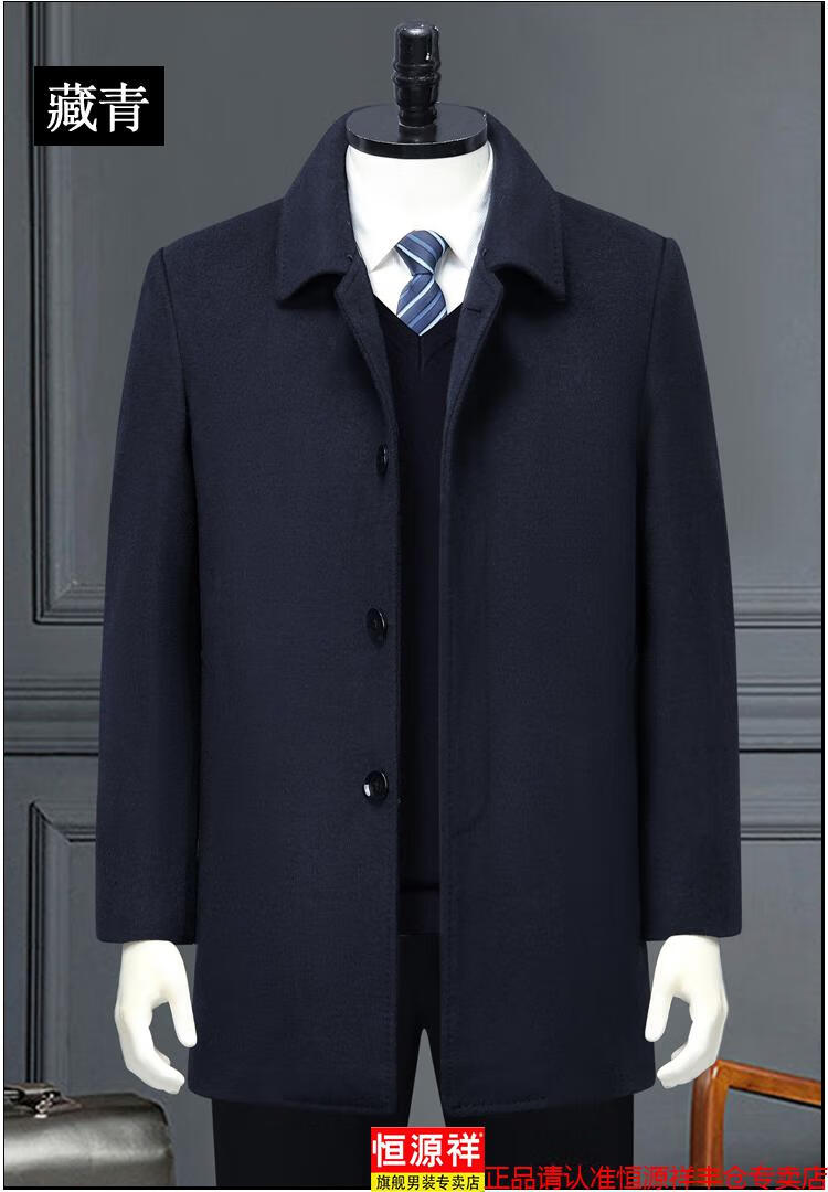 Hengyuanxiang winter cashmere coat short men's lapel business middle-aged and elderly thickened loose woolen coat versatile new product Navy blue removable down liner 170/M recommended 100-120 Jin Jin equals 0.5 kg