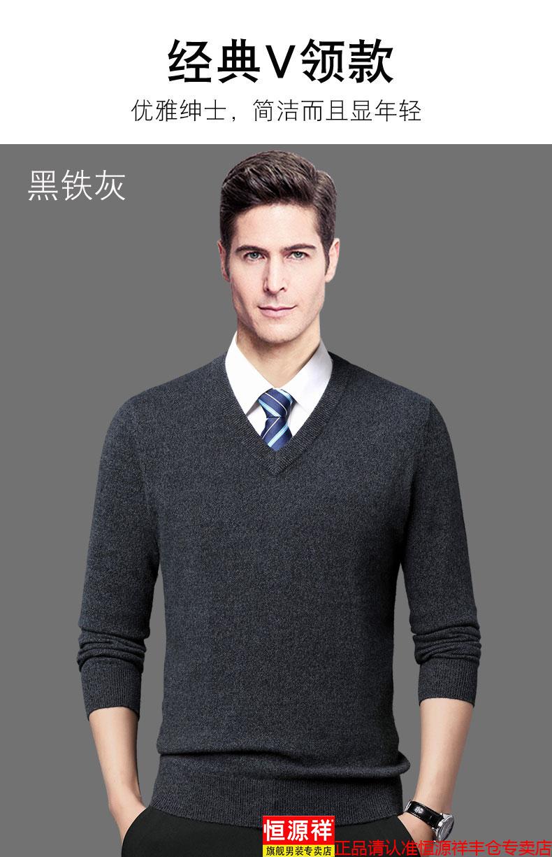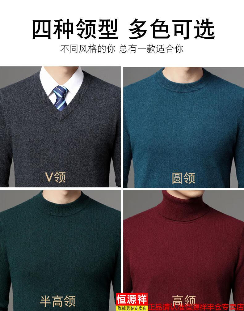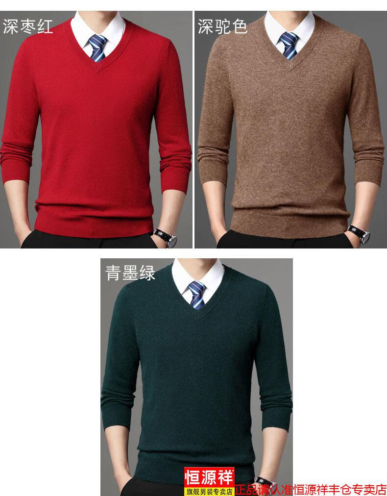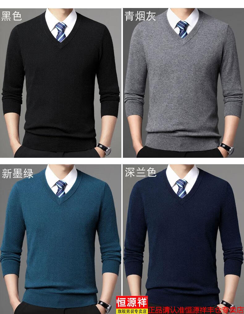Hengyuanxiang light luxury high-end cashmere sweater men's winter cashmere thickened V-neck brand cardigan sweater dad new product dark green V-neck L 110/175