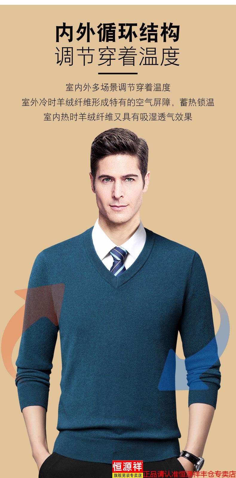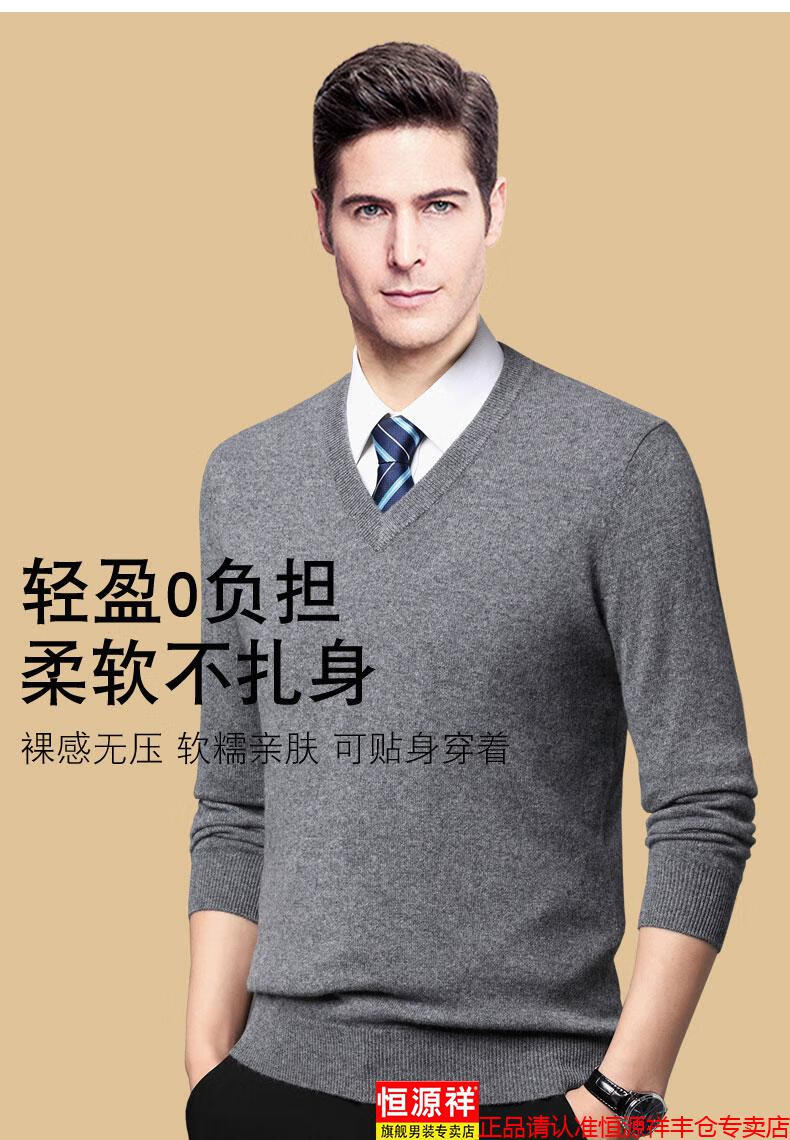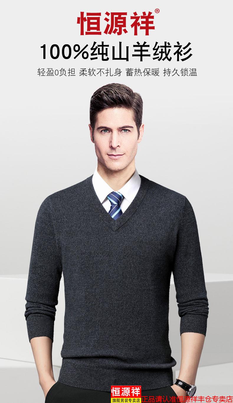 Hengyuanxiang light luxury high-end cashmere sweater men's winter cashmere thickened V-neck brand cardigan sweater dad new product dark green V-neck L 110/175