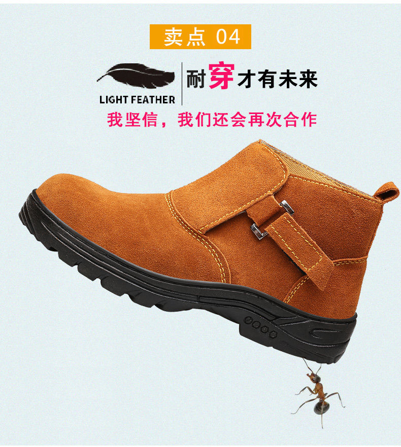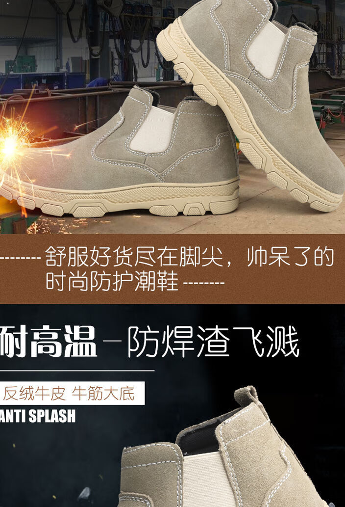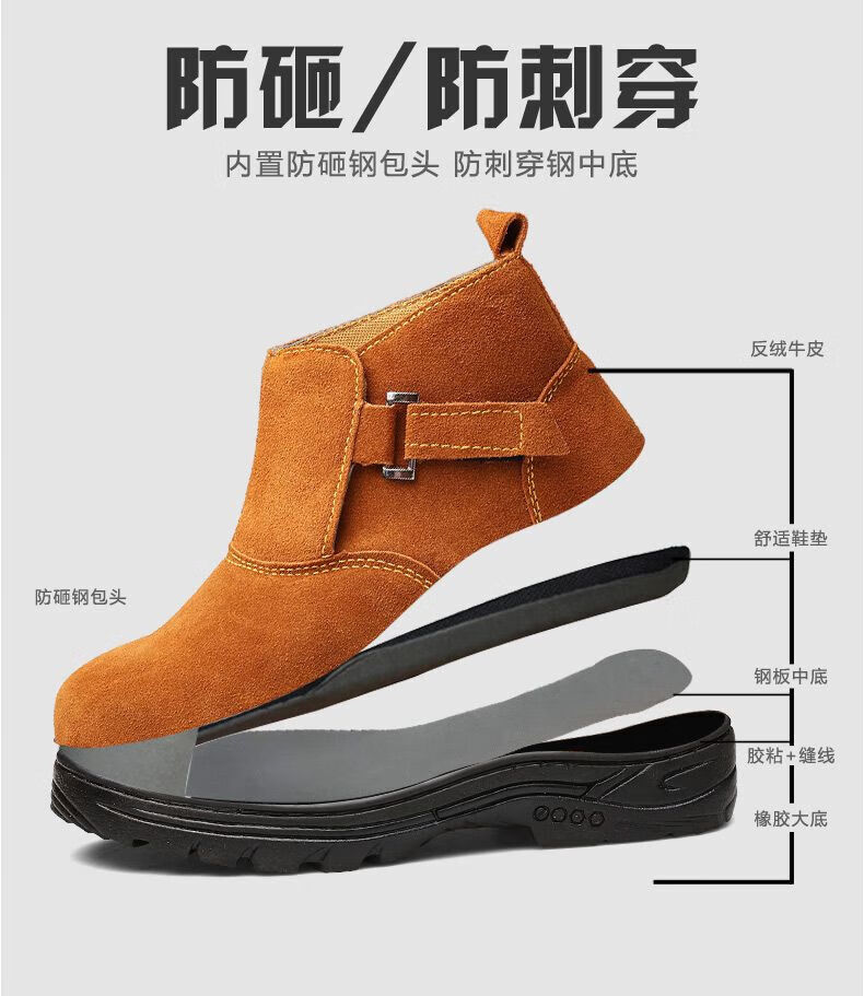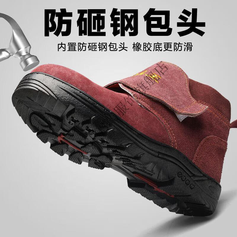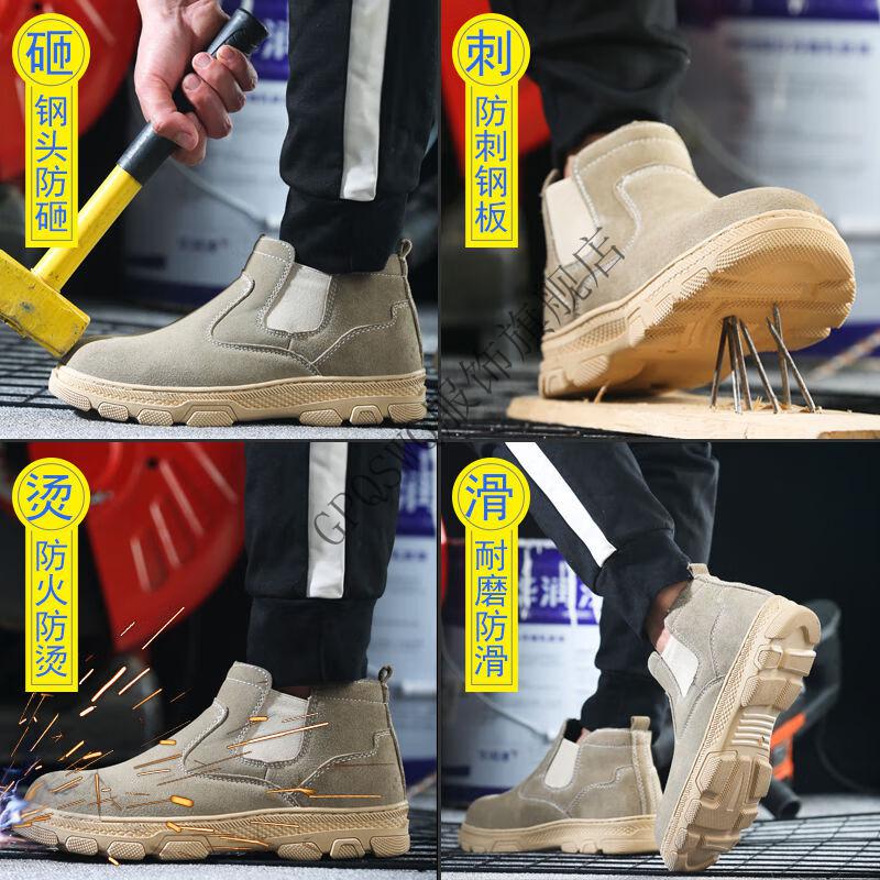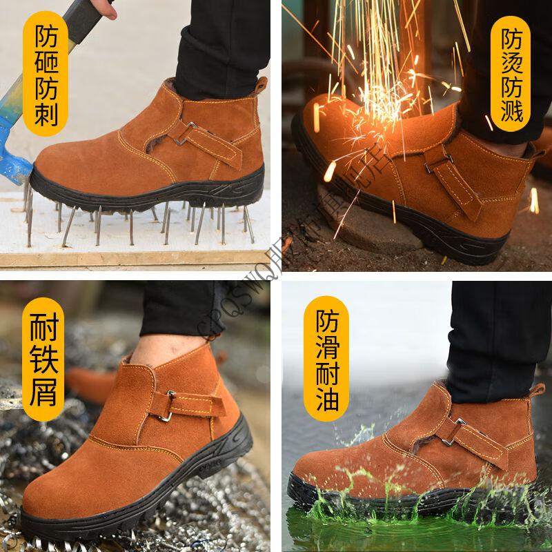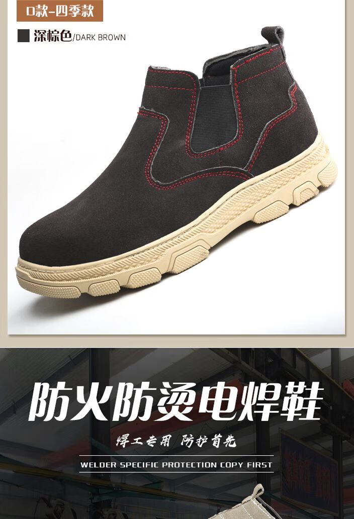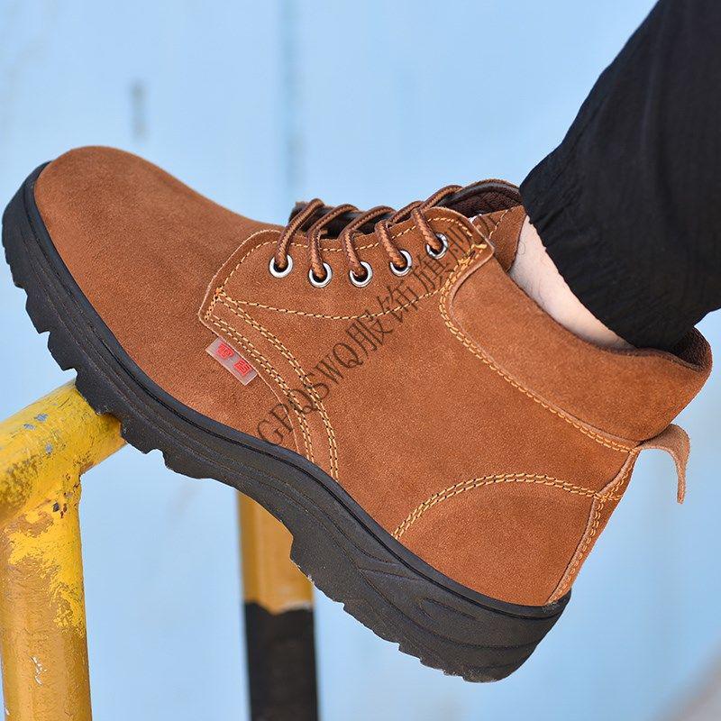 Genuine leather welder labor protection shoes for men, steel toe caps, anti-smash, anti-puncture, wear-resistant, cowhide anti-scalding safety shoes, work shoes, mid-top black brown (beef tendon bottom) 43