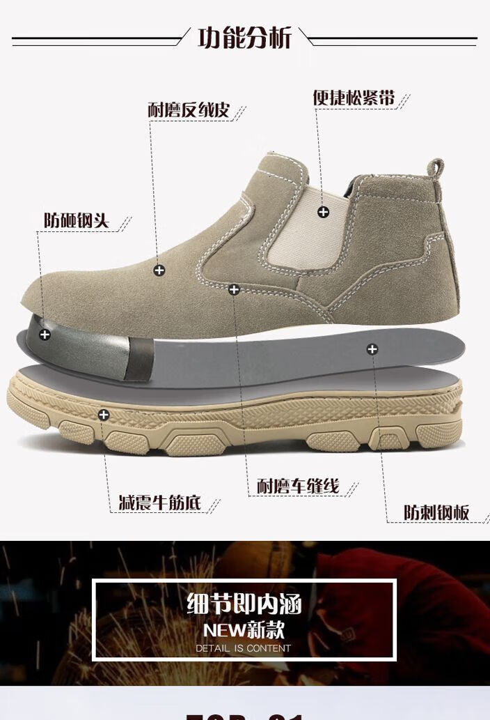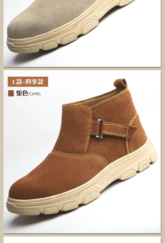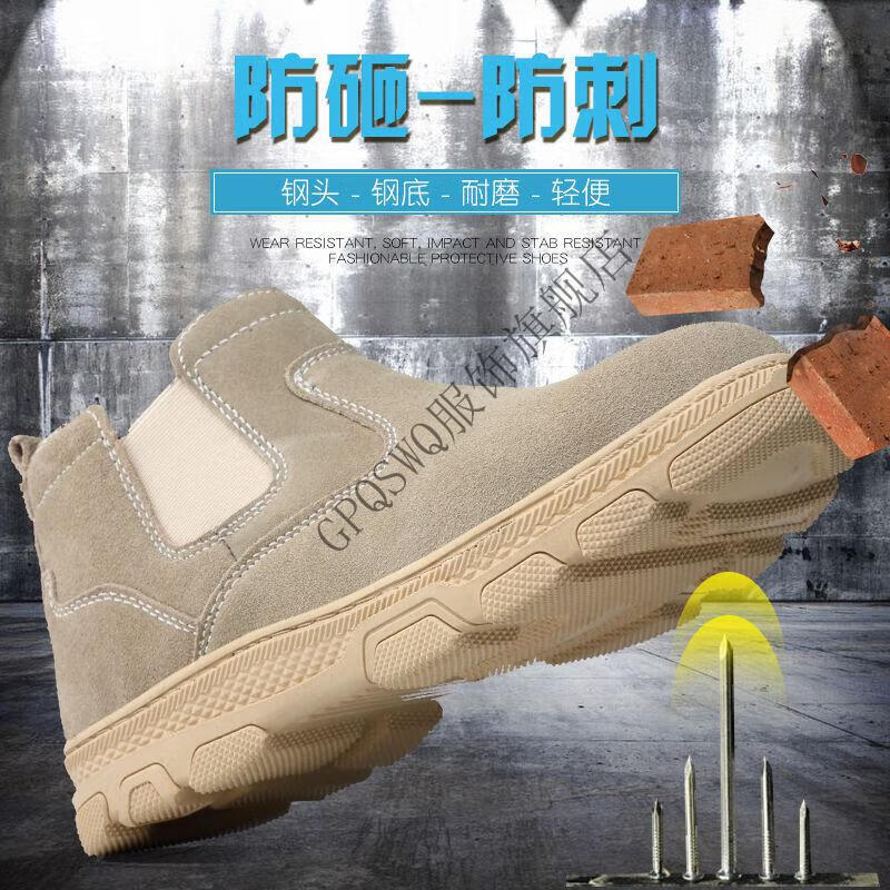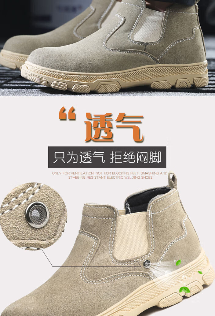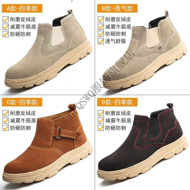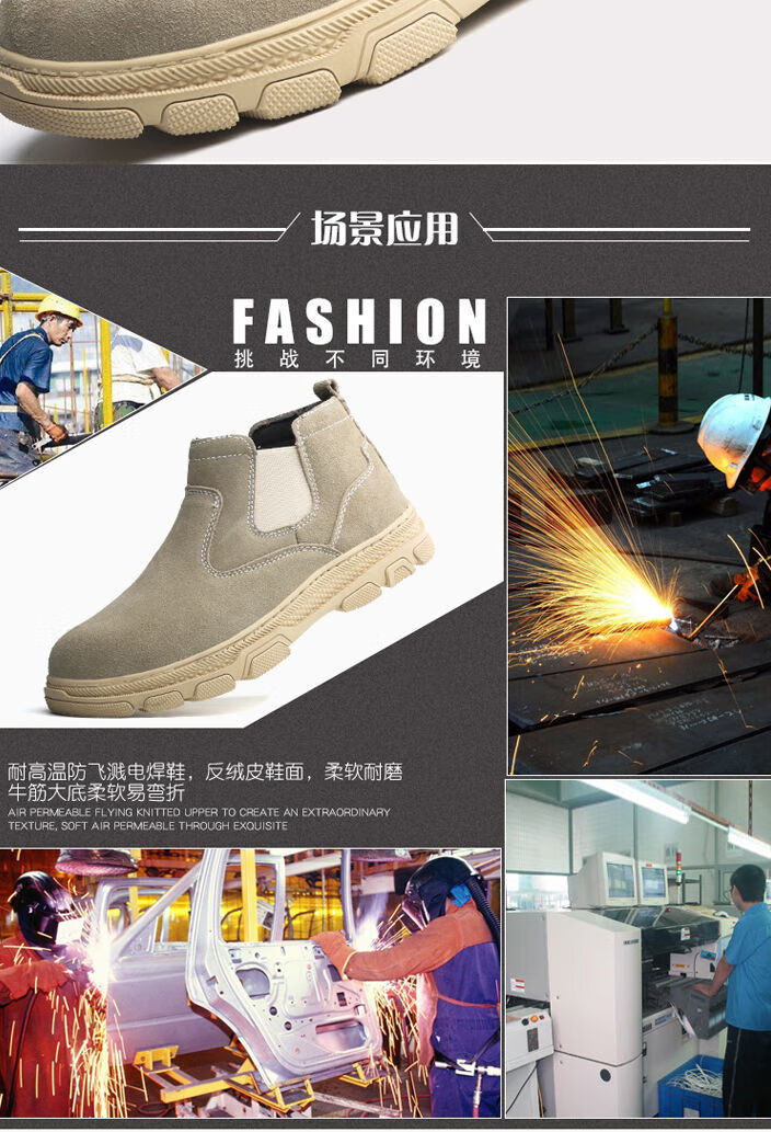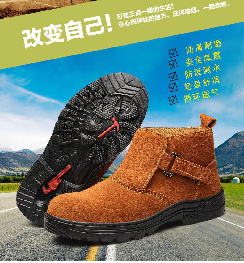 Genuine leather welder labor protection shoes for men, steel toe caps, anti-smash, anti-puncture, wear-resistant, cowhide anti-scalding safety shoes, work shoes, mid-top black brown (beef tendon bottom) 43