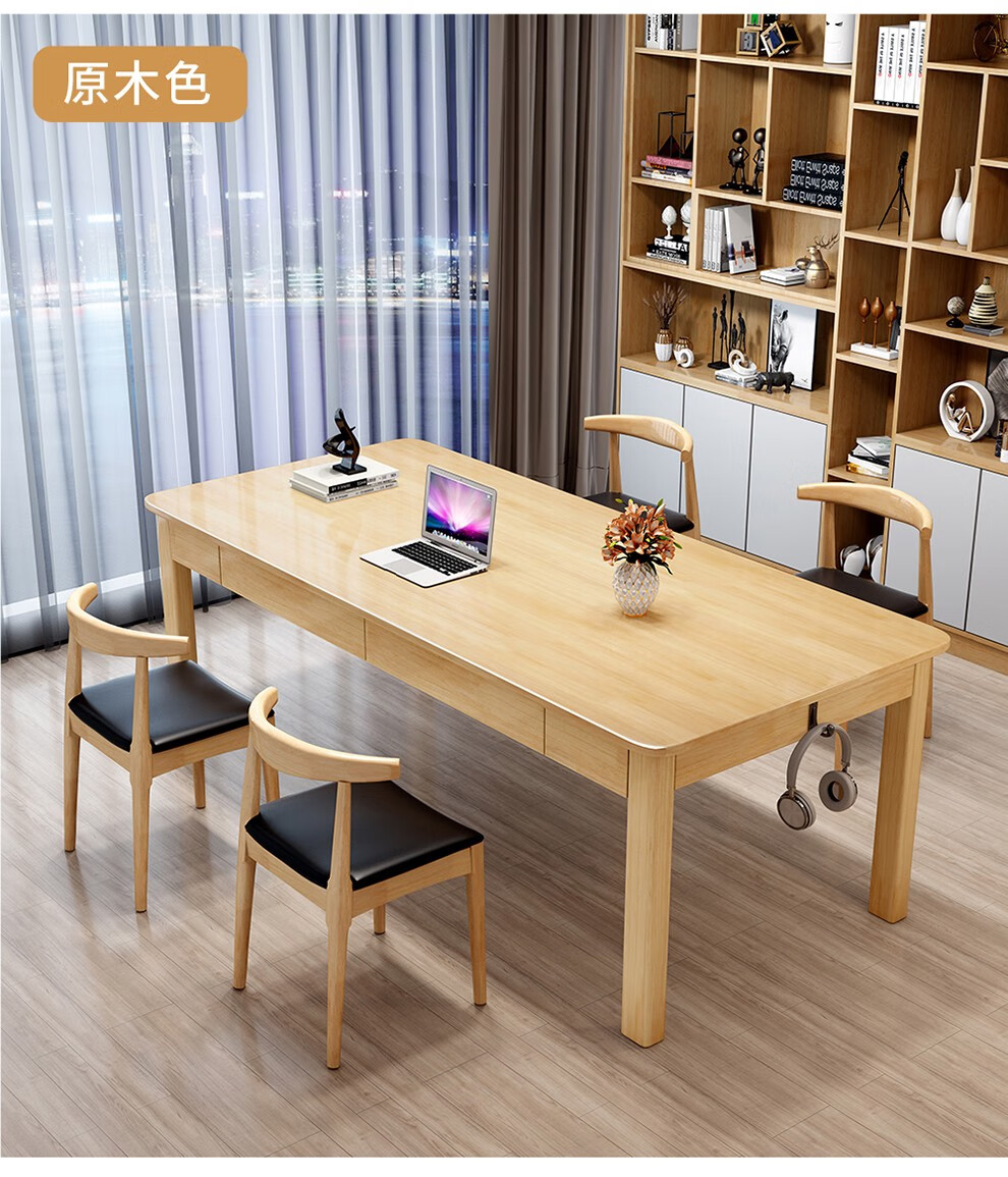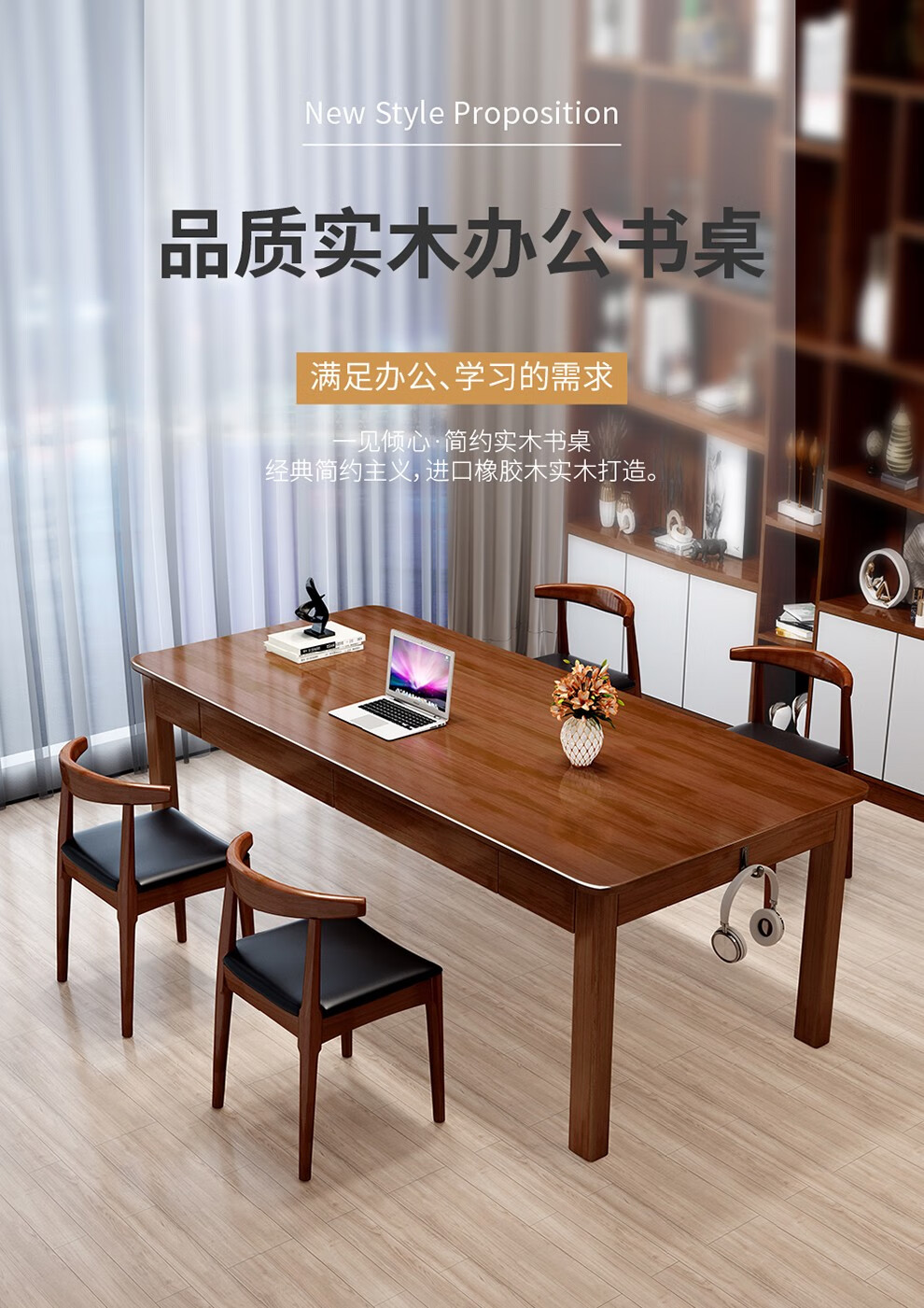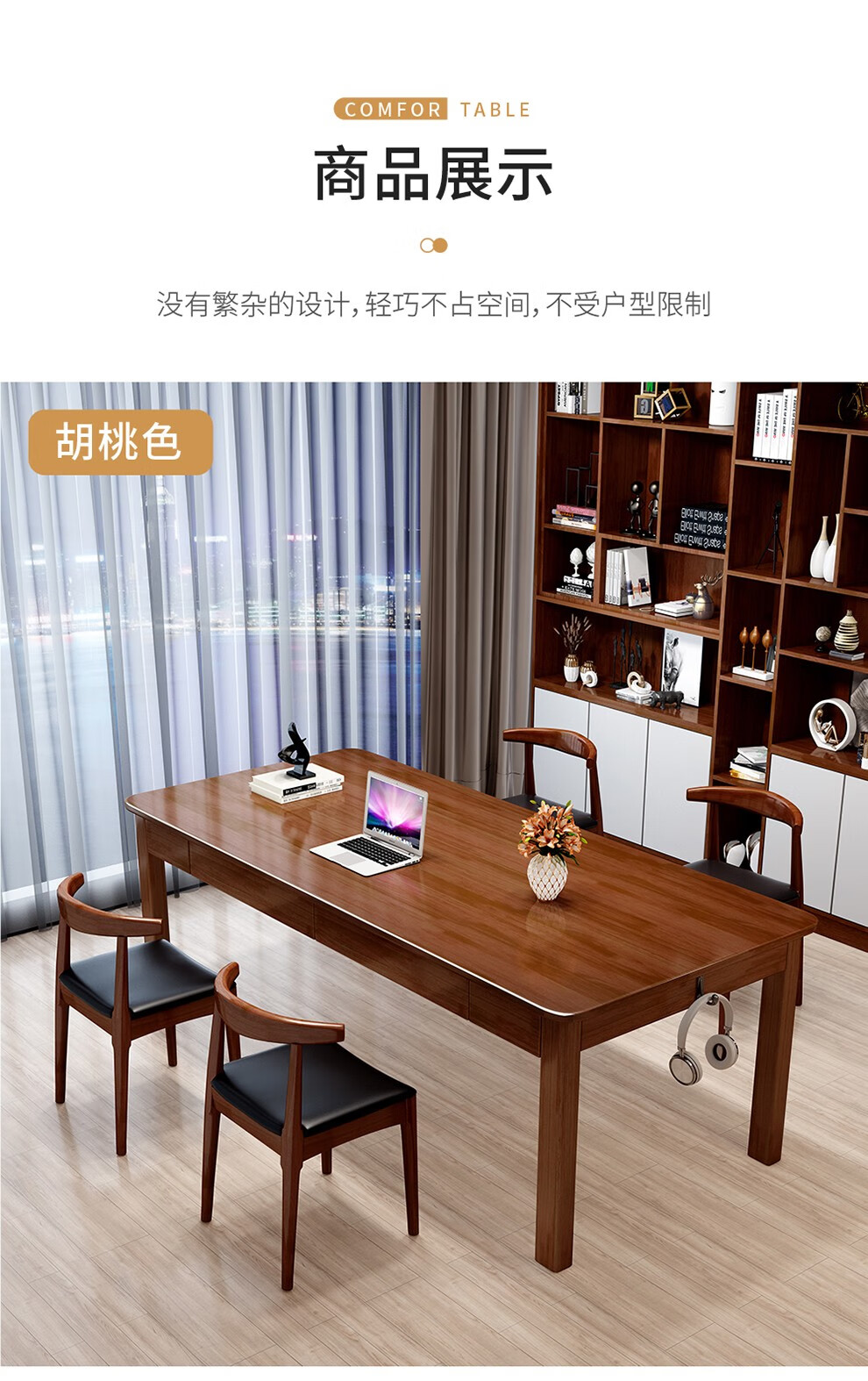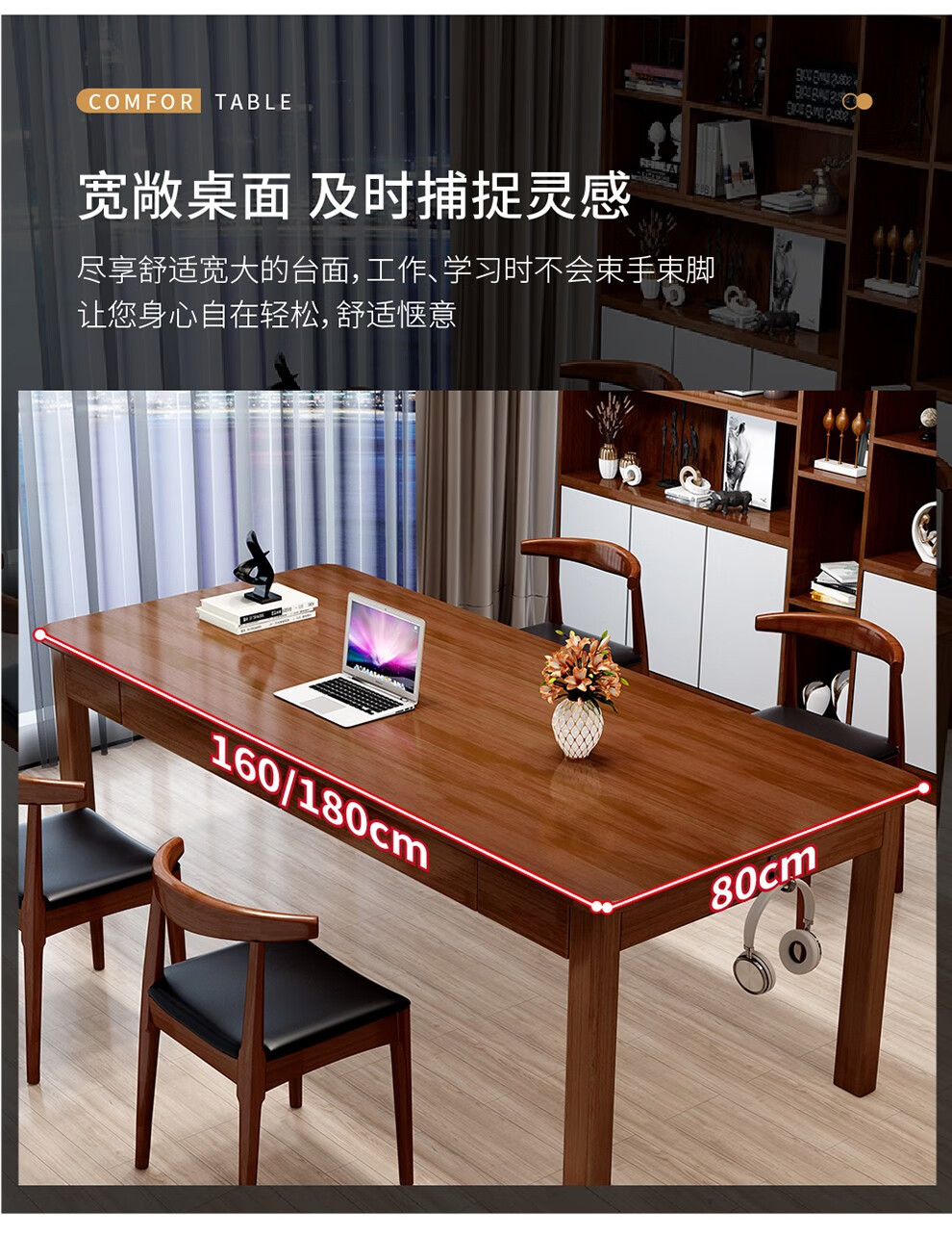 MEZVMV solid wood living room large desk home multi-person writing desk long computer desk simple study four-person desk walnut color four-person desk 180*80*75cm