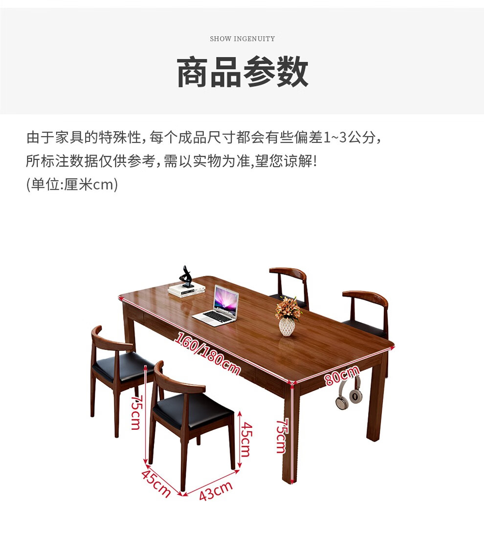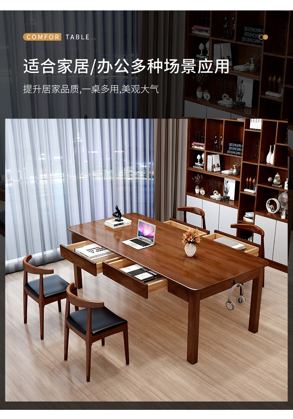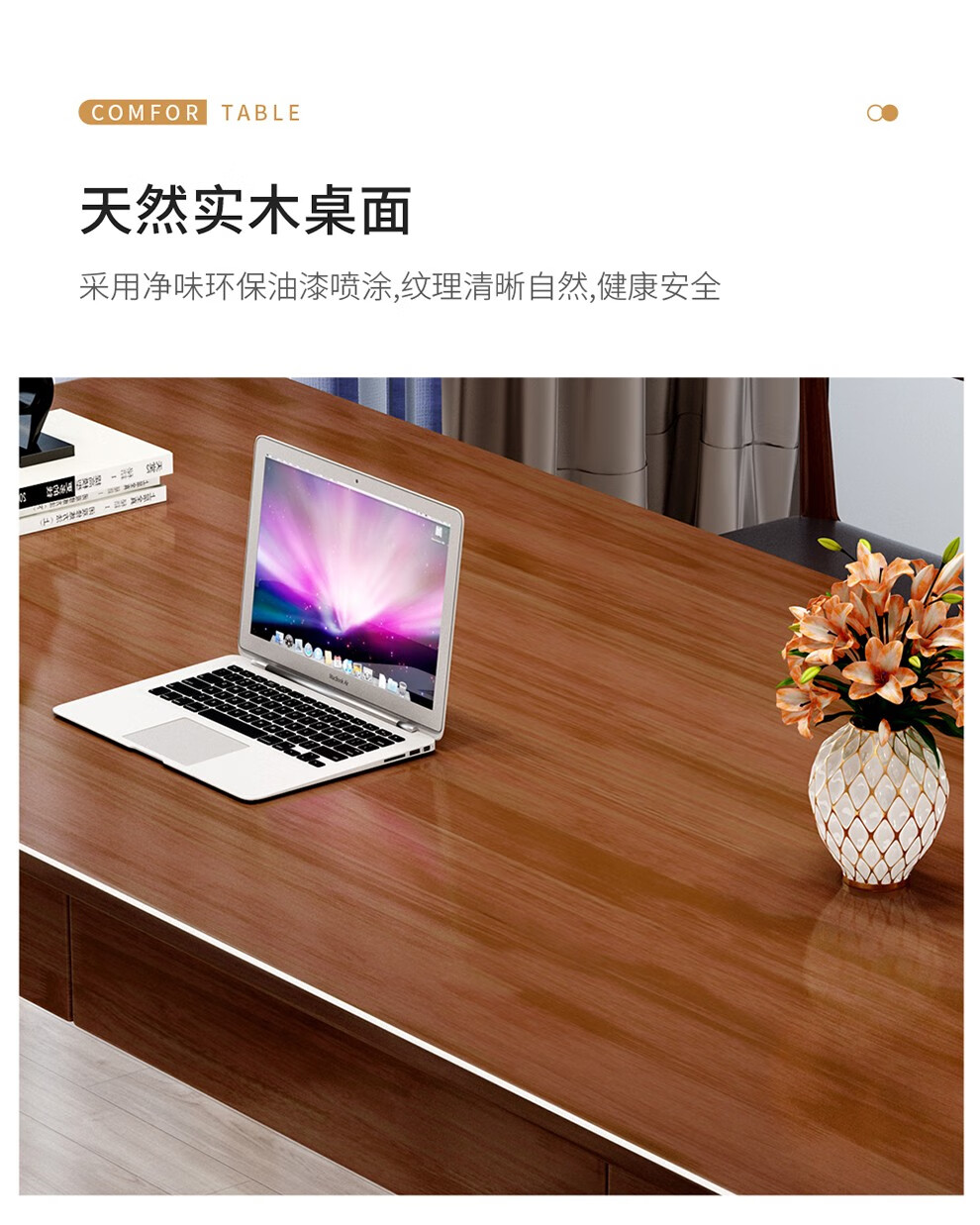 MEZVMV solid wood living room large desk home multi-person writing desk long computer desk simple study four-person desk walnut color four-person desk 180*80*75cm