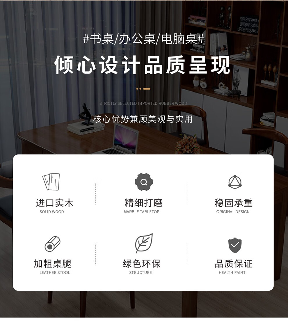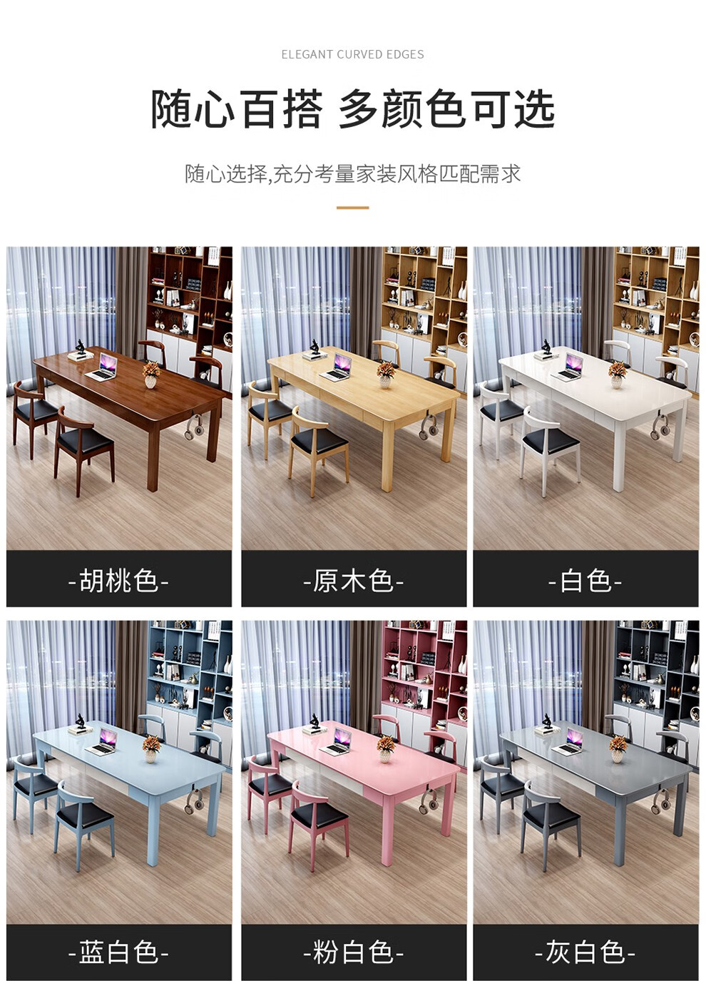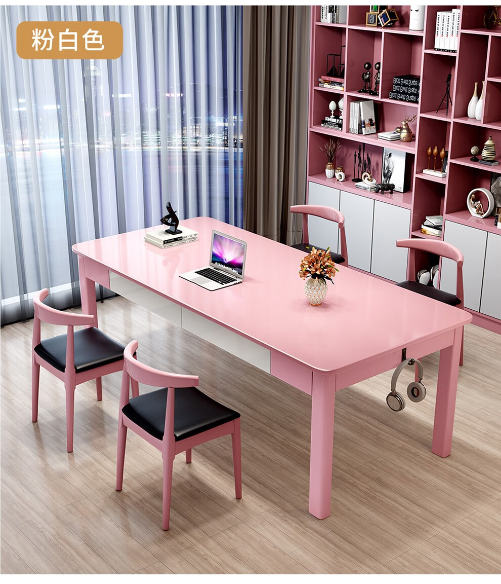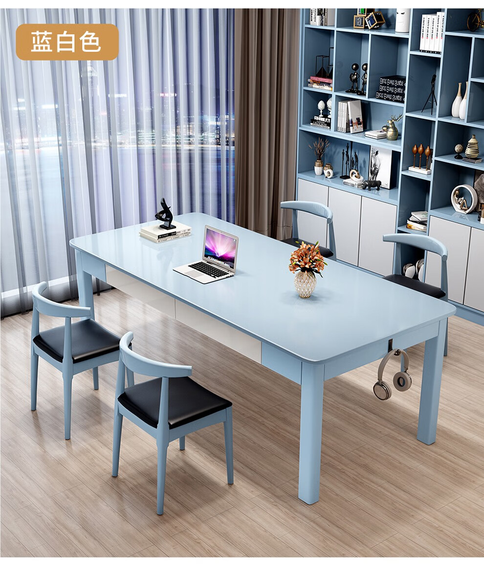 MEZVMV solid wood living room large desk home multi-person writing desk long computer desk simple study four-person desk walnut color four-person desk 180*80*75cm