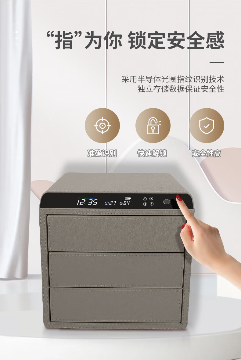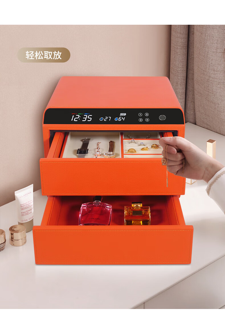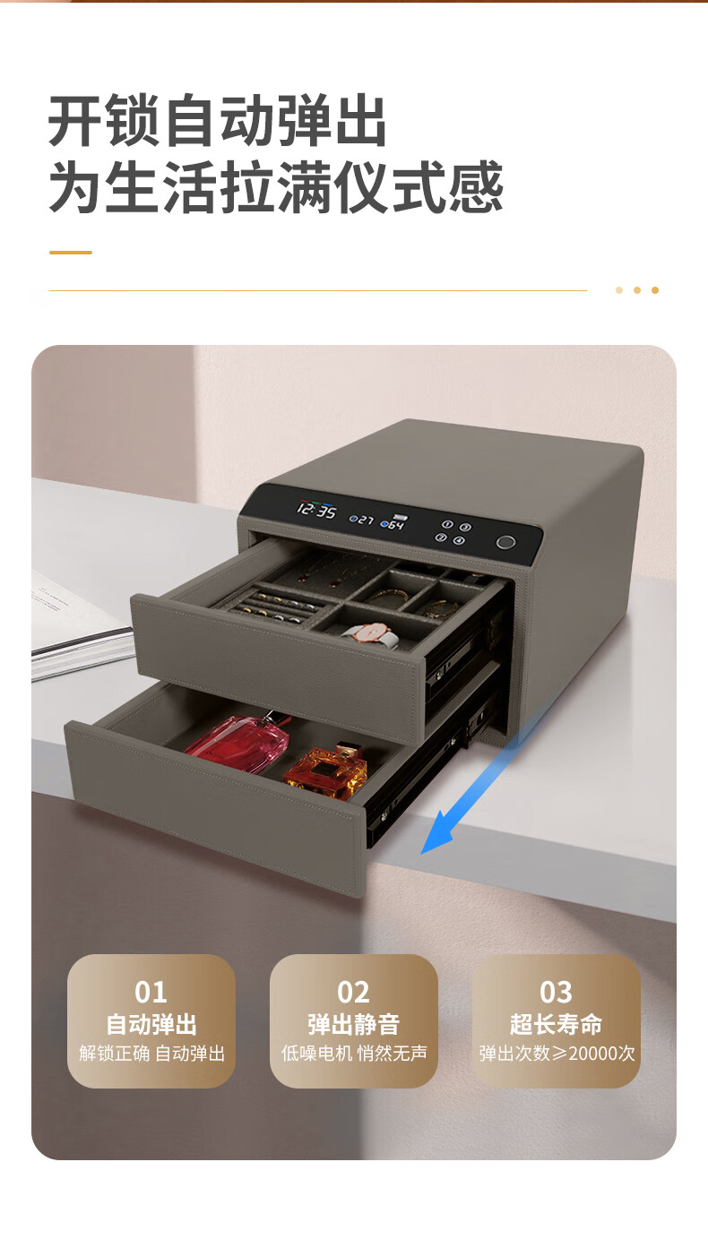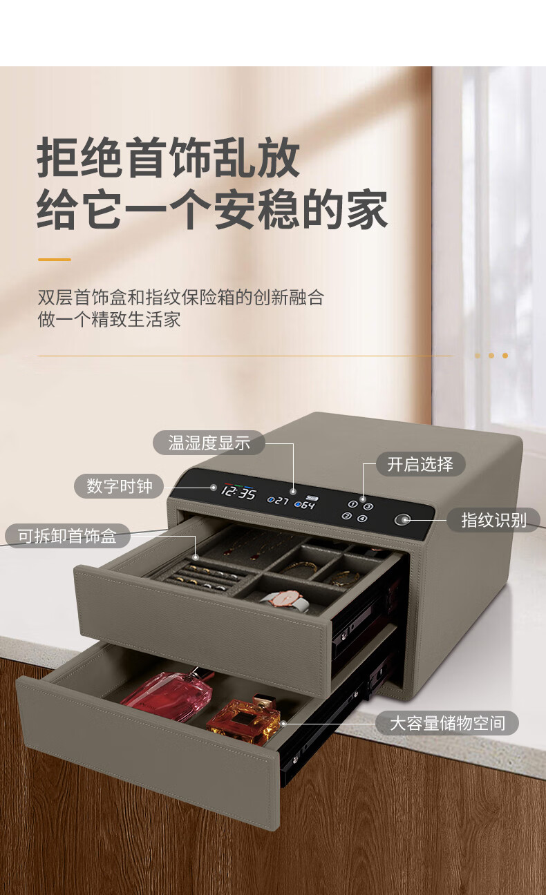 Tiger Safe Household Small Fingerprint Drawer Jewelry Storage Jewelry Safe Safe Storage Box LCD Model Double-layer Height + Pearl White (25 Days Shipping) Smart WIFI Fingerprint Model