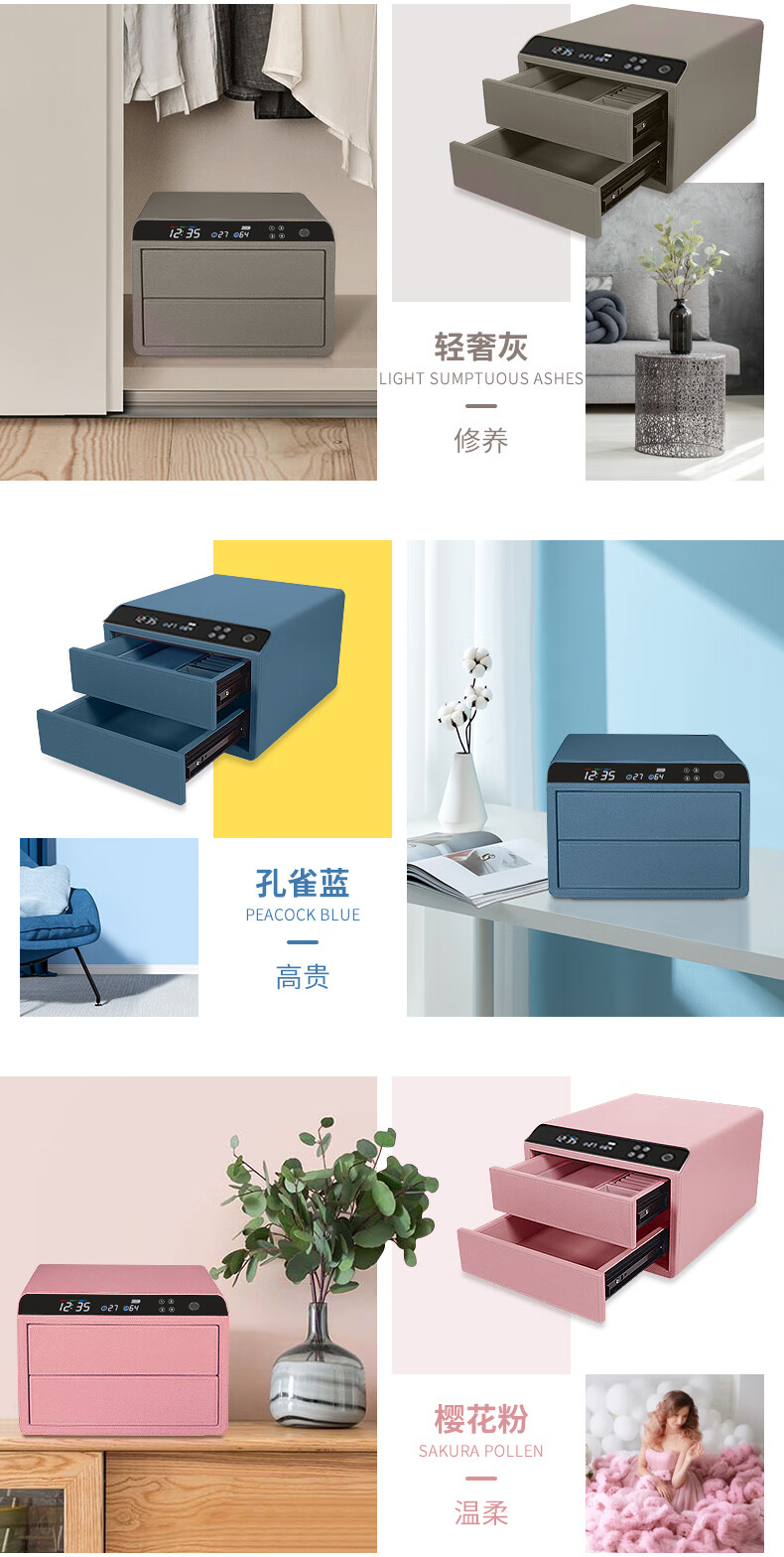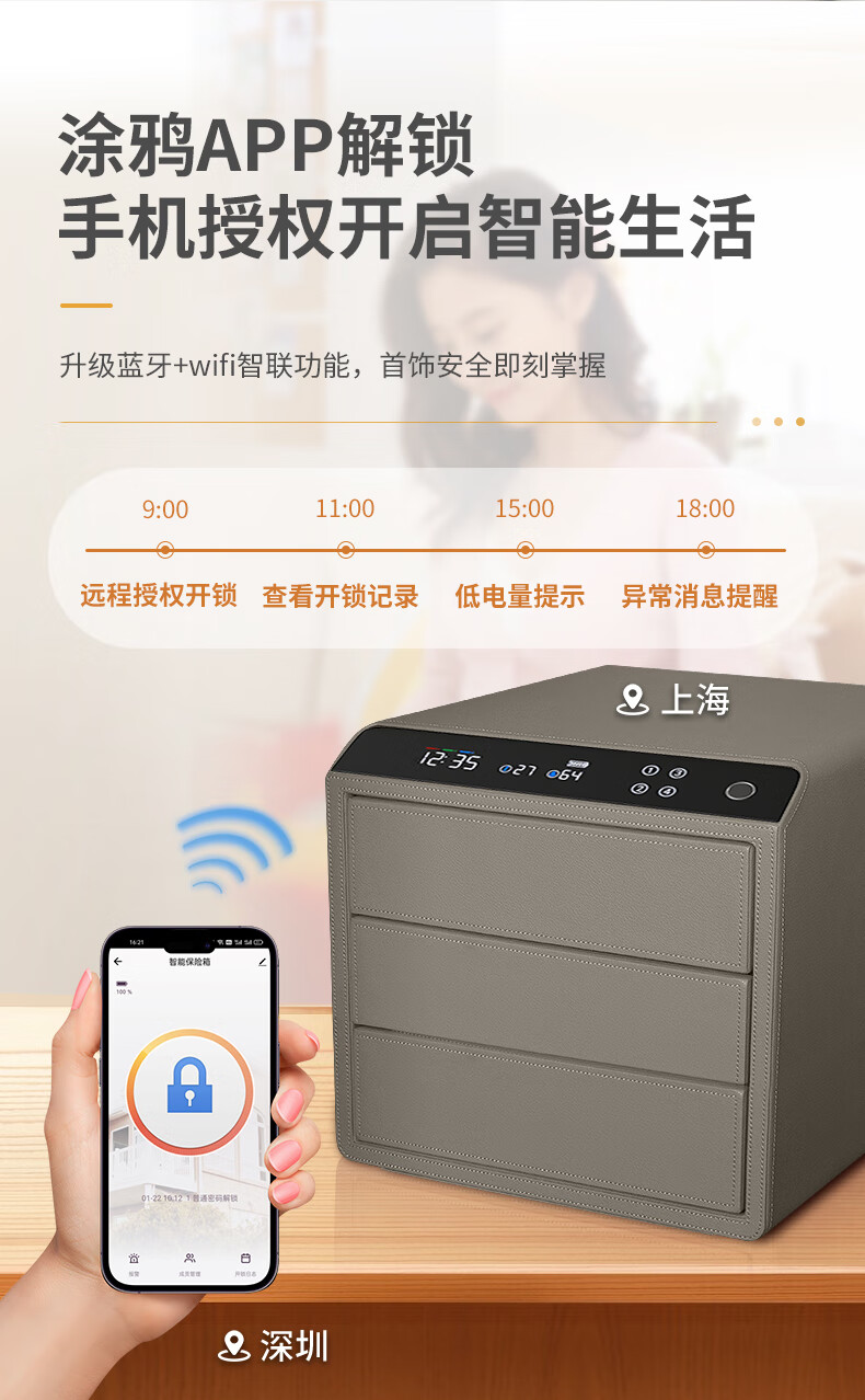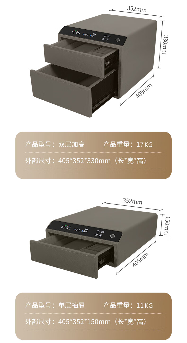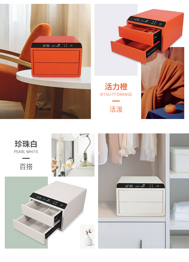 Tiger Safe Household Small Fingerprint Drawer Jewelry Storage Jewelry Safe Safe Storage Box LCD Model Double-layer Height + Pearl White (25 Days Shipping) Smart WIFI Fingerprint Model