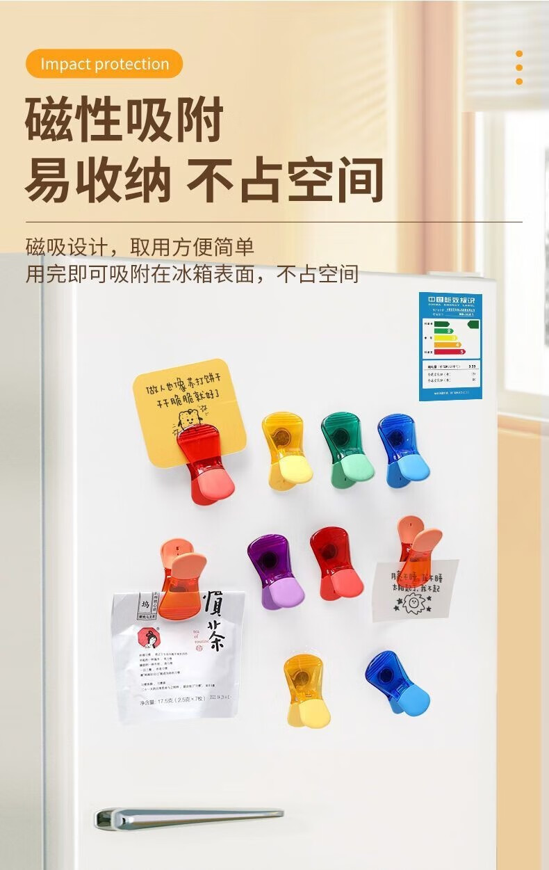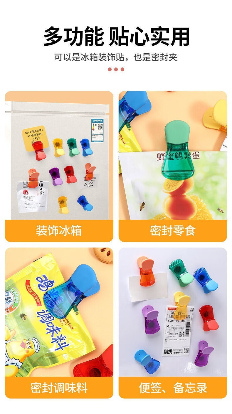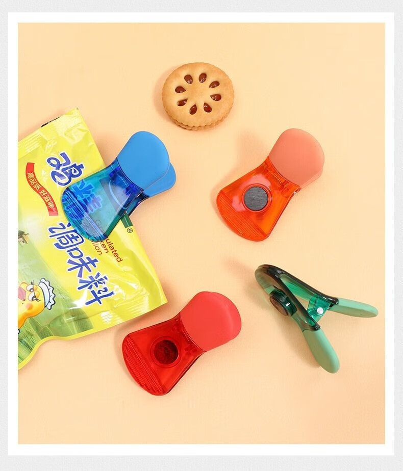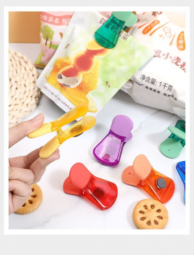 Sukuu sealing clip colorful transparent clip magnetic refrigerator sticker food snack seasoning milk powder sealing clip multi-functional plastic fresh-keeping clip home kitchen moisture-proof sealing stick mixed color 8 pack