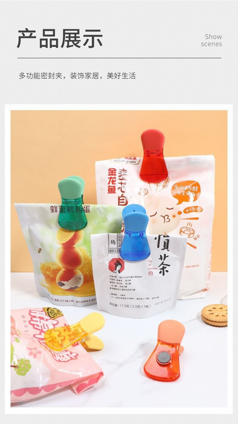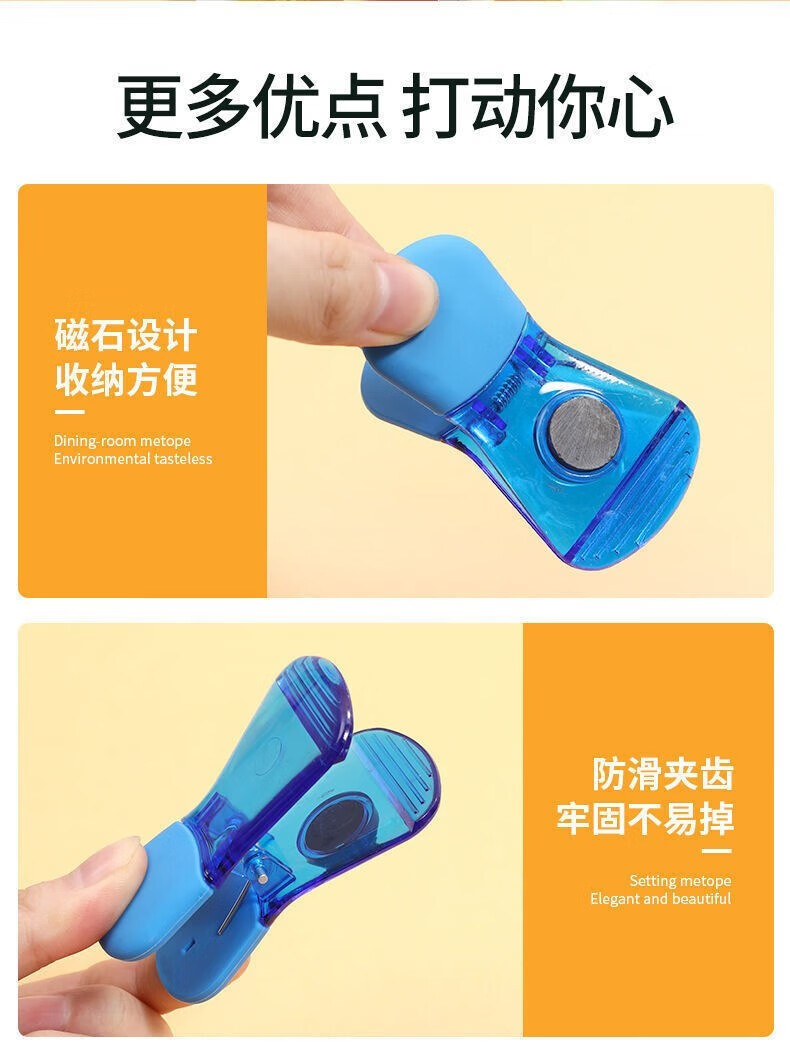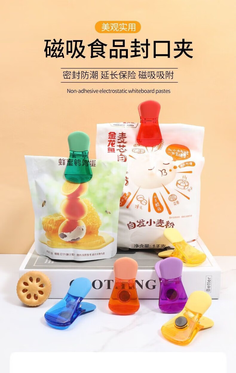Sukuu sealing clip colorful transparent clip magnetic refrigerator sticker food snack seasoning milk powder sealing clip multi-functional plastic fresh-keeping clip home kitchen moisture-proof sealing stick mixed color 8 pack