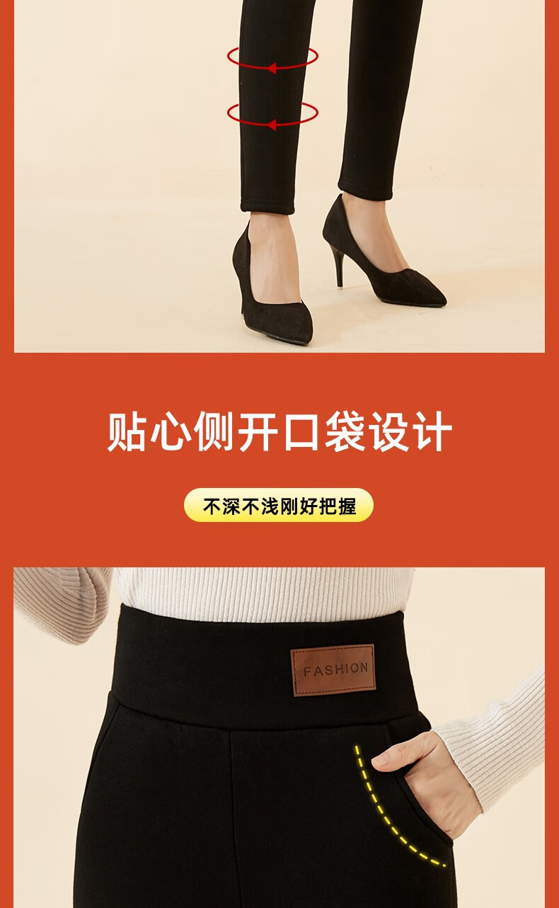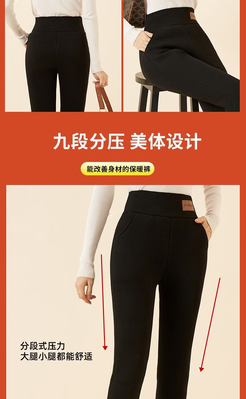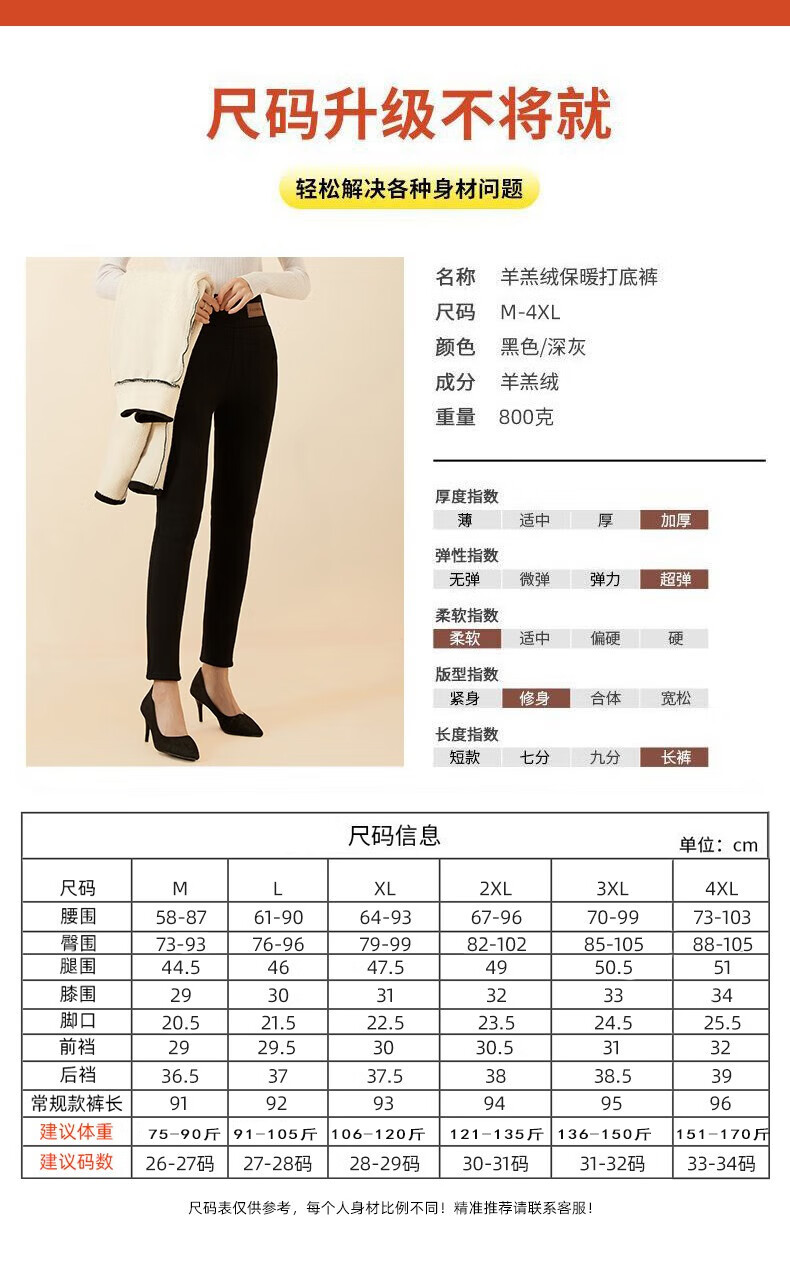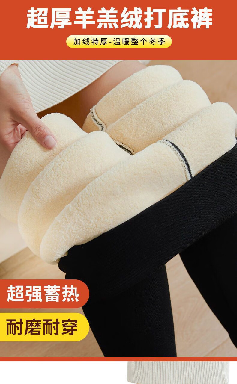 LangSha (LangSha) Lamb Velvet Thickened Warm Pants Women's Autumn and Winter Slim Cotton Pants Women's Leggings High Waist Extra Thick Pants for Outerwear Lamb Velvet Black Pocket Style 800g L 91-105Jin Jin is equal to 0.5 kg