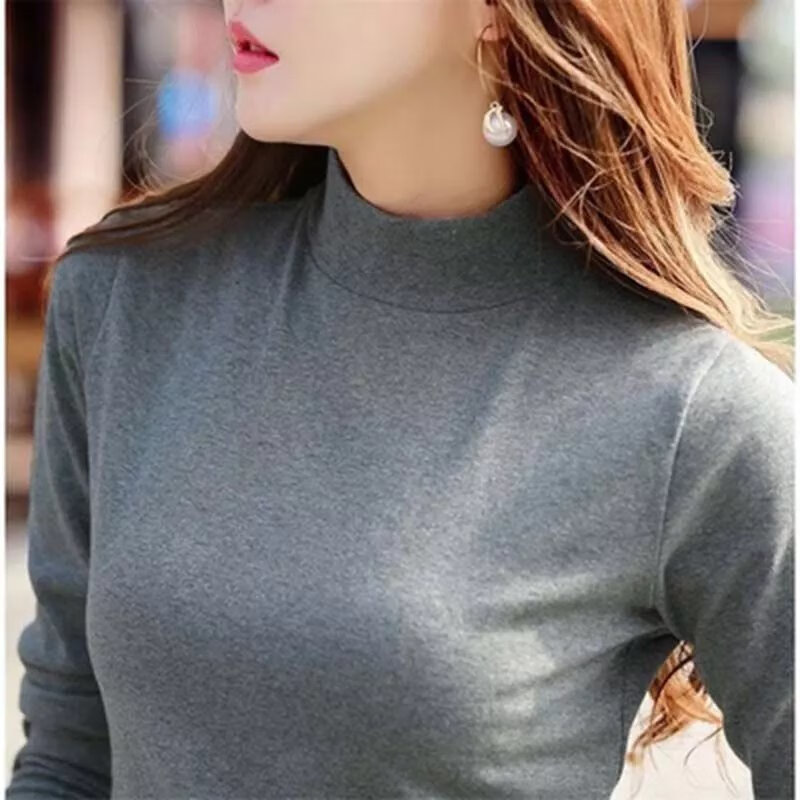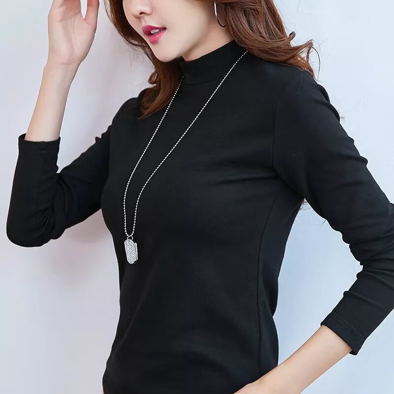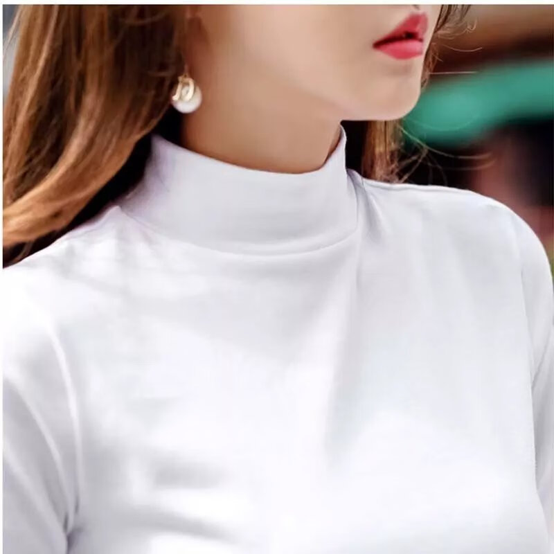 Luo Meng light luxury brand 22 years new half turtleneck pure cotton brushed bottoming shirt for women 2022 autumn and winter solid color mid-collar top white XL 120-135