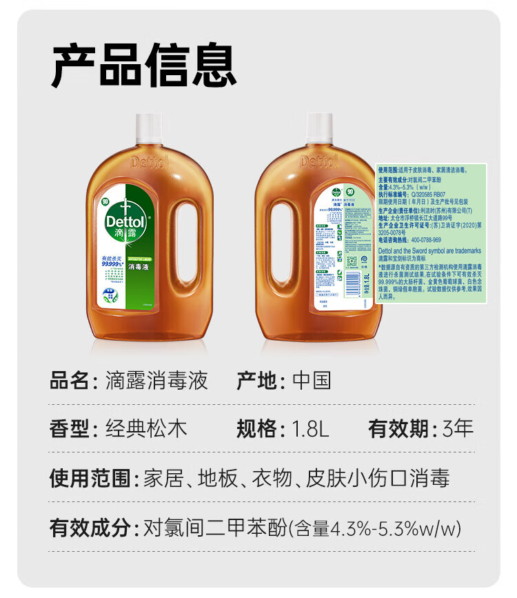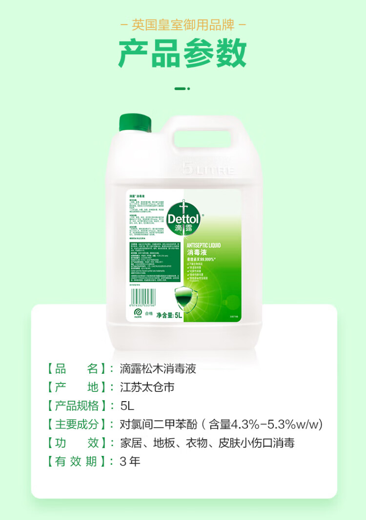 Dettol disinfectant disinfectant water clothing sterilization liquid laundry floor sterilization and mite removal disinfection spray tablets non-84 hypochlorous acid professional disinfection pine 1.8L