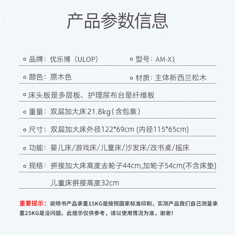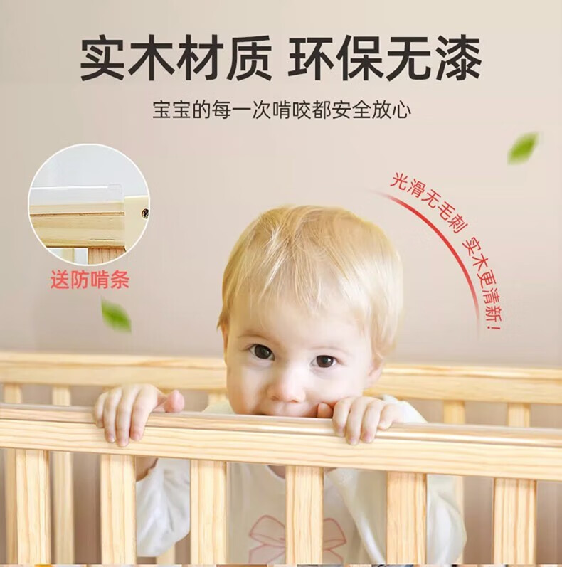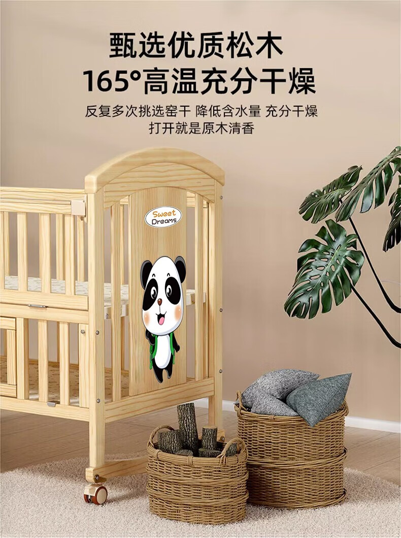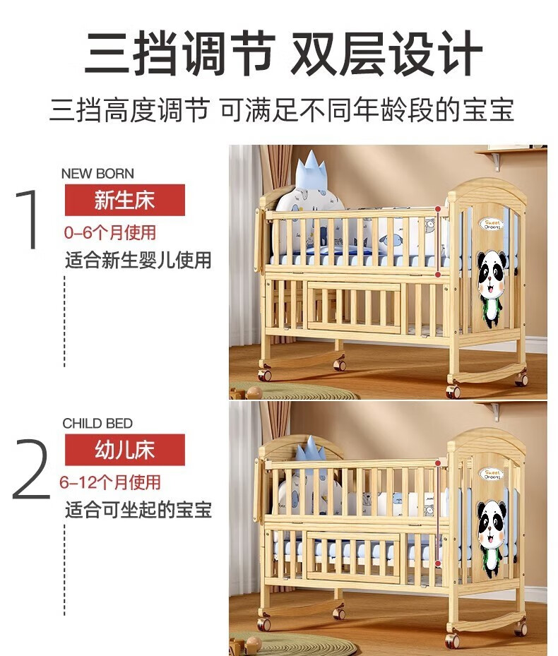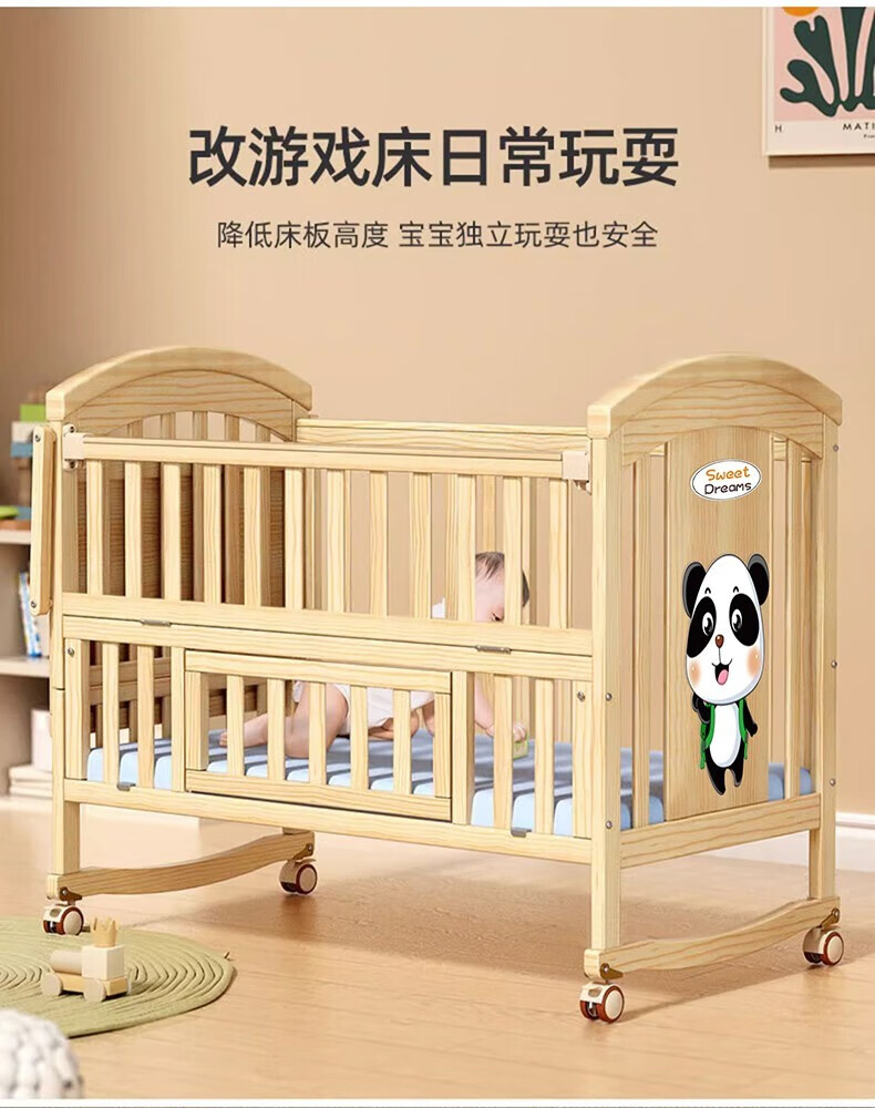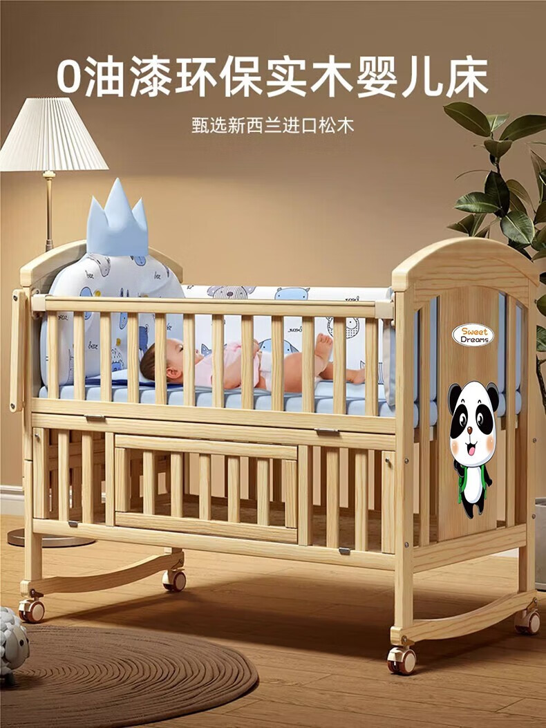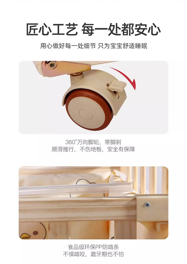 ULOP German crib solid wood removable splicing large bed multi-functional newborn bb baby comfort bed children's wooden bed animal 5-piece set-double-layer mosquito net + changing table