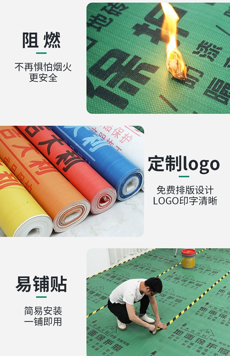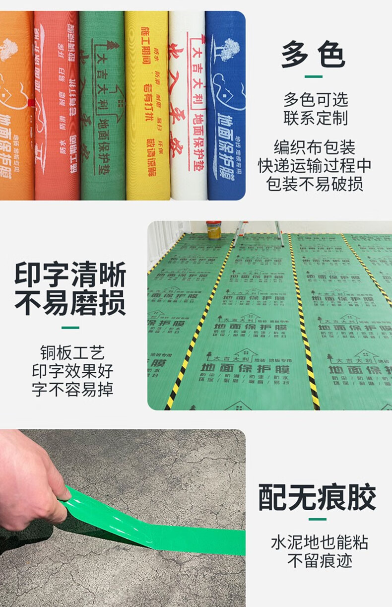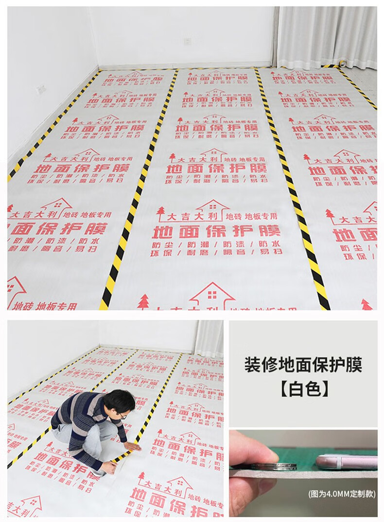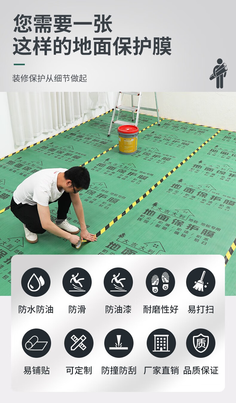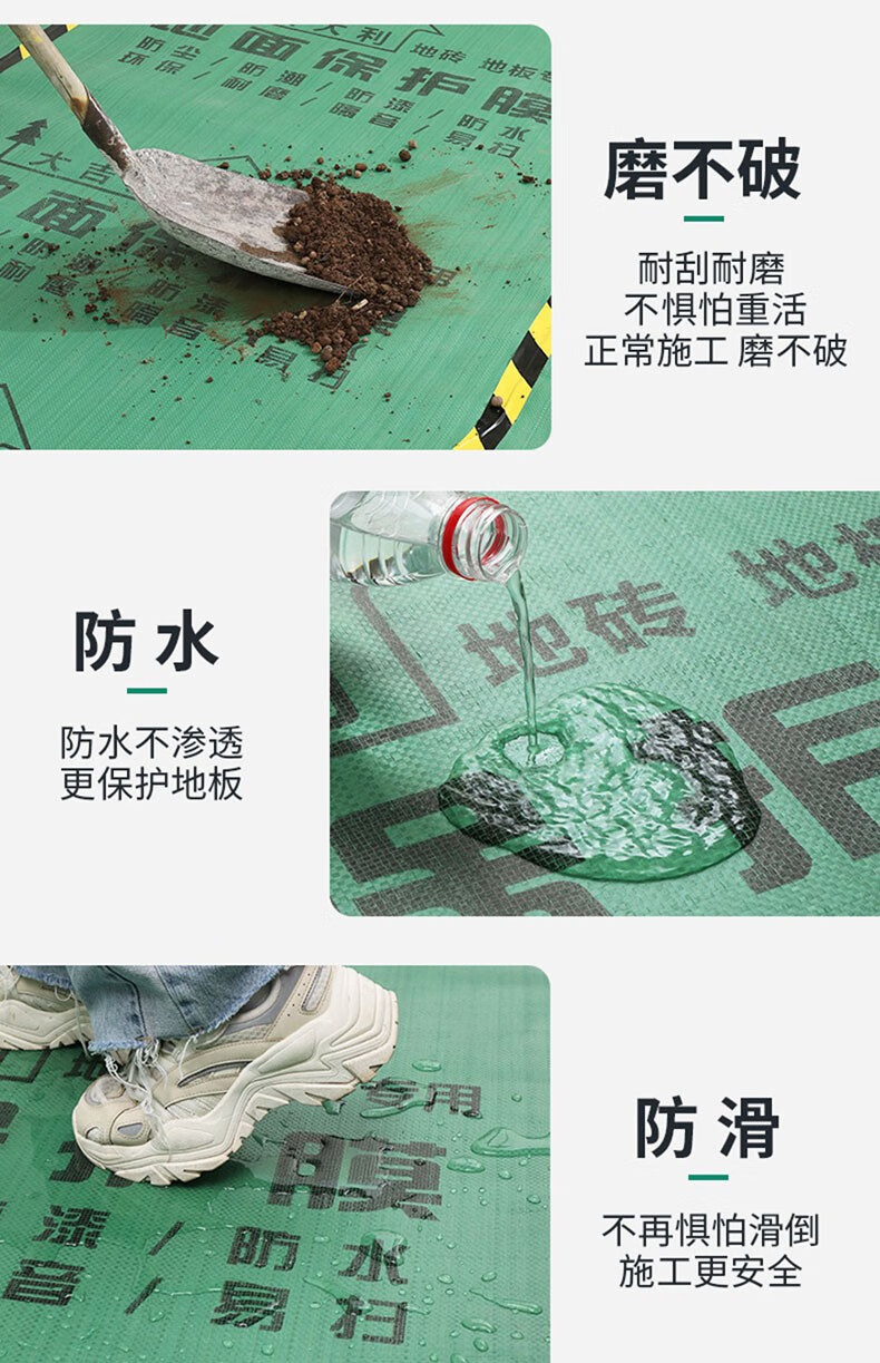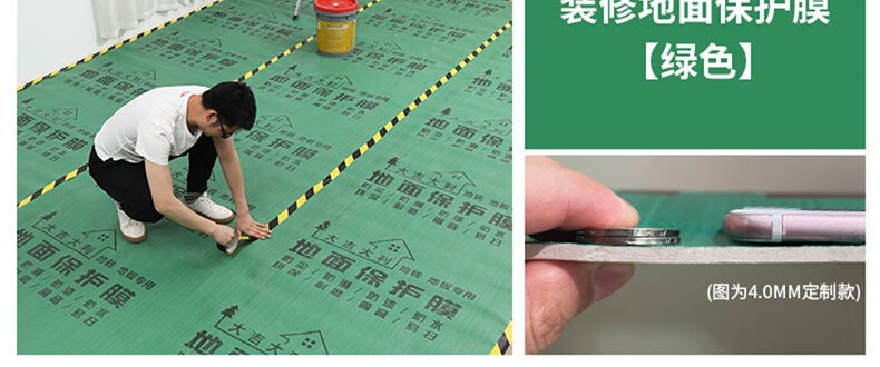 Wuyang Chongfu floor protective film decoration 2mm tile protective film thickened and wear-resistant 4mm wooden floor tile protective film customized 1.2 meters wide double-layer woven cloth green 100 square meters EVA cotton thick 2.0mm 10 rolls of tape + knife