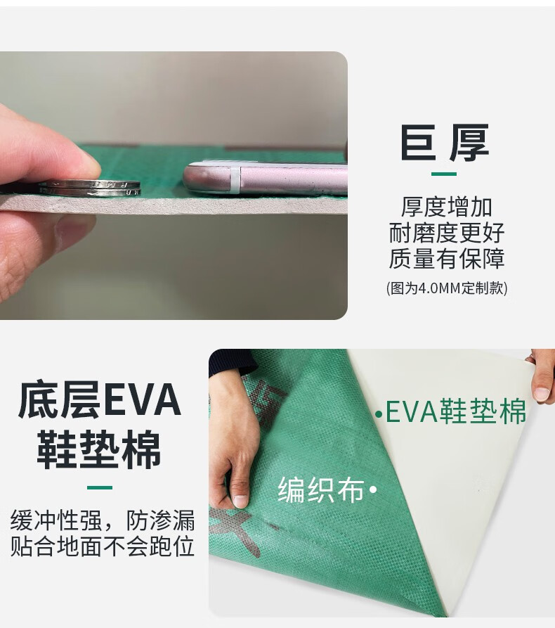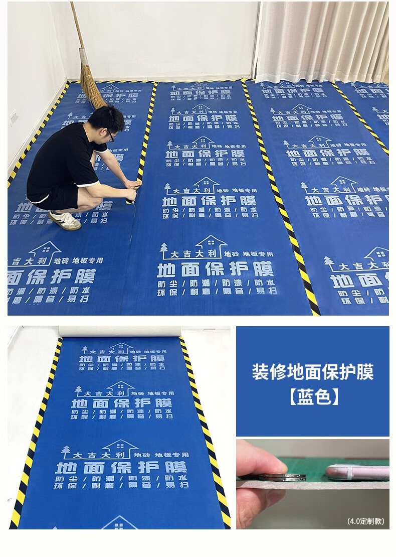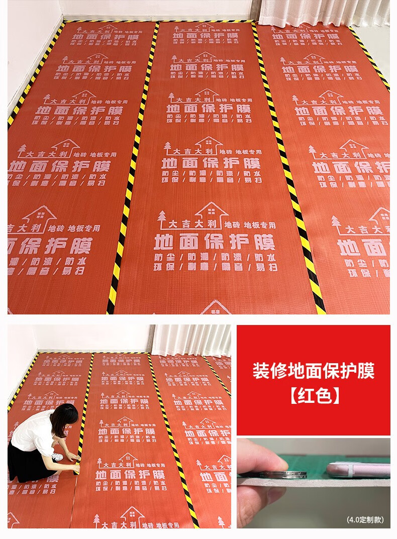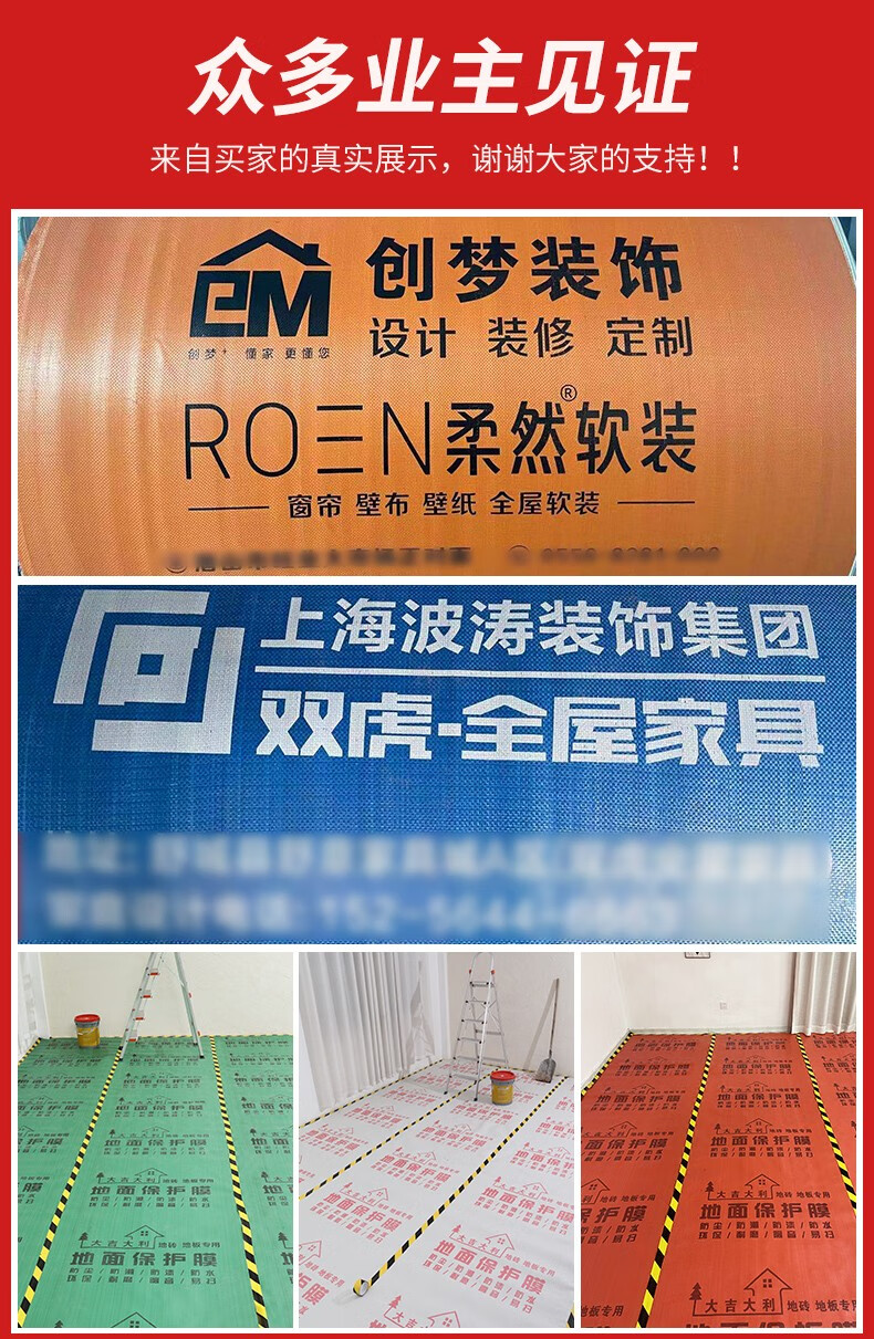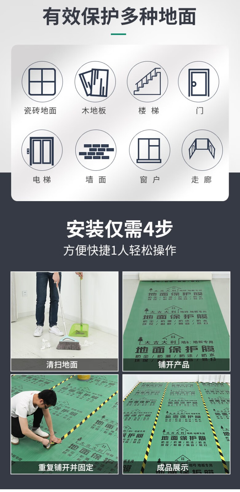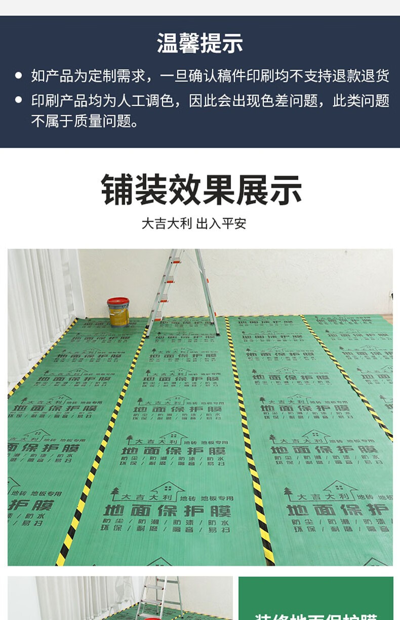 Wuyang Chongfu floor protective film decoration 2mm tile protective film thickened and wear-resistant 4mm wooden floor tile protective film customized 1.2 meters wide double-layer woven cloth green 100 square meters EVA cotton thick 2.0mm 10 rolls of tape + knife