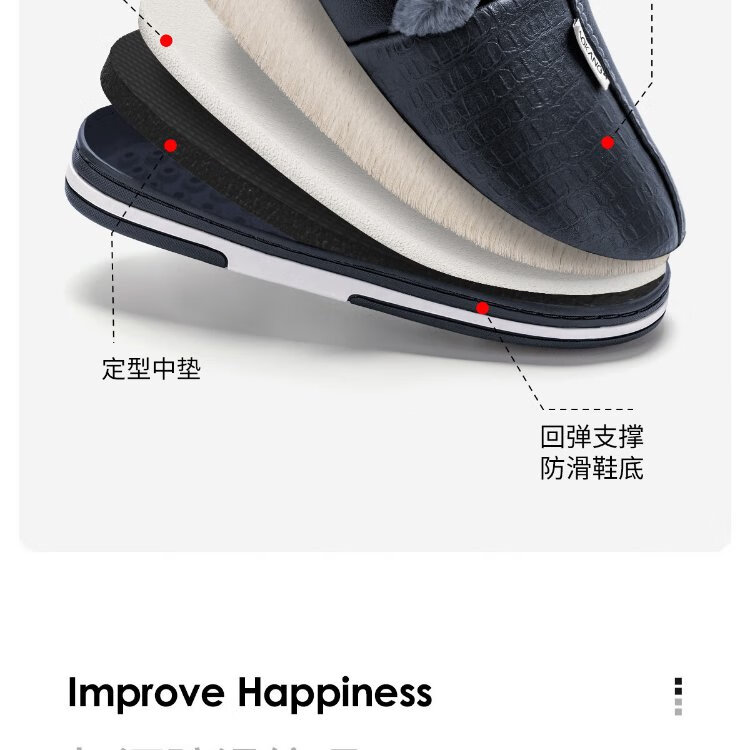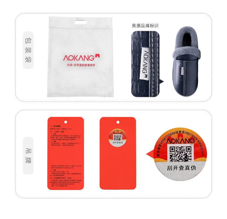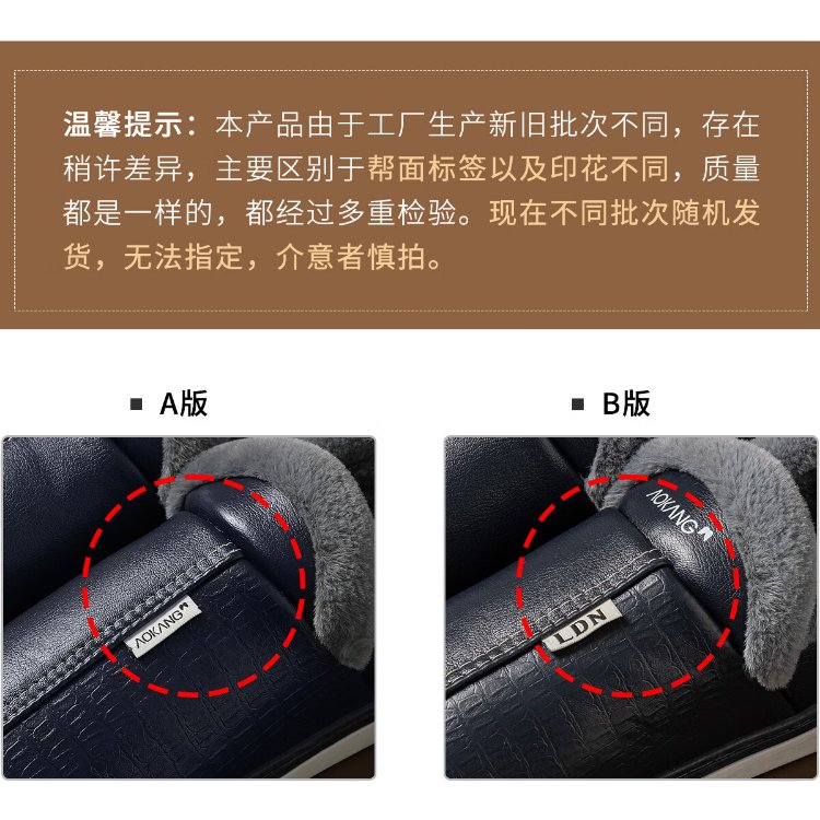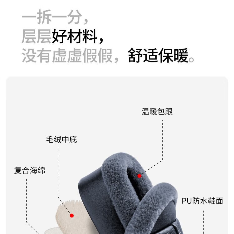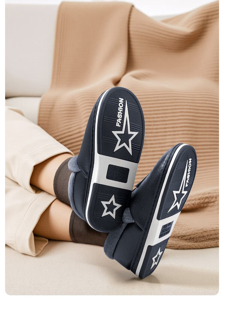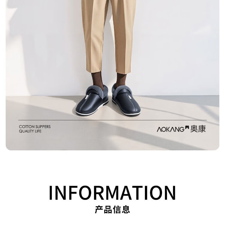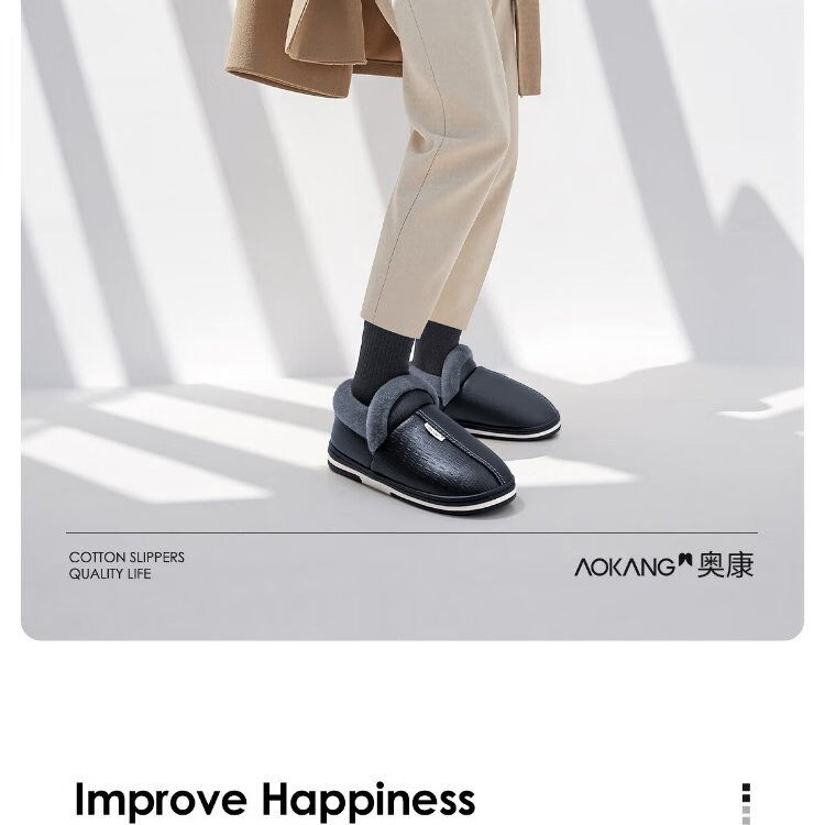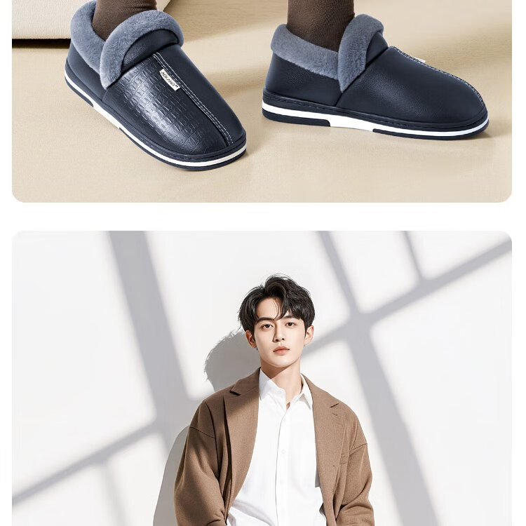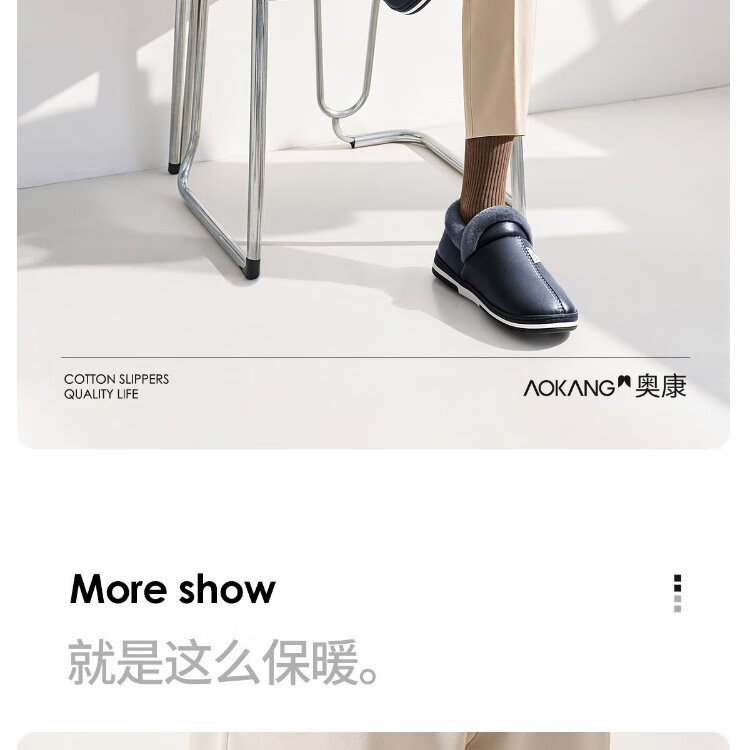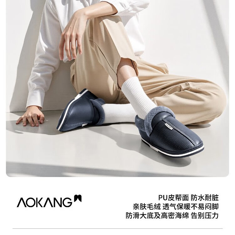 Aokang (Aokang) winter bag heel cotton slippers men's new Baotou large size waterproof anti-slip warm PU leather cotton shoes for women autumn and winter old people navy blue plus velvet splash-proof 42-43 suitable for sizes 41-42