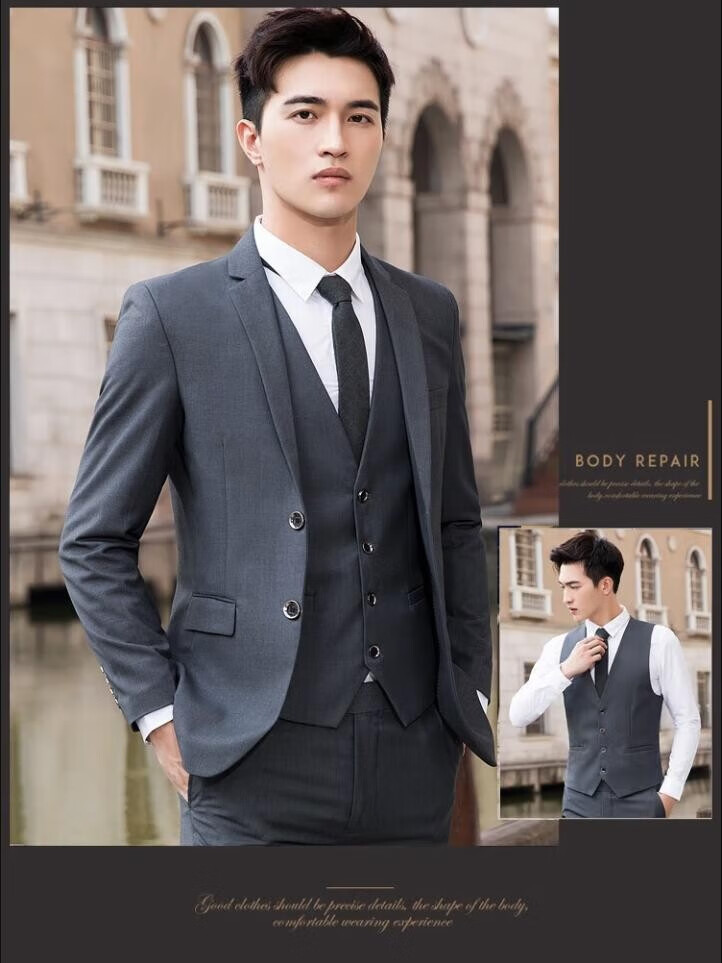 Kaduton Suit Suit Men's Business Slim Suit Men's Work Professional Formal Wear Men's Groomsmen Clothing Groom's Wedding Dress Gray Suit+Pants+Shirt+Leather Shoes L 105-115Jin Jin equals 0.5 kg + 6 gifts