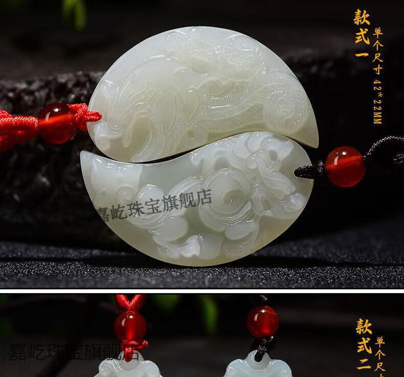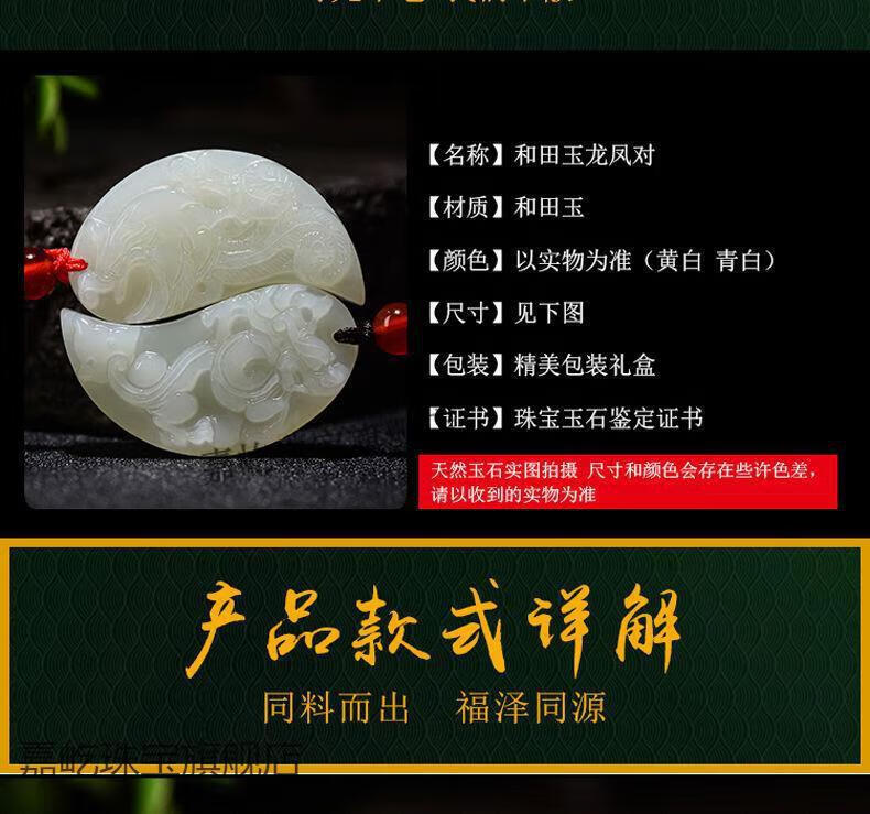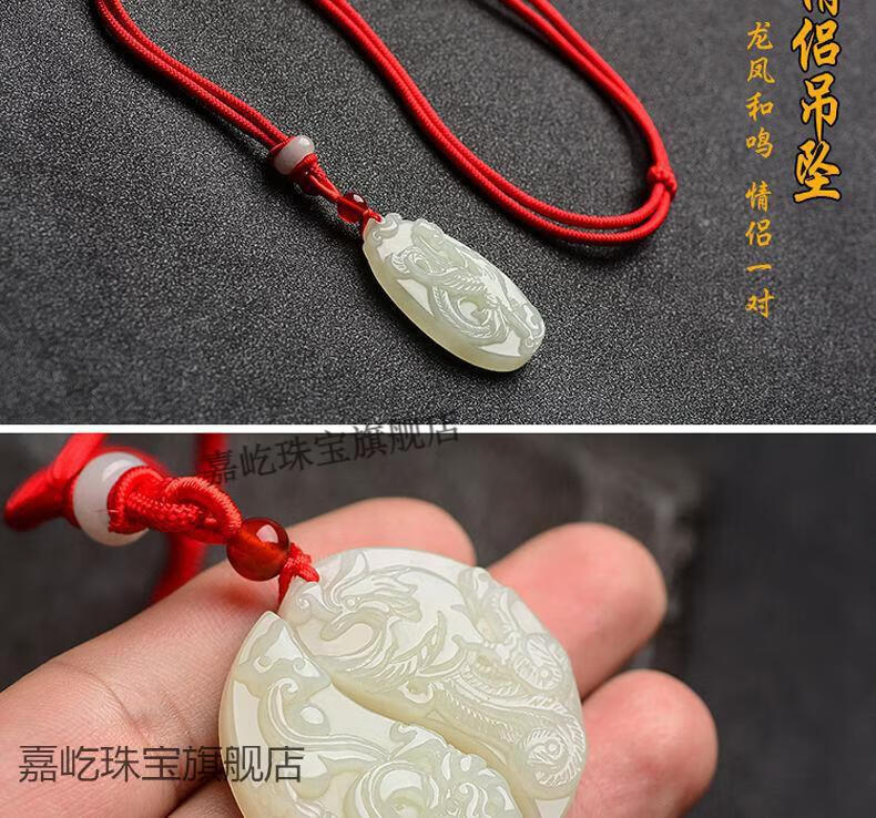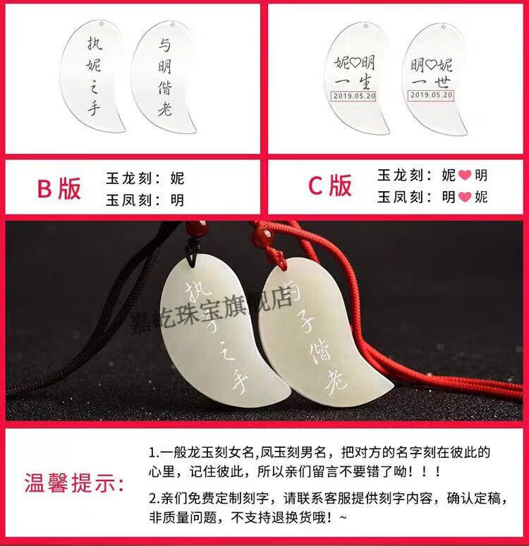 Maibaofang couple's jade pendants, a pair of dragon and phoenix jade pendants, men's and women's Hetian white jade pendants, love tokens with engraving, dragon pendant + phoenix pendant