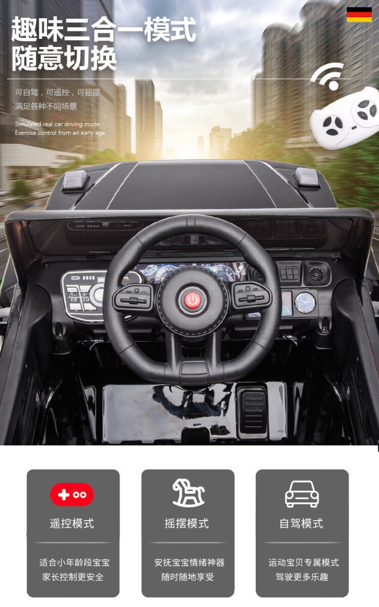 Children's electric car four-wheel remote control off-road baby toy car can sit adults and double children stroller 1-3 years old and 5 days can be explosion-proof battery safe and reliable electric drive