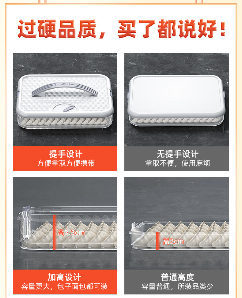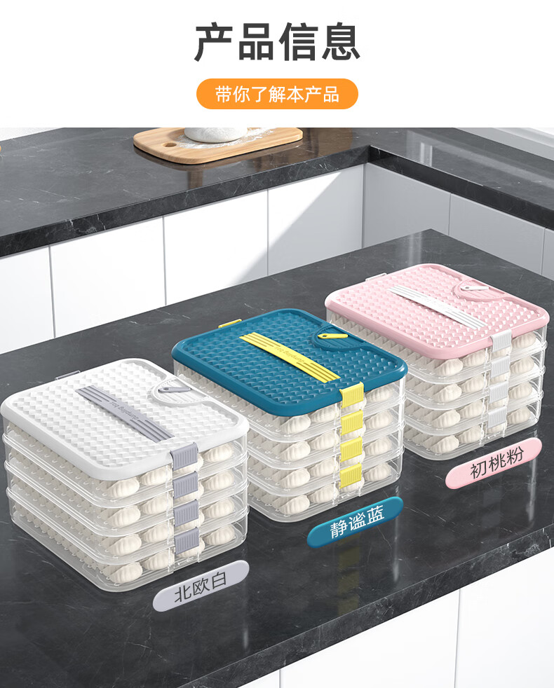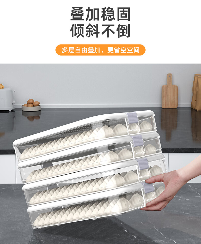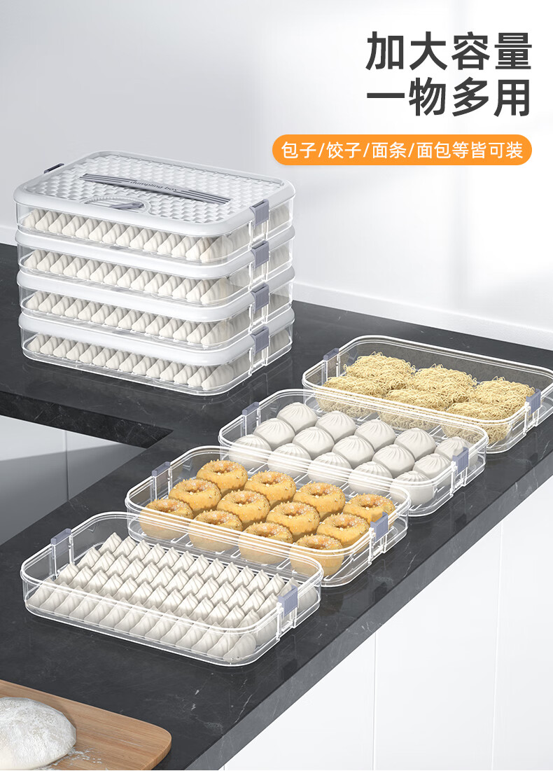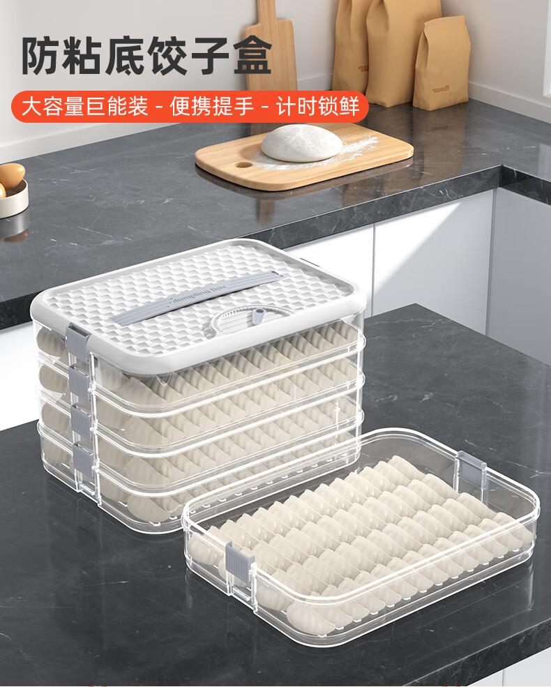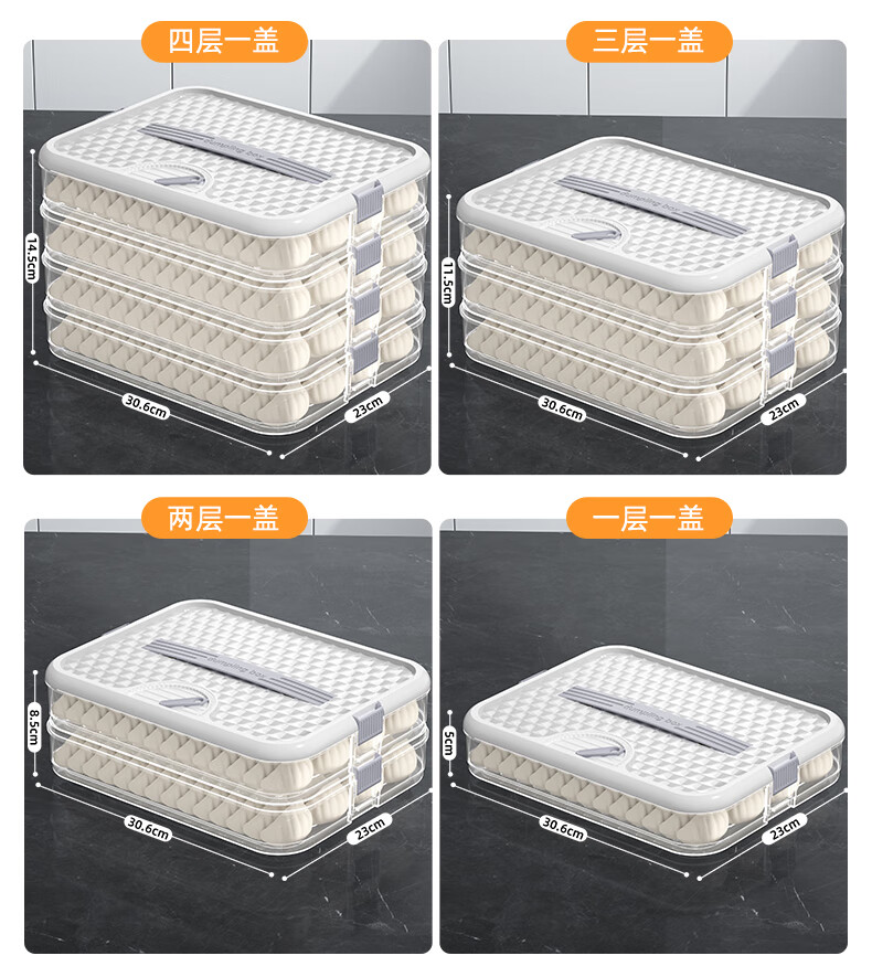 Bobenjia Dumpling Box Home Food Grade Kitchen Refrigerator Organizer Special Storage Box for Wonton Preservation and Quick Frozen - Four Layers and One Cover 240 Dumplings/Anti-stick Bottom Nordic White