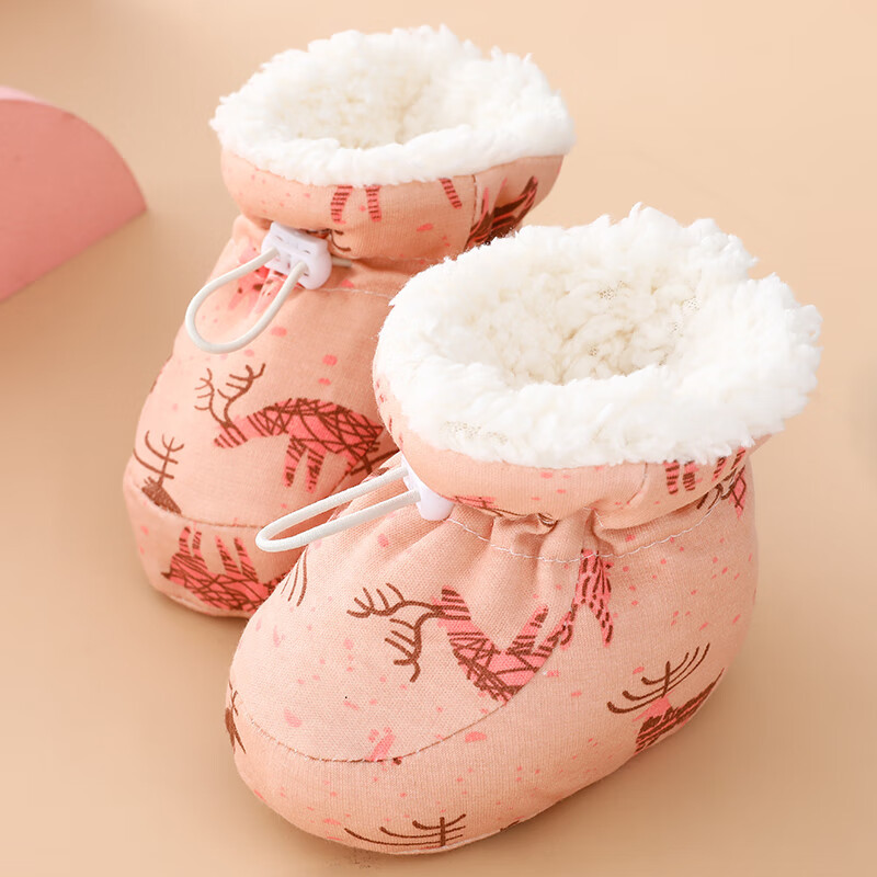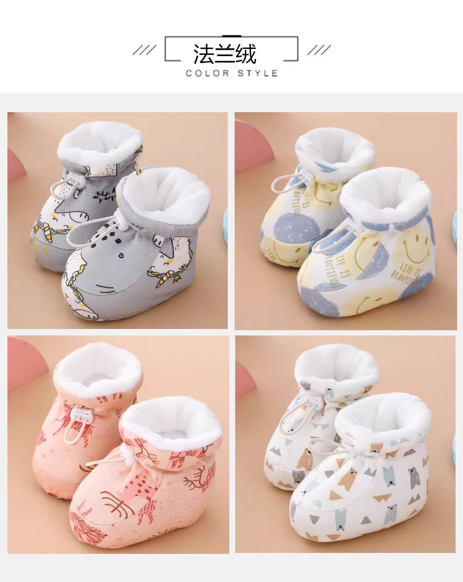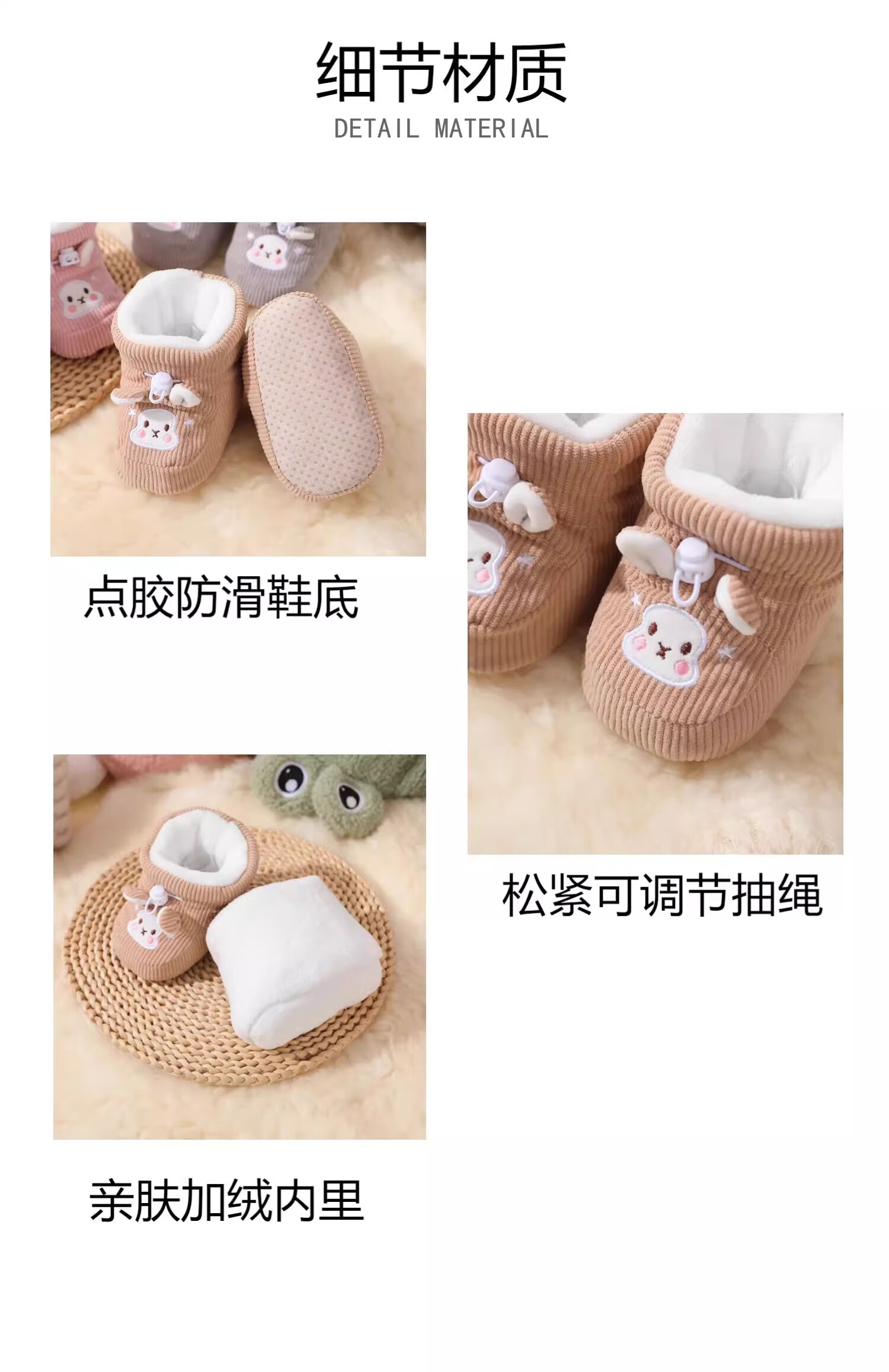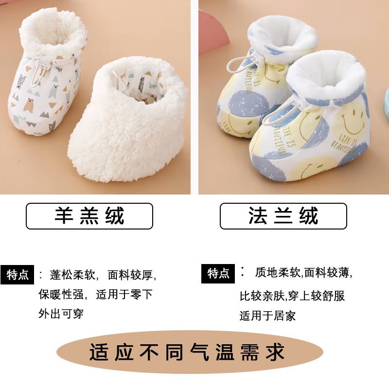 Qu'er Bear Autumn and Winter 1-year-old baby boy and girl 6-11 months pre-toddler shoes with soft soles and velvet to keep warm and non-falling cotton shoes Smiley face (thin velvet) 13 Inner length 13cm Recommended for 10-15 months