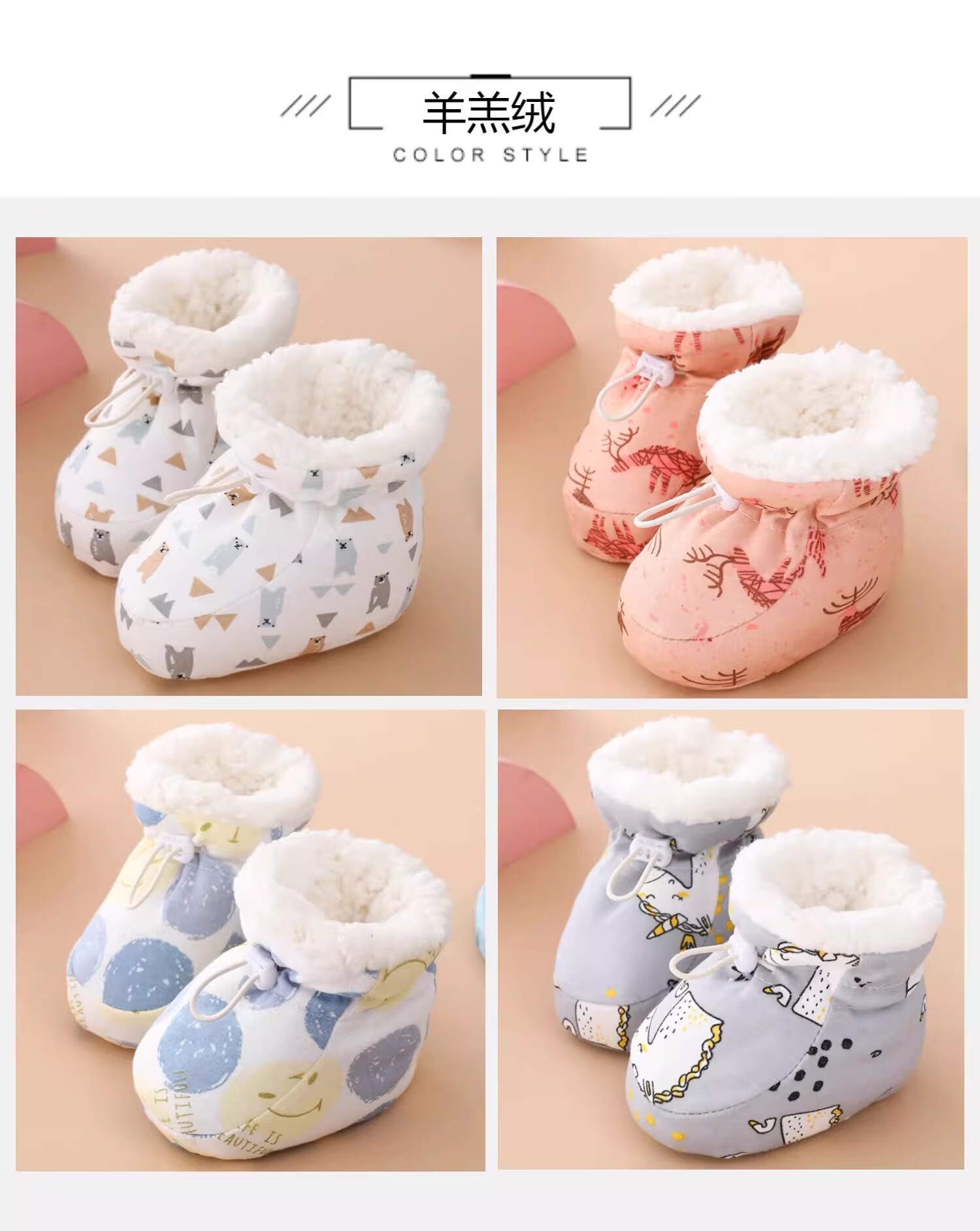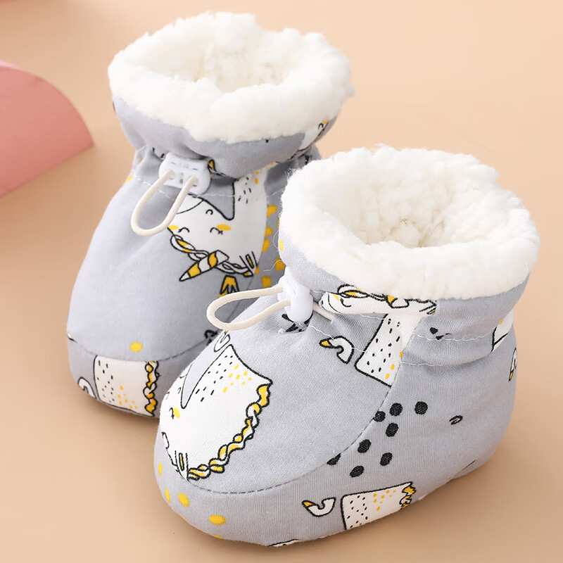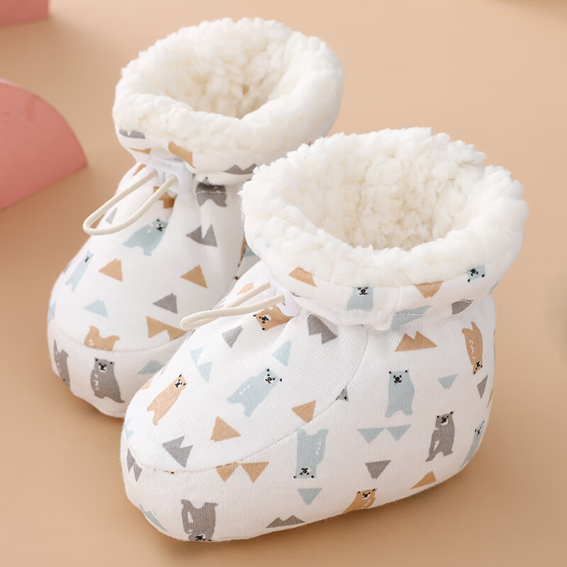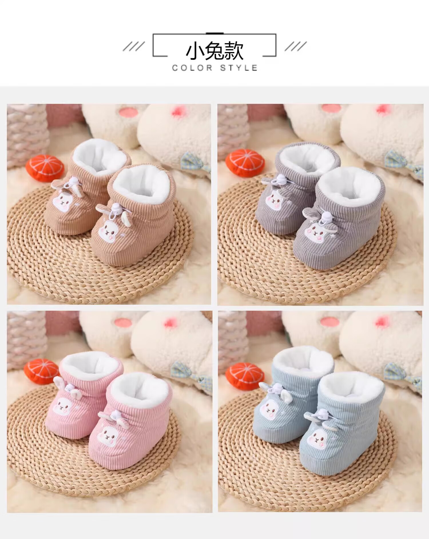 Qu'er Bear Autumn and Winter 1-year-old baby boy and girl 6-11 months pre-toddler shoes with soft soles and velvet to keep warm and non-falling cotton shoes Smiley face (thin velvet) 13 Inner length 13cm Recommended for 10-15 months
