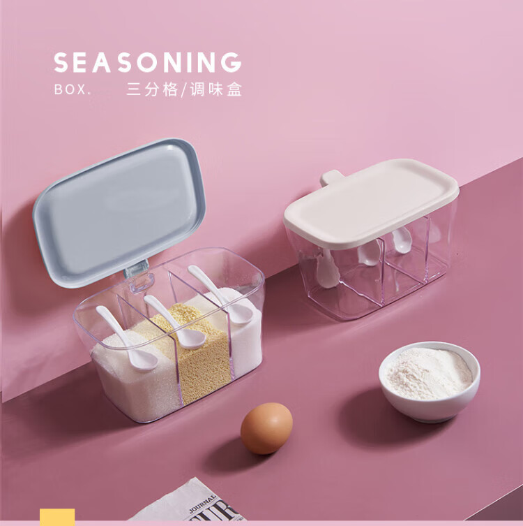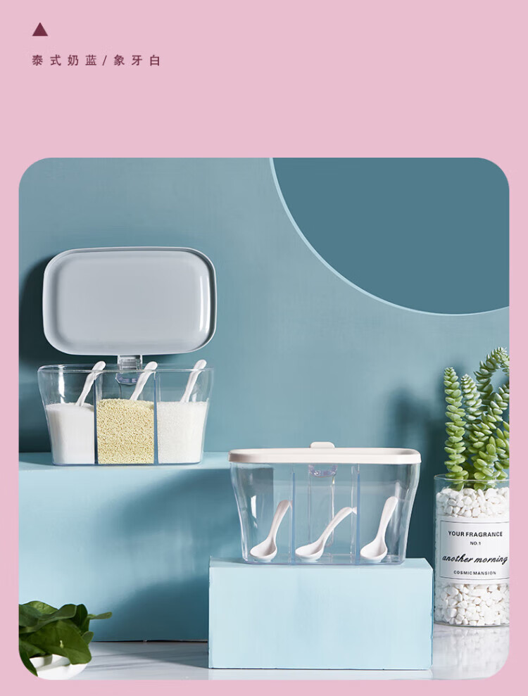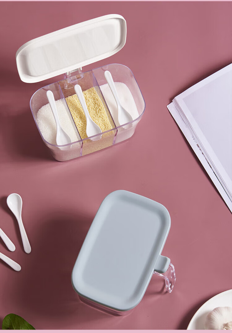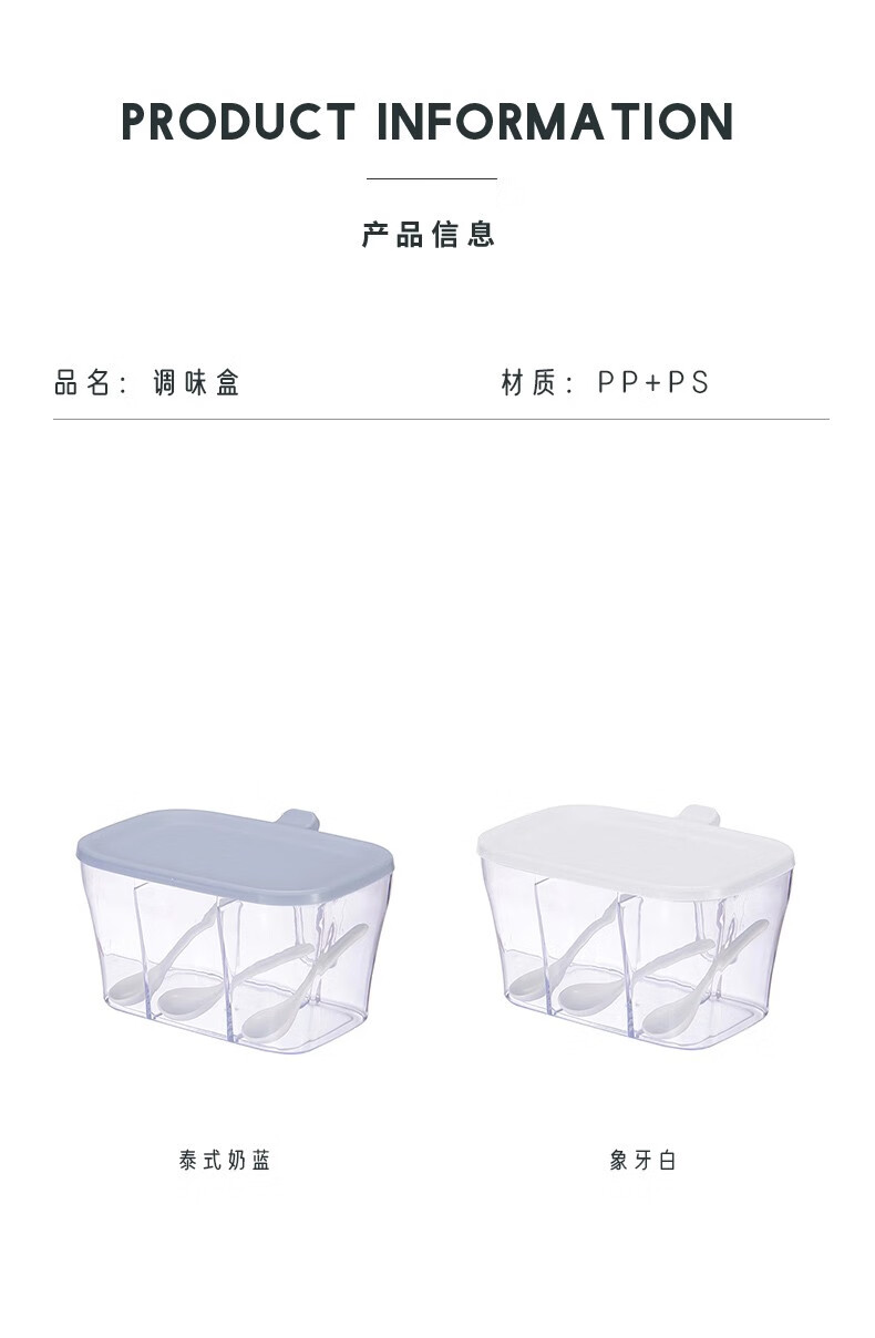 Moritani Qiyun salt and MSG seasoning box home kitchen integrated multi-grid combination set with lid condiment storage box seasoning bottle jar blue
