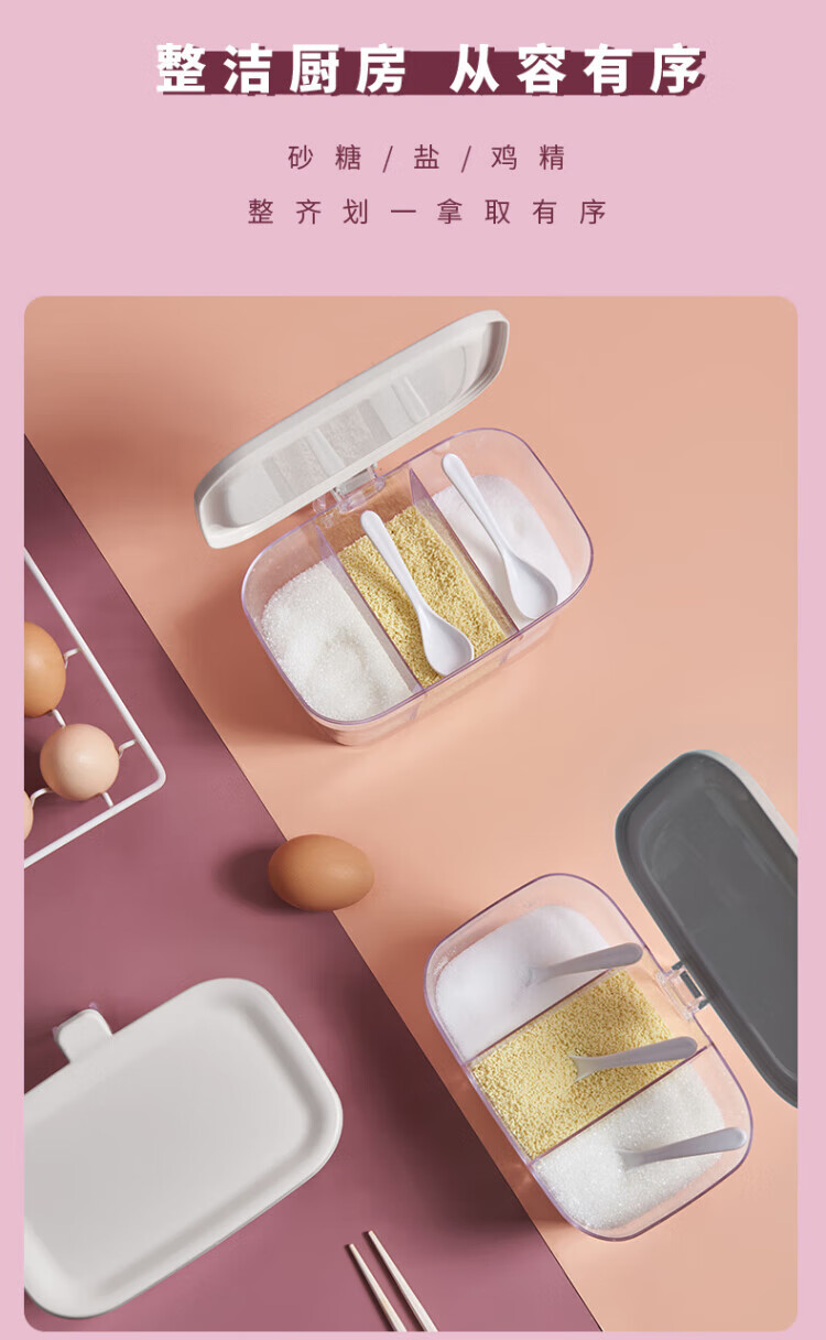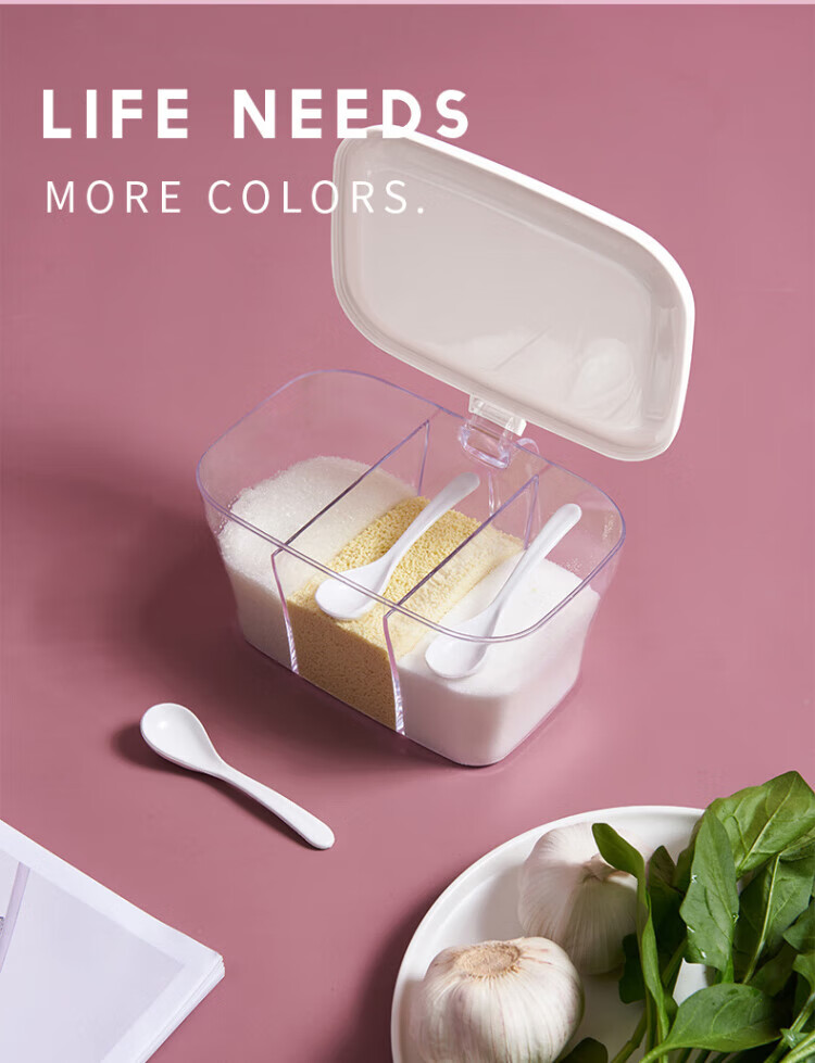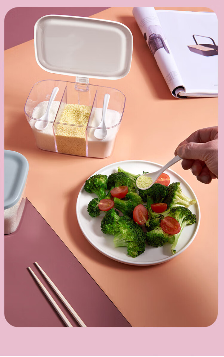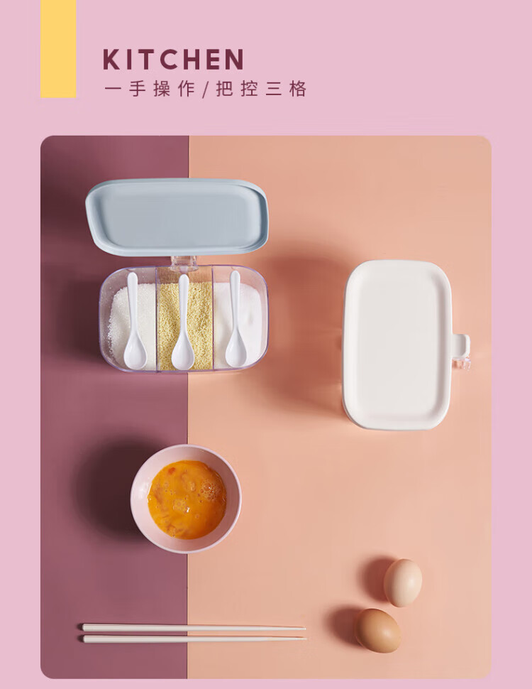 Moritani Qiyun salt and MSG seasoning box home kitchen integrated multi-grid combination set with lid condiment storage box seasoning bottle jar blue