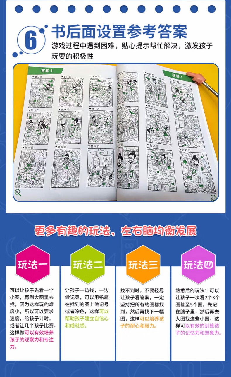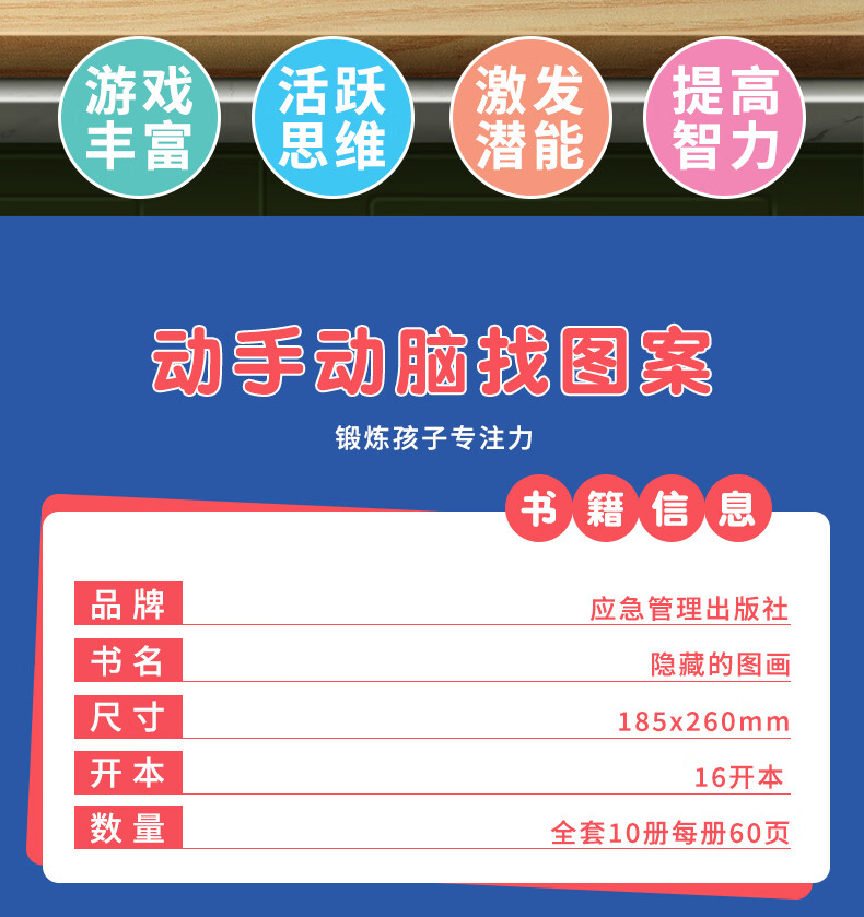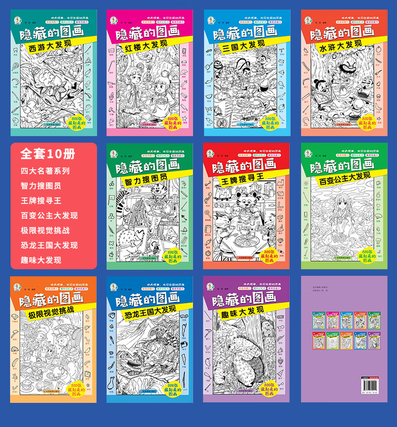 A complete set of 10 volumes of hidden picture children's concentration training book, find the difference, picture hide and seek for 3-6 years old, whole brain development for 2-4-5-7-10 years old, intellectual development educational game book, find things, attention training, high difficulty, 12-year-old extreme visual challenge book, a complete set of 10 volumes
