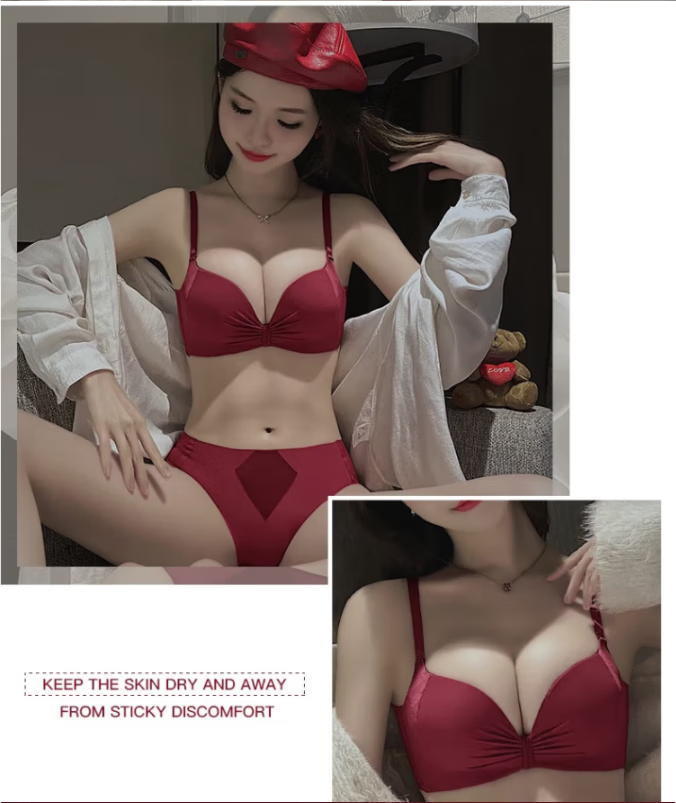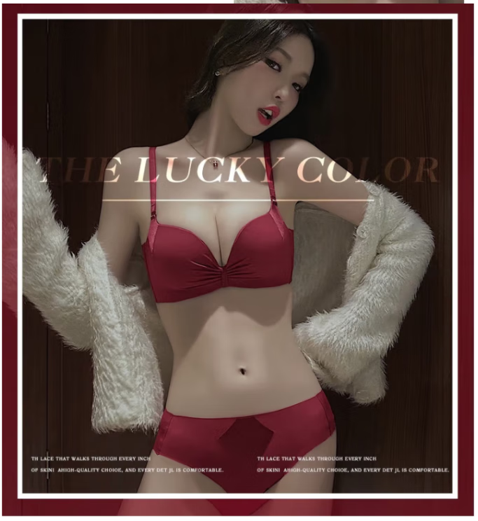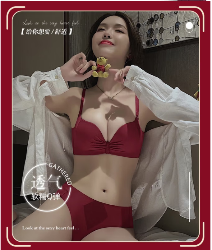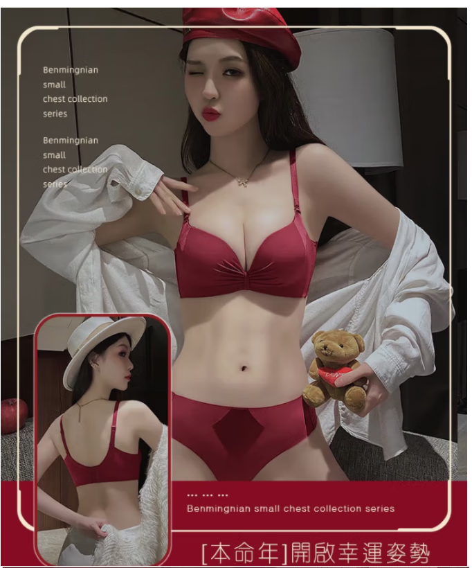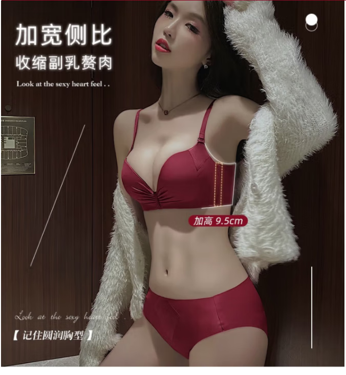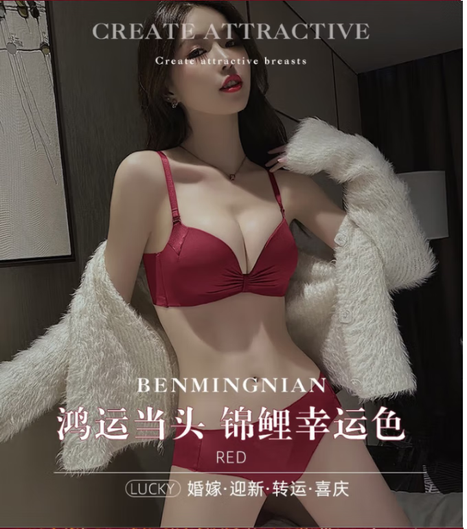 Victoria's elegant underwear for women with small breasts pushed up to make the secondary breasts larger, no wire bra, zodiac year wedding bride latex bra set, burgundy (set + exquisite packaging) 36B=80B