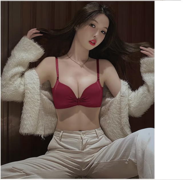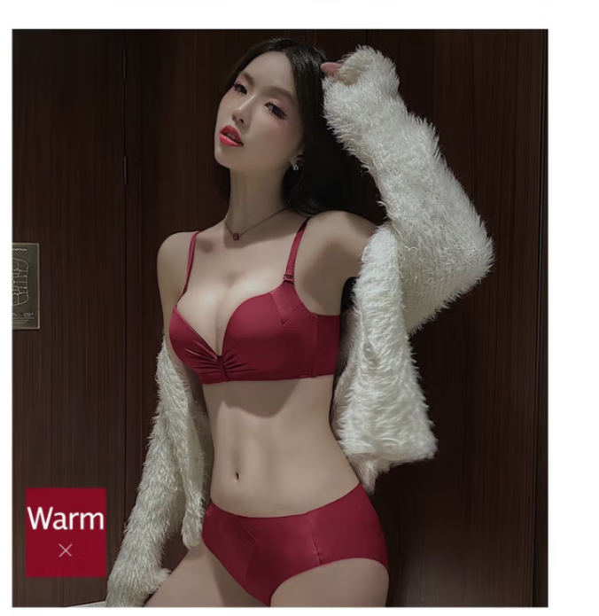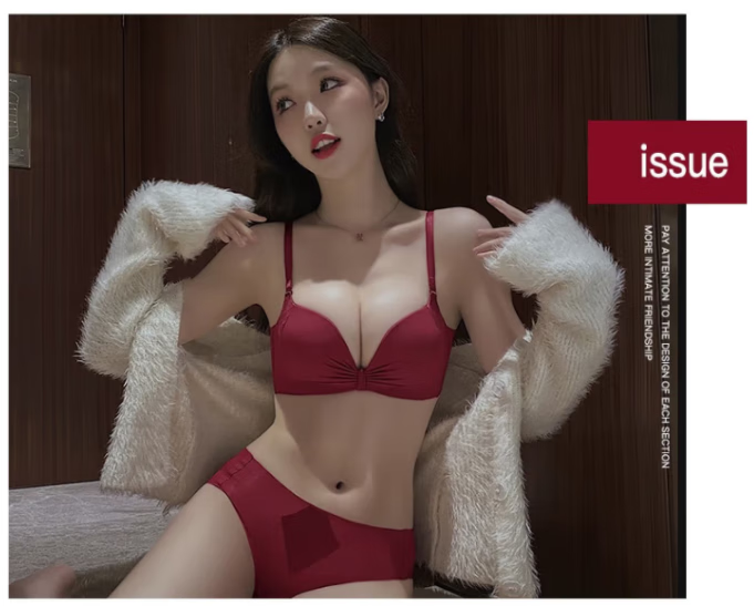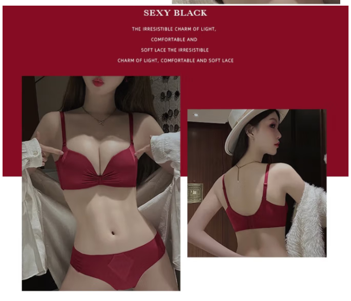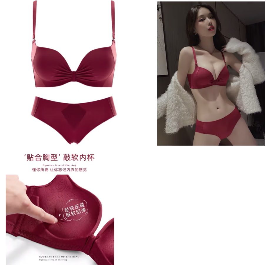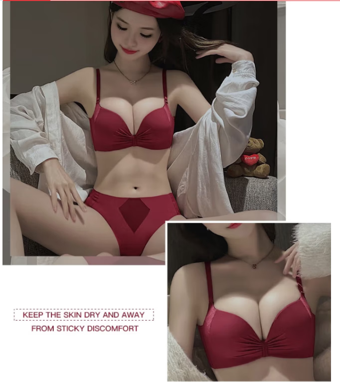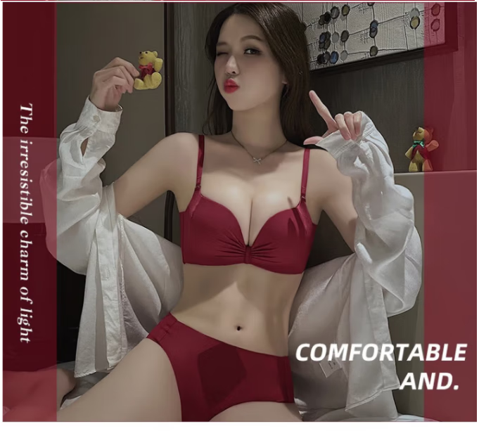 Victoria's elegant underwear for women with small breasts pushed up to make the secondary breasts larger, no wire bra, zodiac year wedding bride latex bra set, burgundy (set + exquisite packaging) 36B=80B