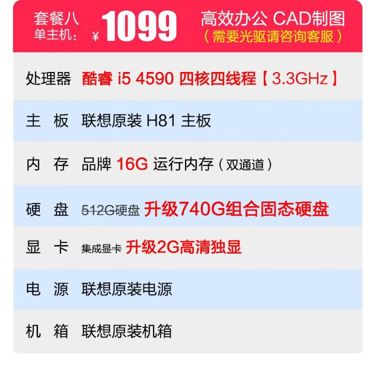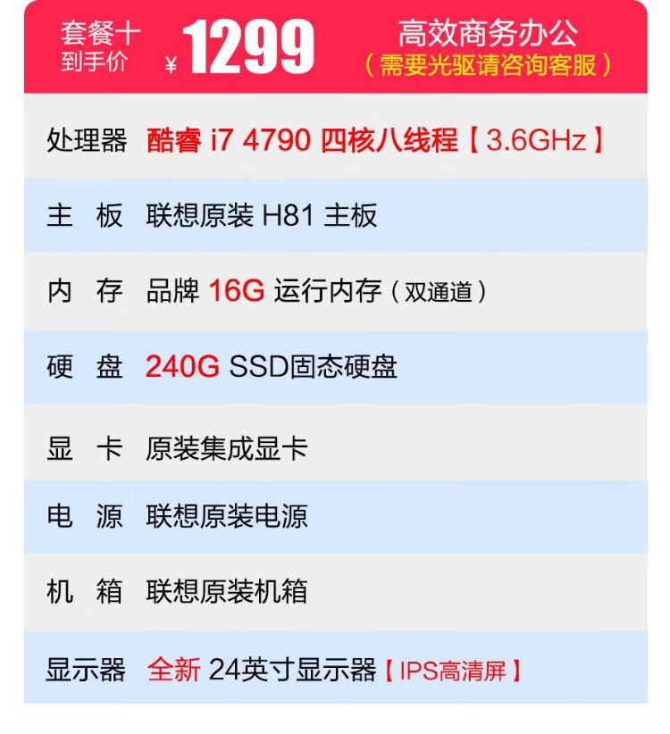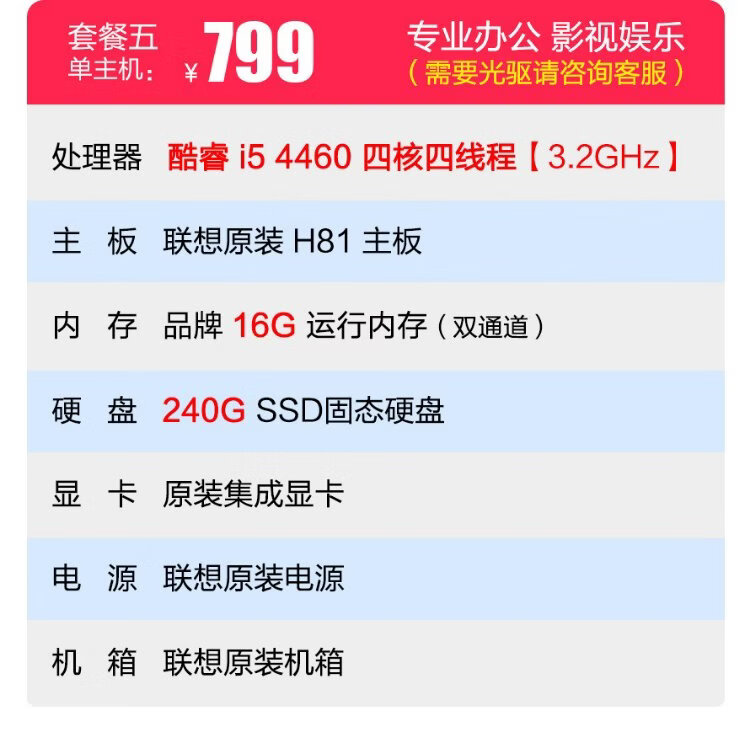 Lenovo (Lenovo) desktop Core i5 office design second-hand computer host single host 5丨i5/16G/240G solid state 90% new